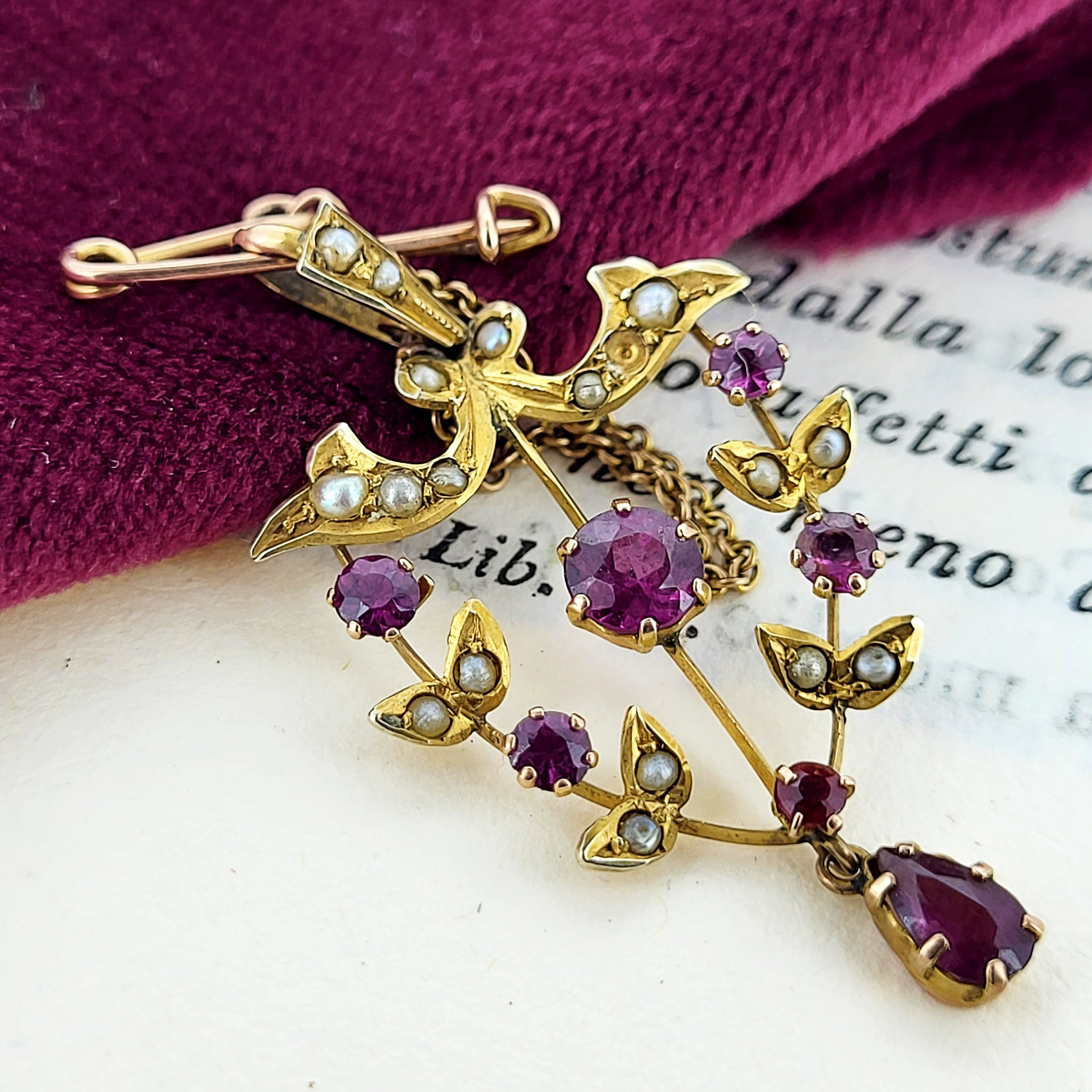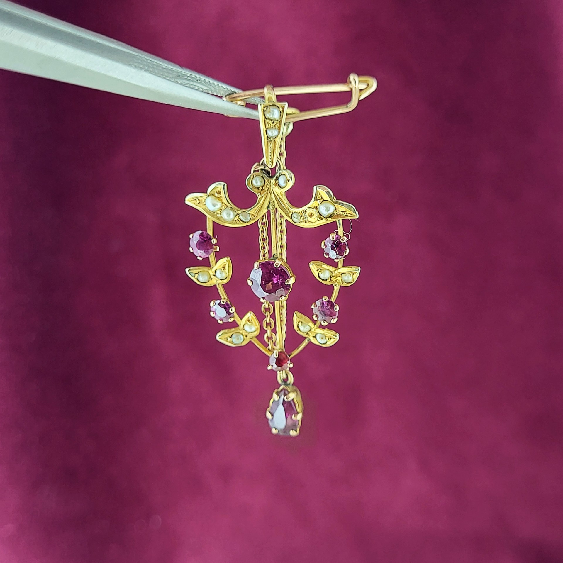 A wonderfully delicate and intricate seed pearl and ruby pin that can also be worn as a pendant (so a huge tick for us as we love versatile jewellery).