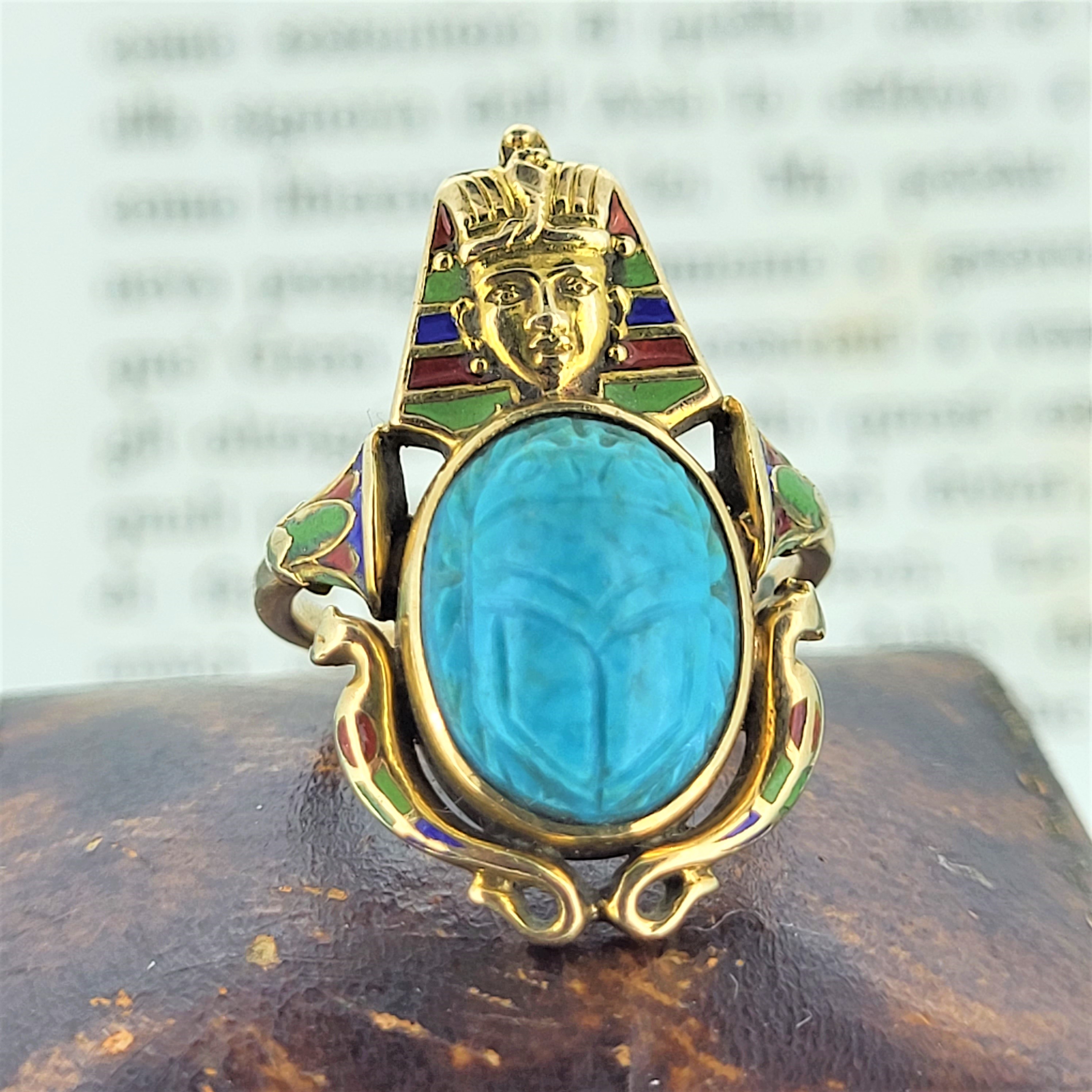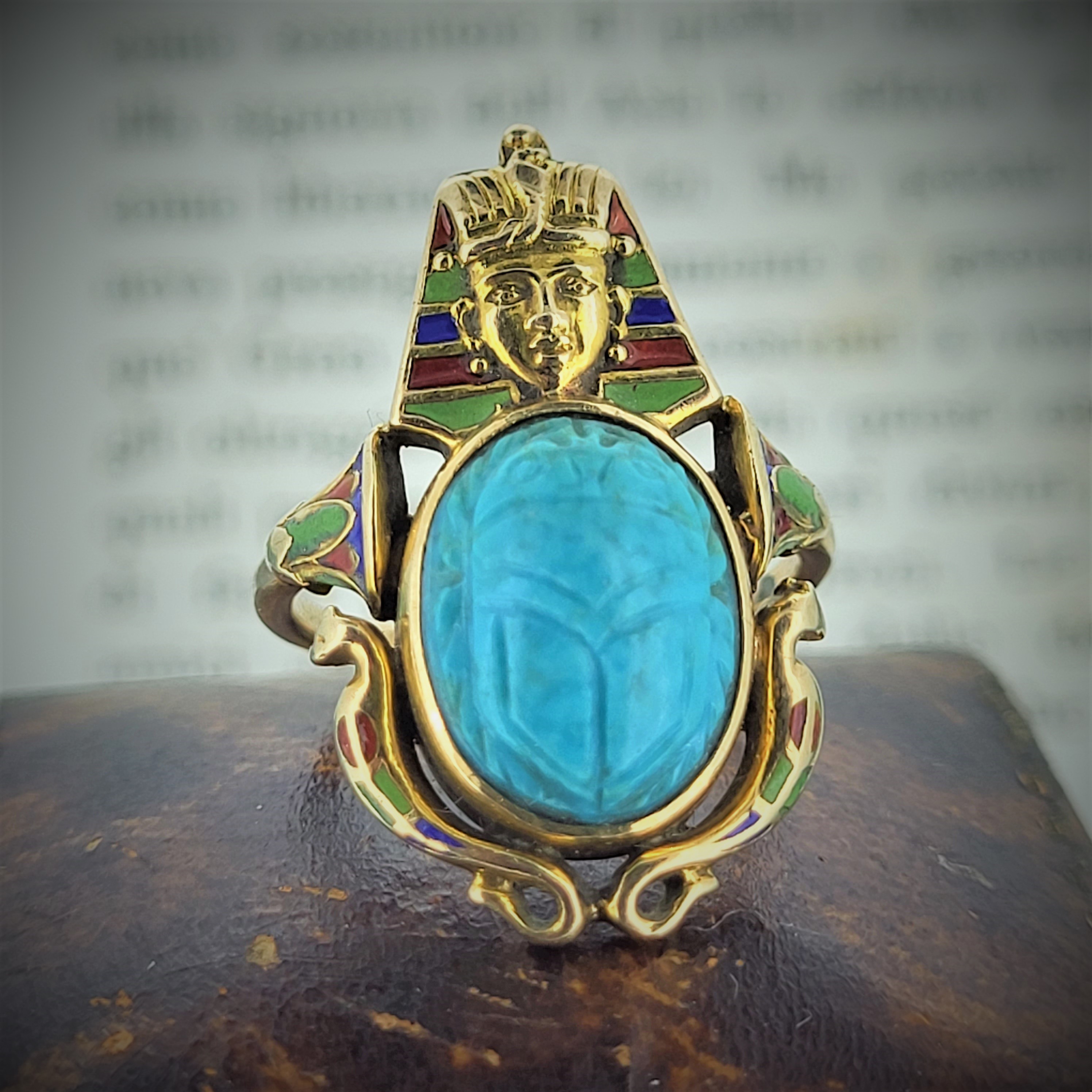 This style of Jewellery was often connected to Khepri who was a Scarab faced Sun-God who represented the rising or morning sun.