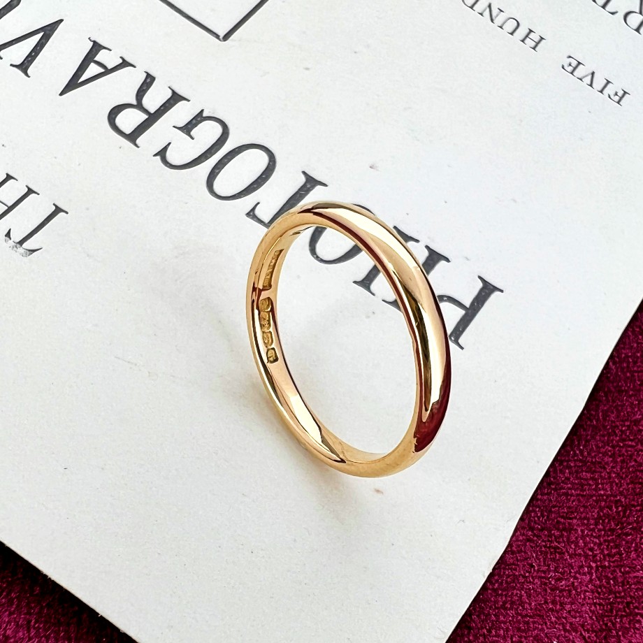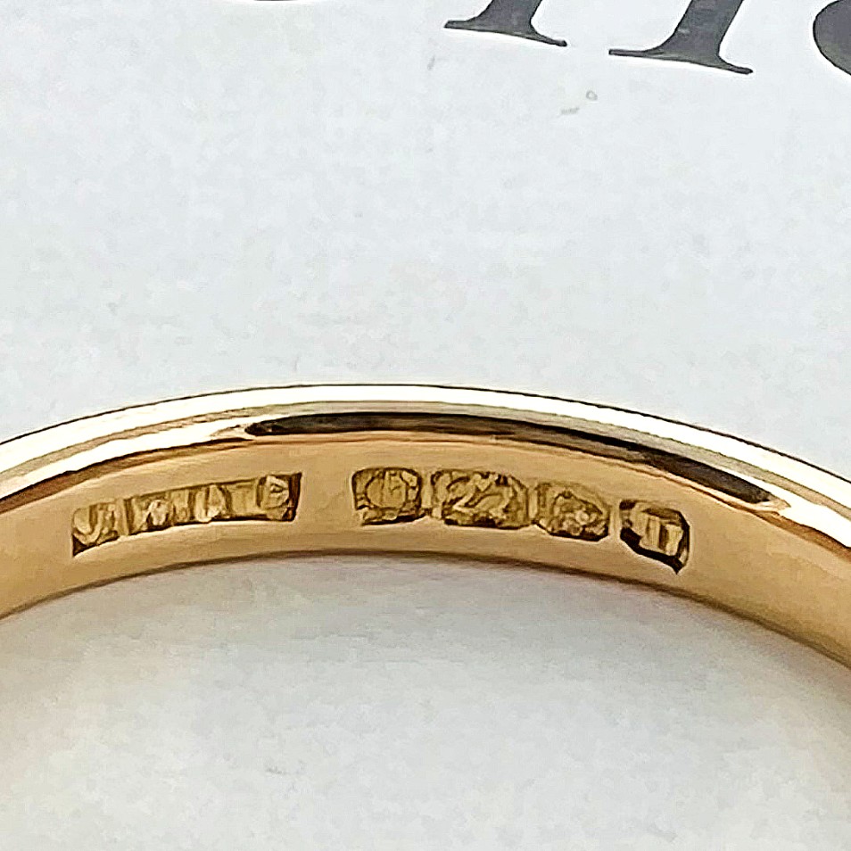This polished wedding ring is crafted from 22ct Gold and was hallmarked in Birmingham in 1929 by J.W Ltd for James Walker Ltd.