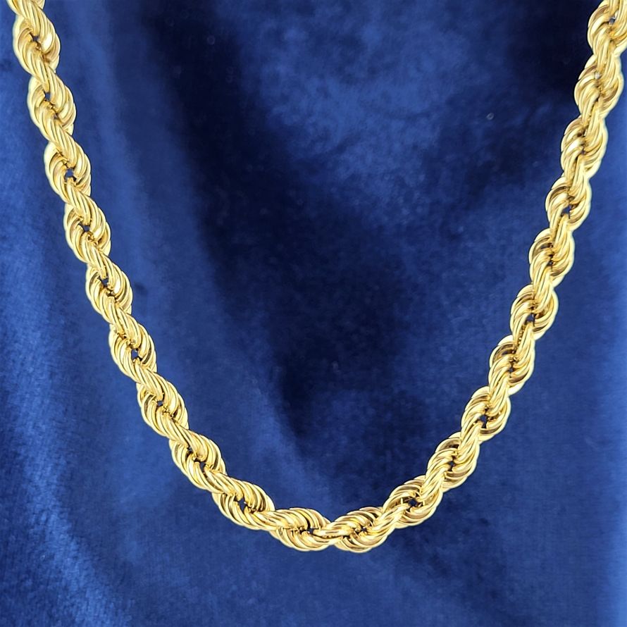 The classic rope chain! It measures 20 inches in length and with a generous 5mm diameter this necklace has a substantial look!
