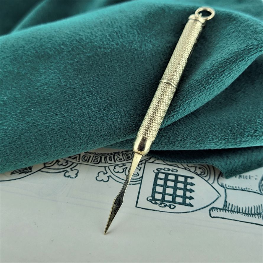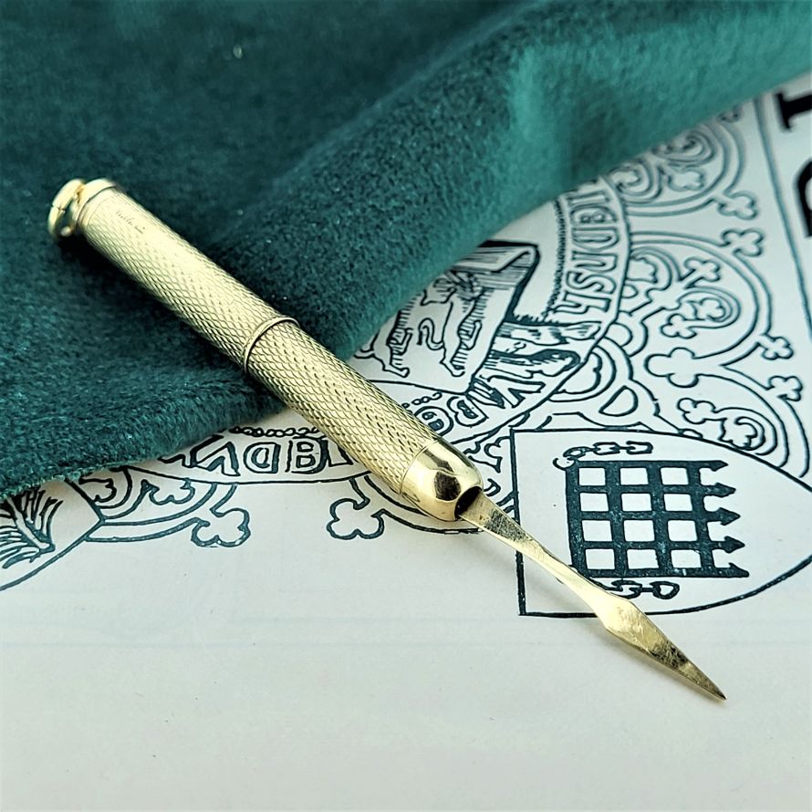 We are delighted to present this 9ct gold toothpick. It was originally manufactured by William Manton Limited of Tenby Street in Birmingham in 1947 - 1948 and preserved wonderfully well ever since!
