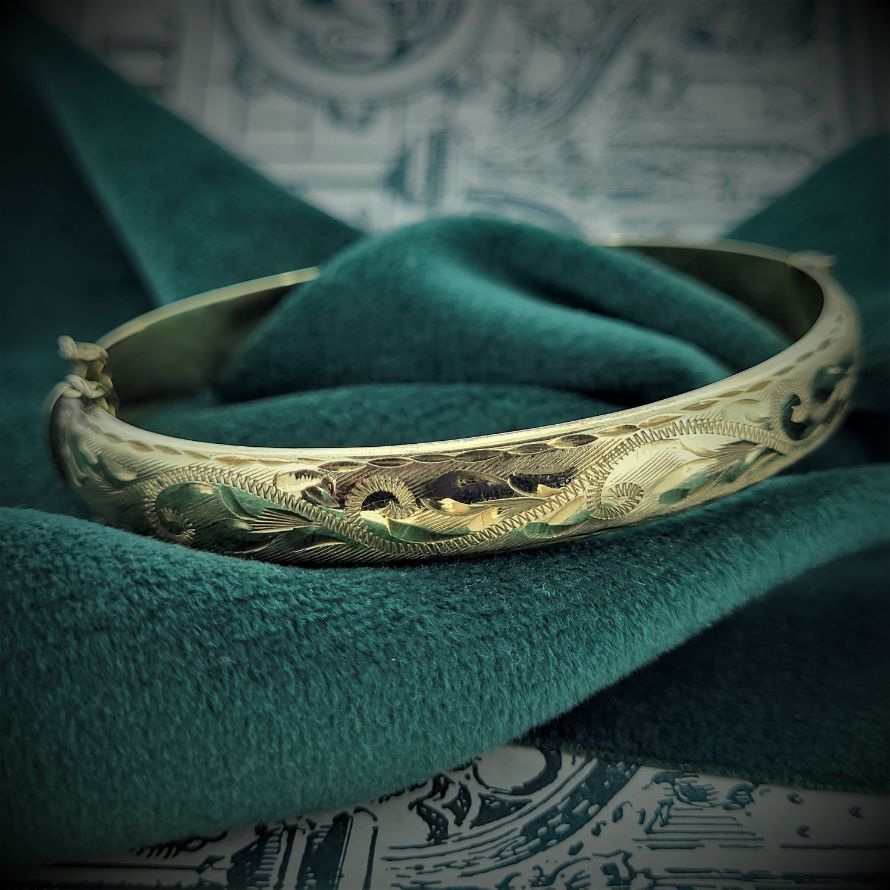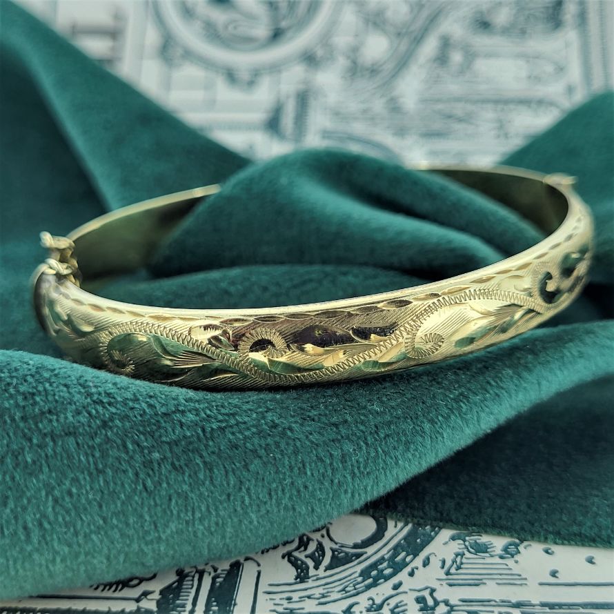 A lovely vintage 9ct gold hinged bangle.
