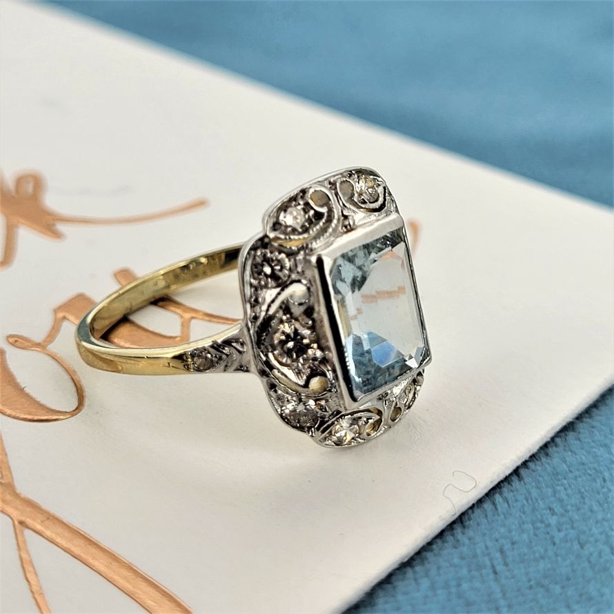 The 1ct emerald cut aquamarine is channel set in white gold. Unusually the corners are exposed and this slight detail adds wonderfully to the rings scintillation.