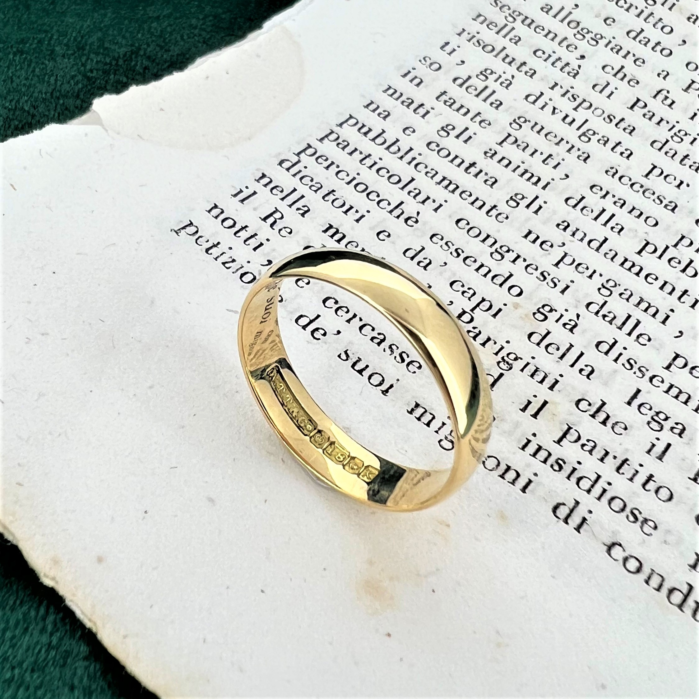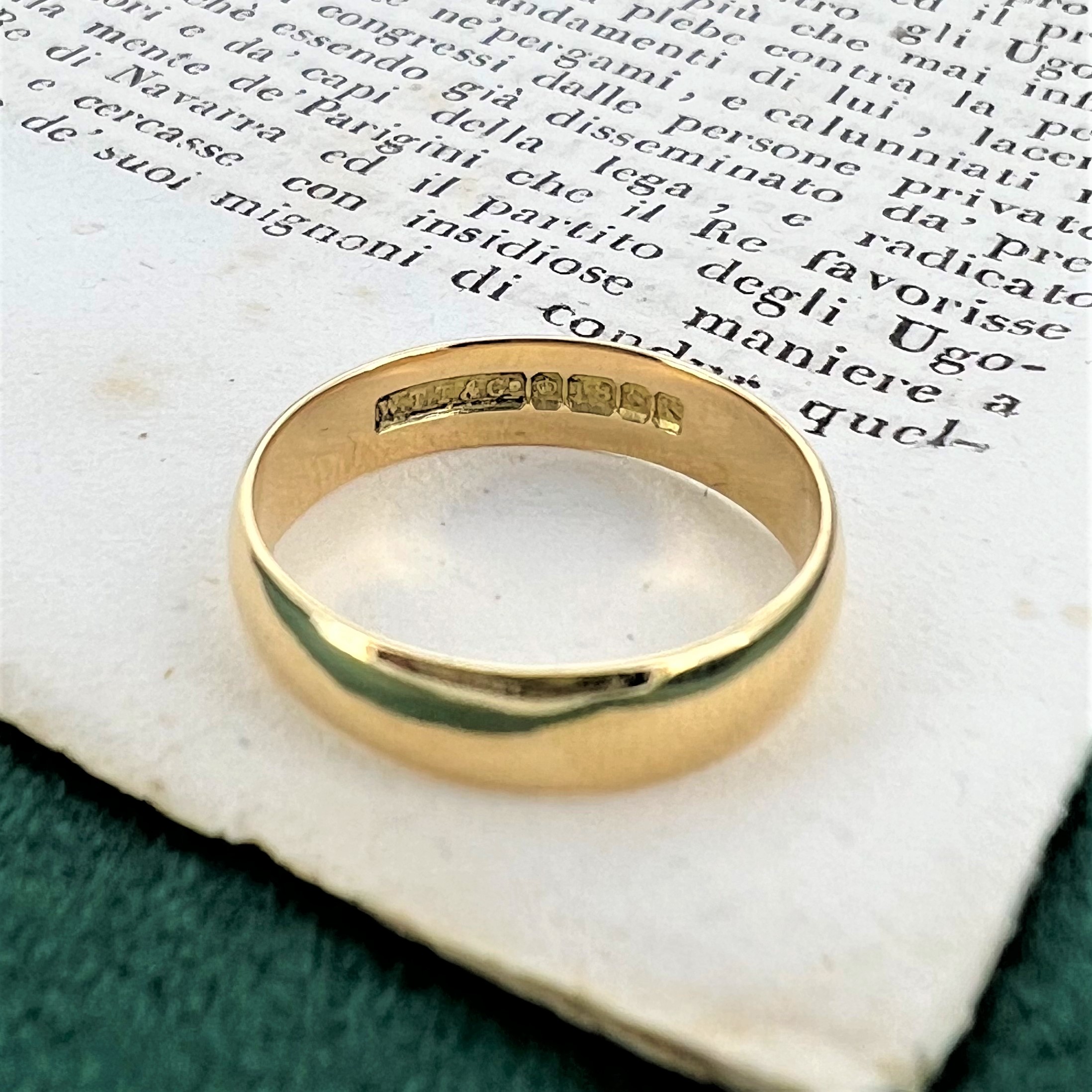 This lovely, polished wedding ring is crafted from 18ct Gold. It was hallmarked in Birmingham in 1959 by WTT & Co for W T Toghill & Co of Vyse Street In Birmingham's famous Jewellery Quarter!