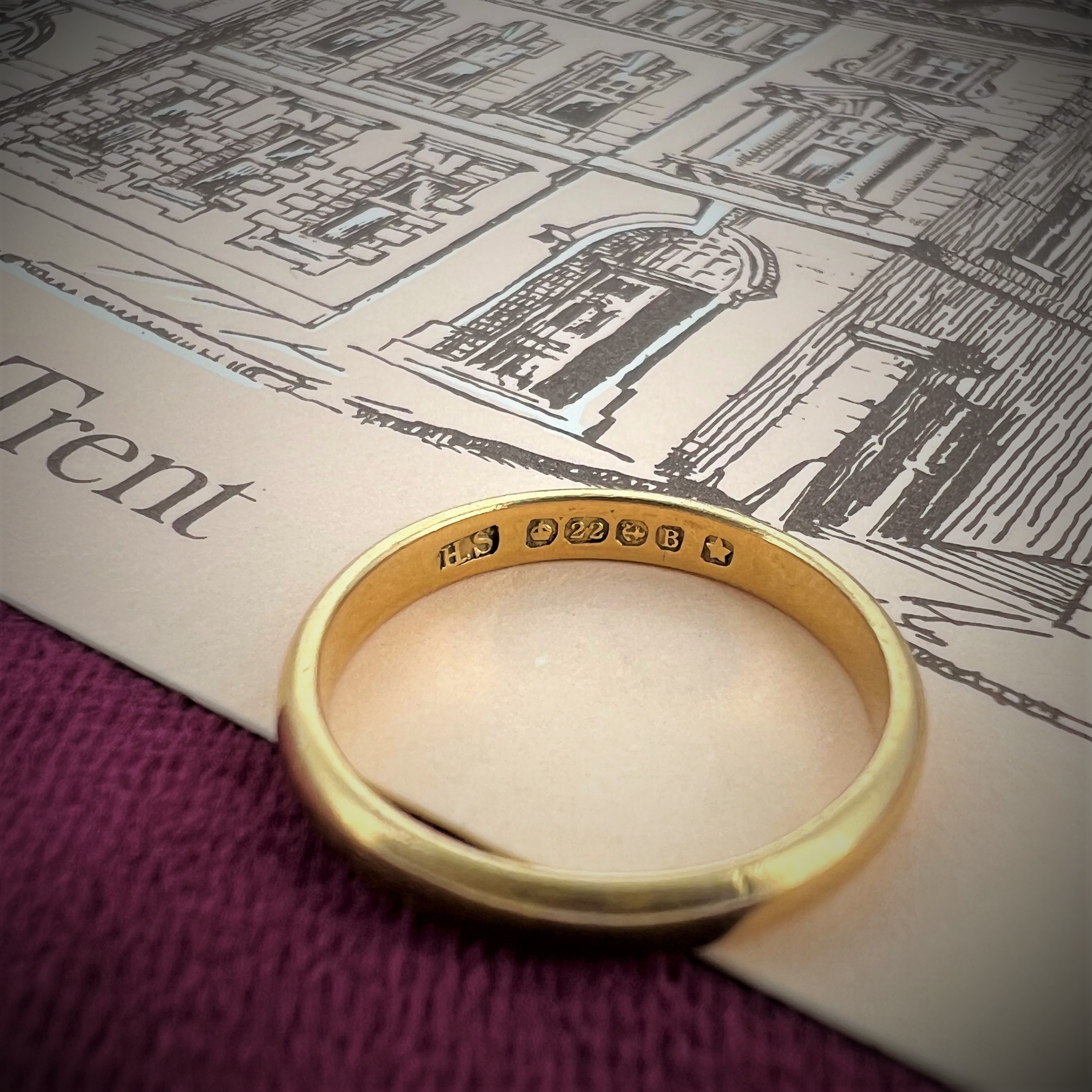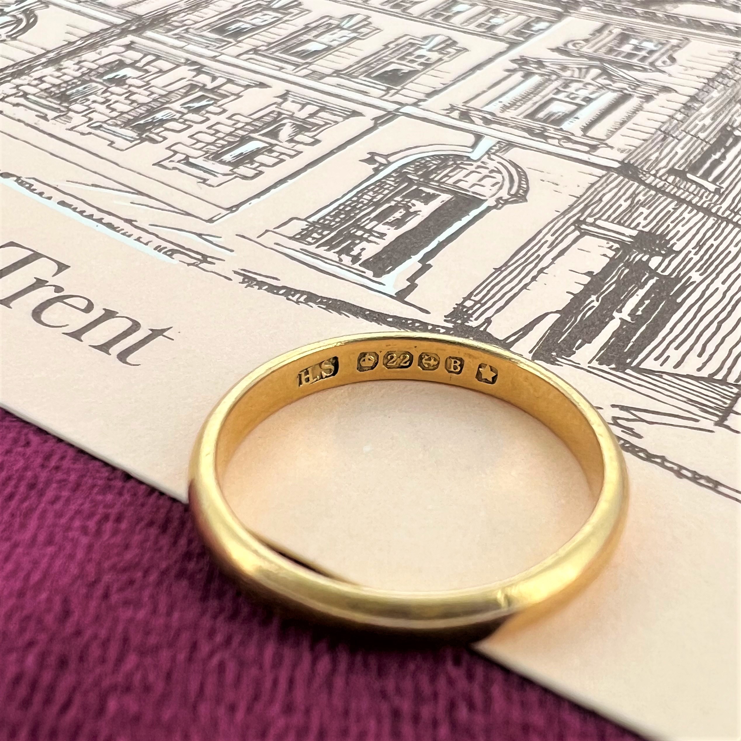 This 22ct Gold Wedding Ring was hallmarked in Birmingham in 1926 by H.S for H Samuels whose story began in 1862 when Harriet Samuel took over her father-in-laws clockmaking business in Liverpool.
