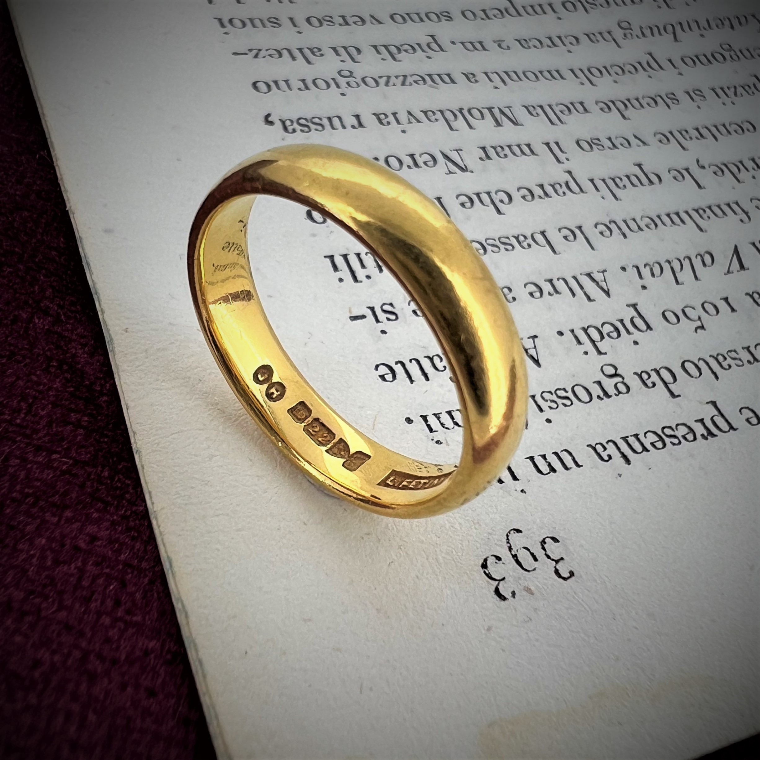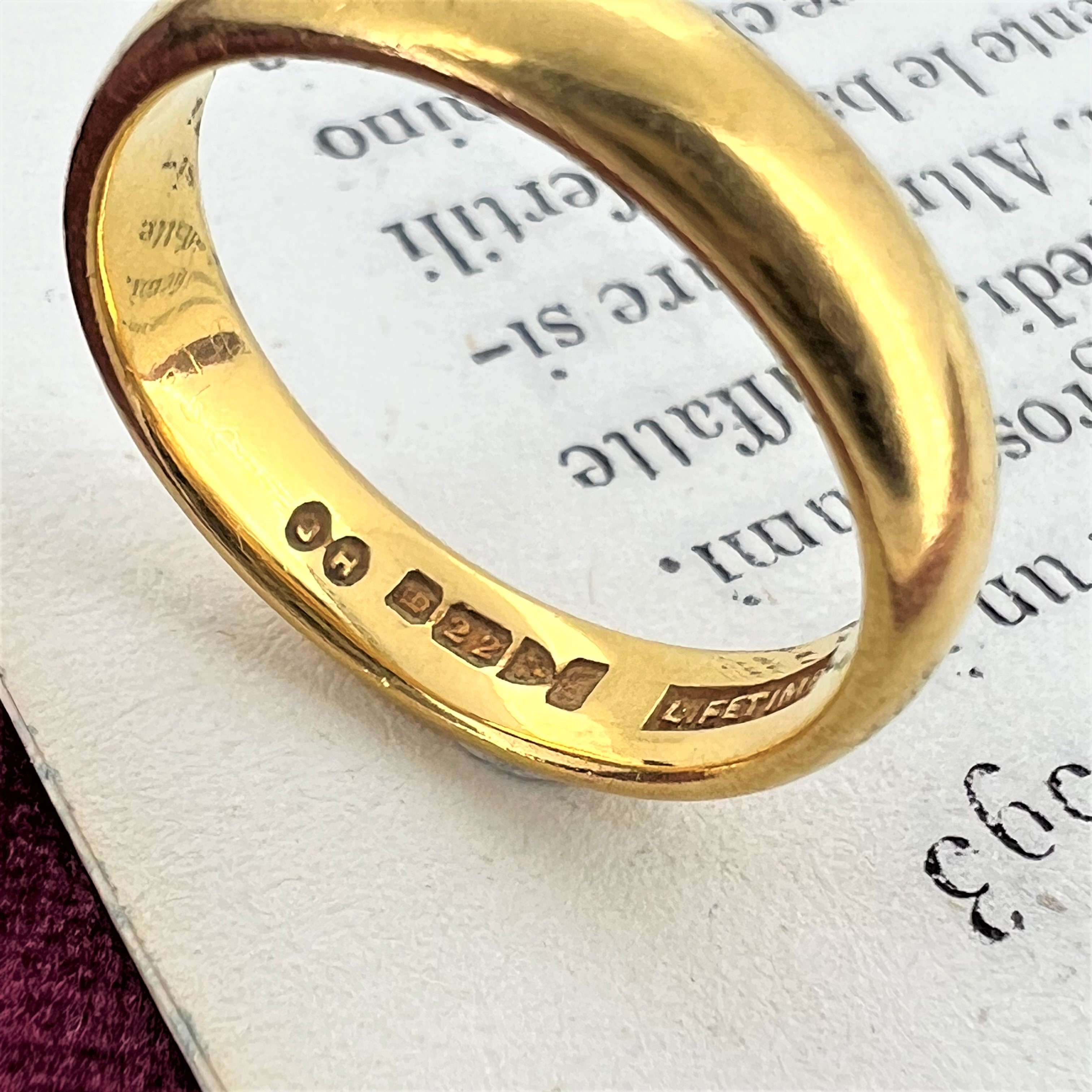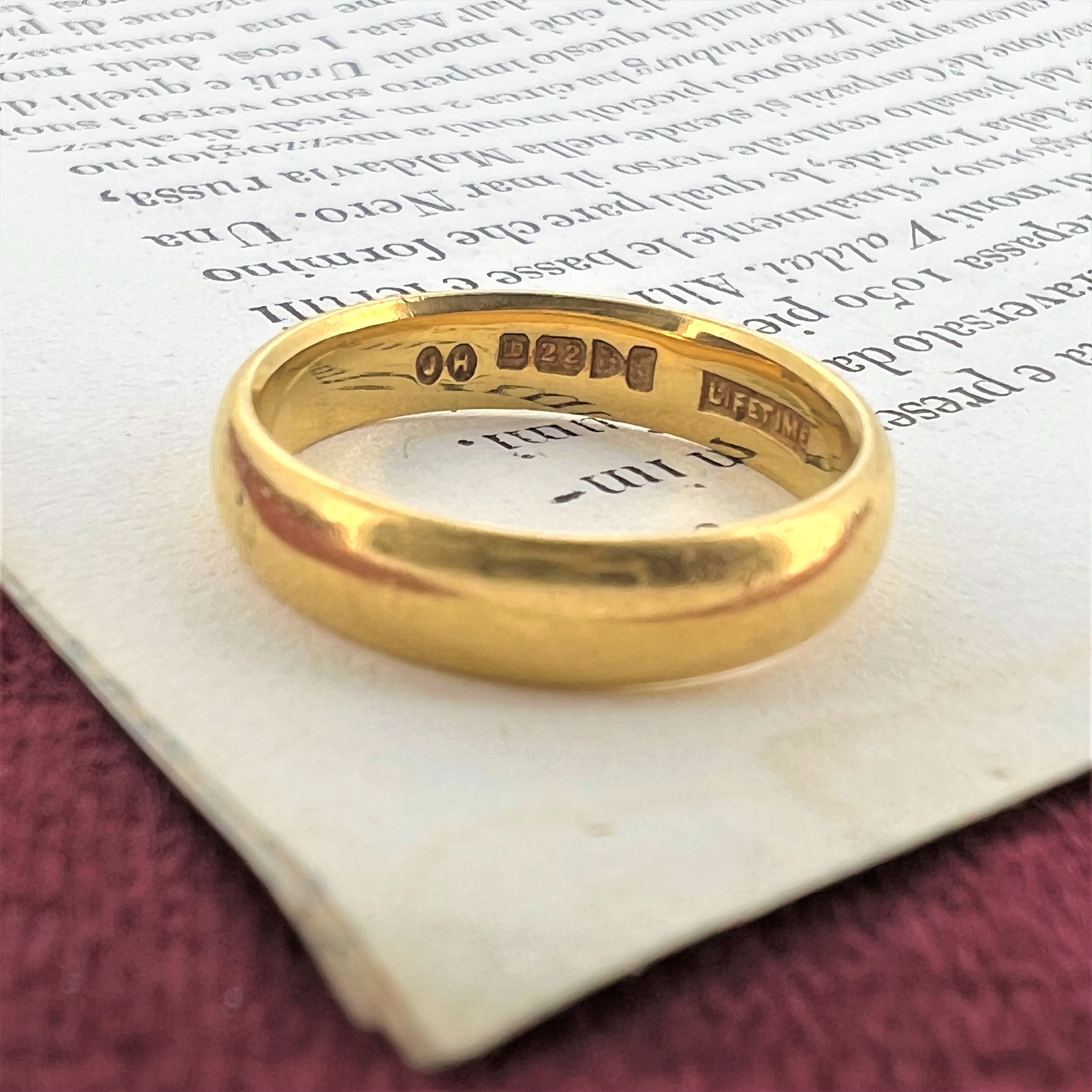 This Wedding Ring was hallmarked in Birmingham in 1960 by J.H for James Harrison of Warstone Lane in Birmingham's Jewellery Quarter.