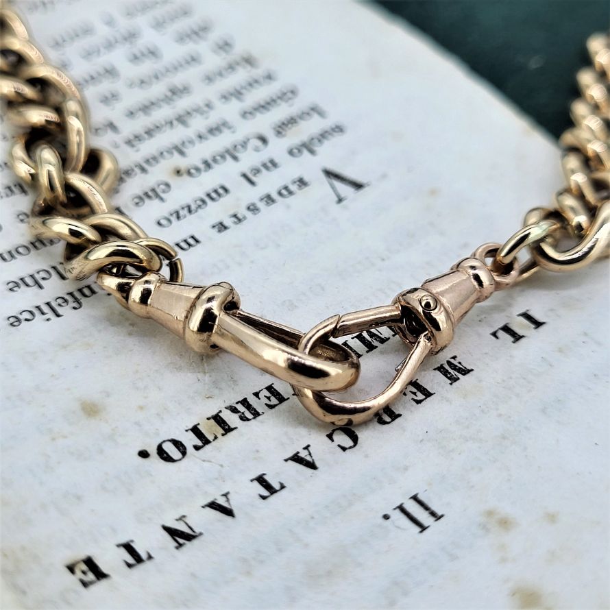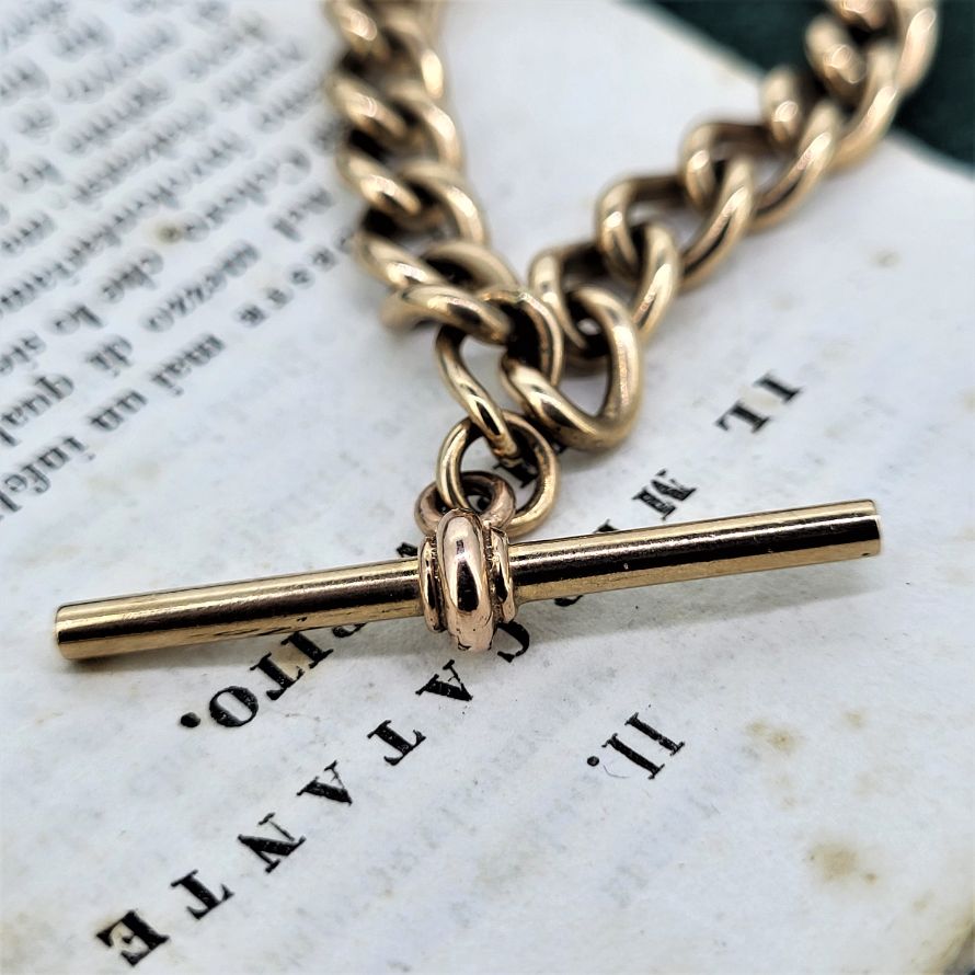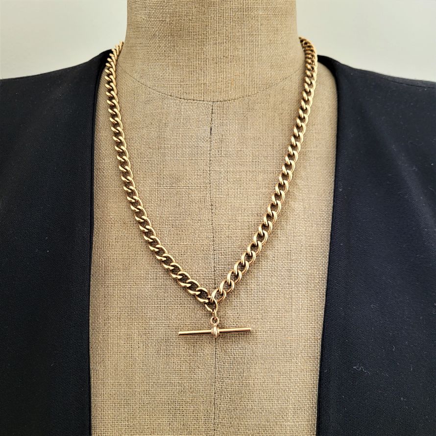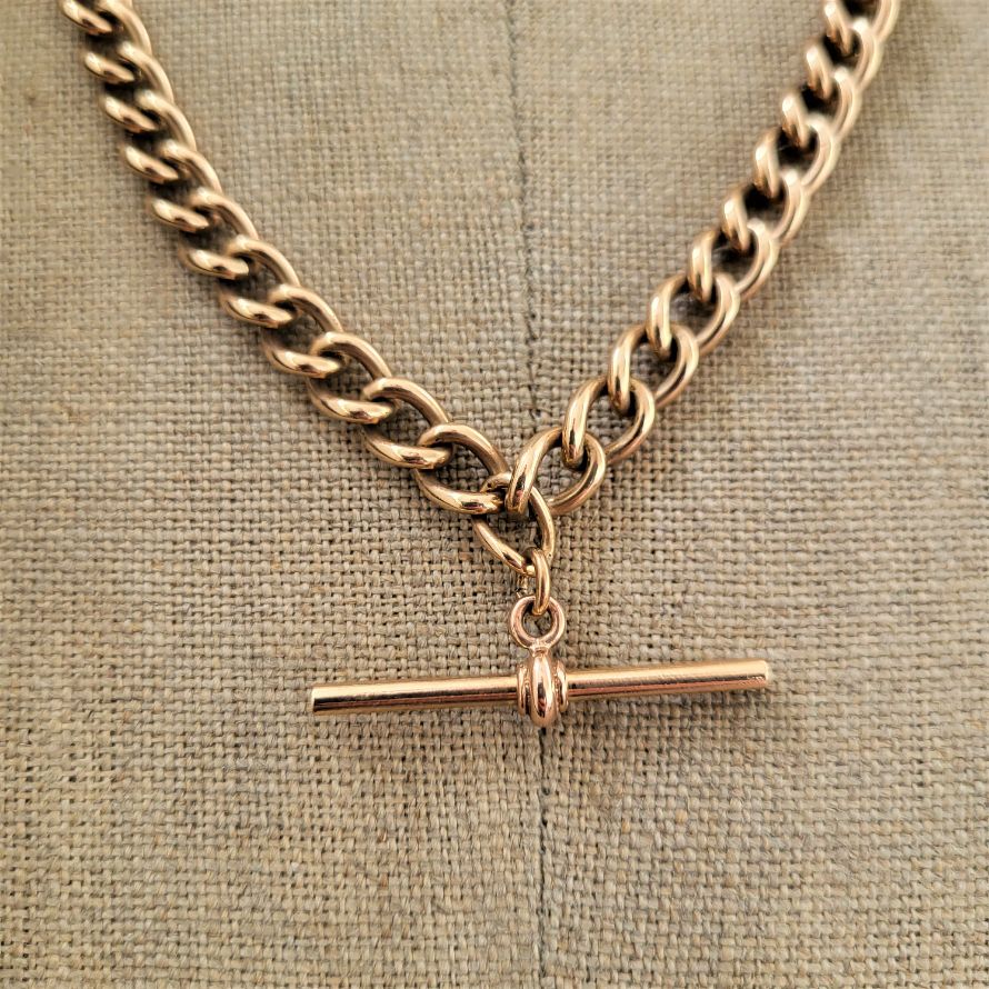 A vintage Rose Gold Albert Chain with double swivel and t-bar.