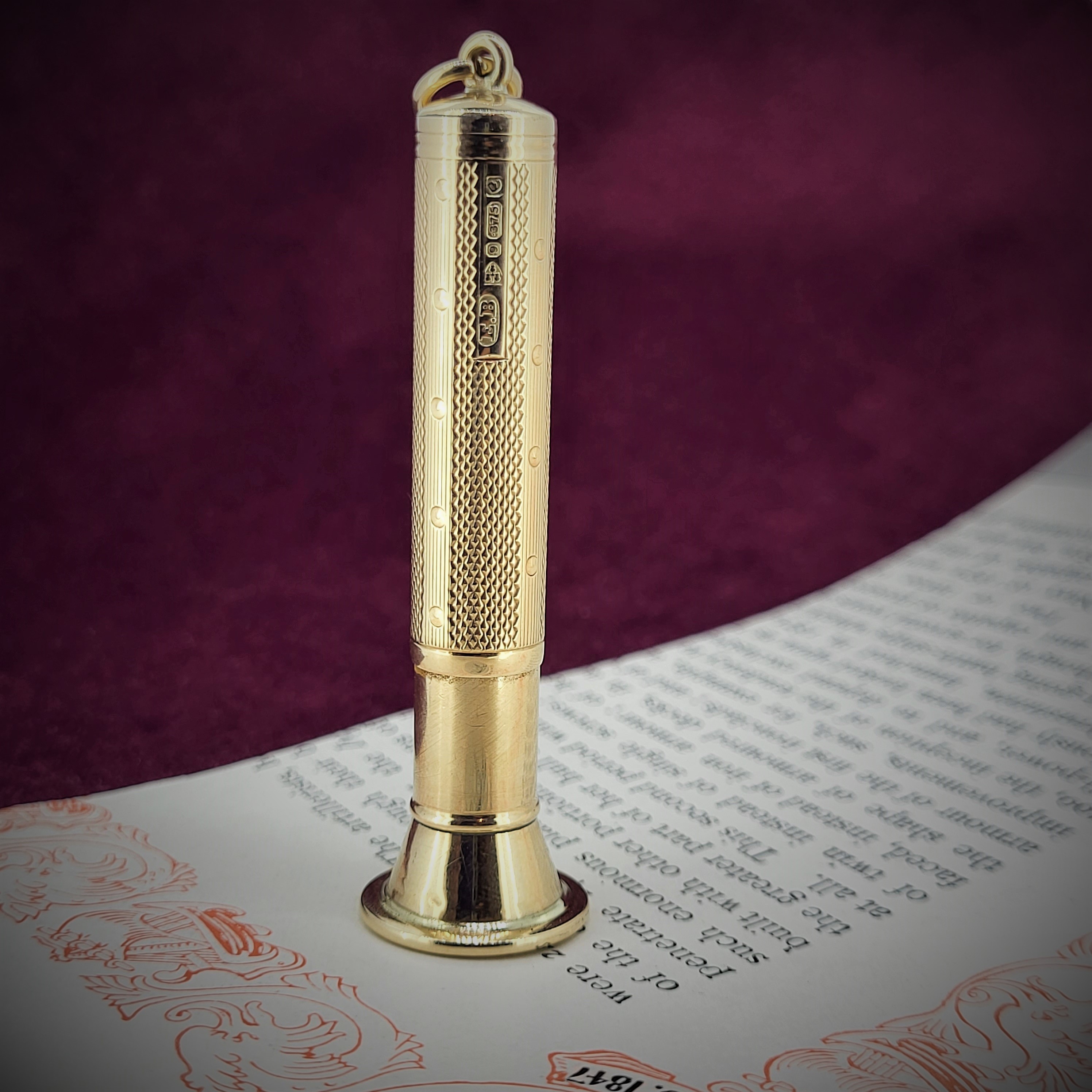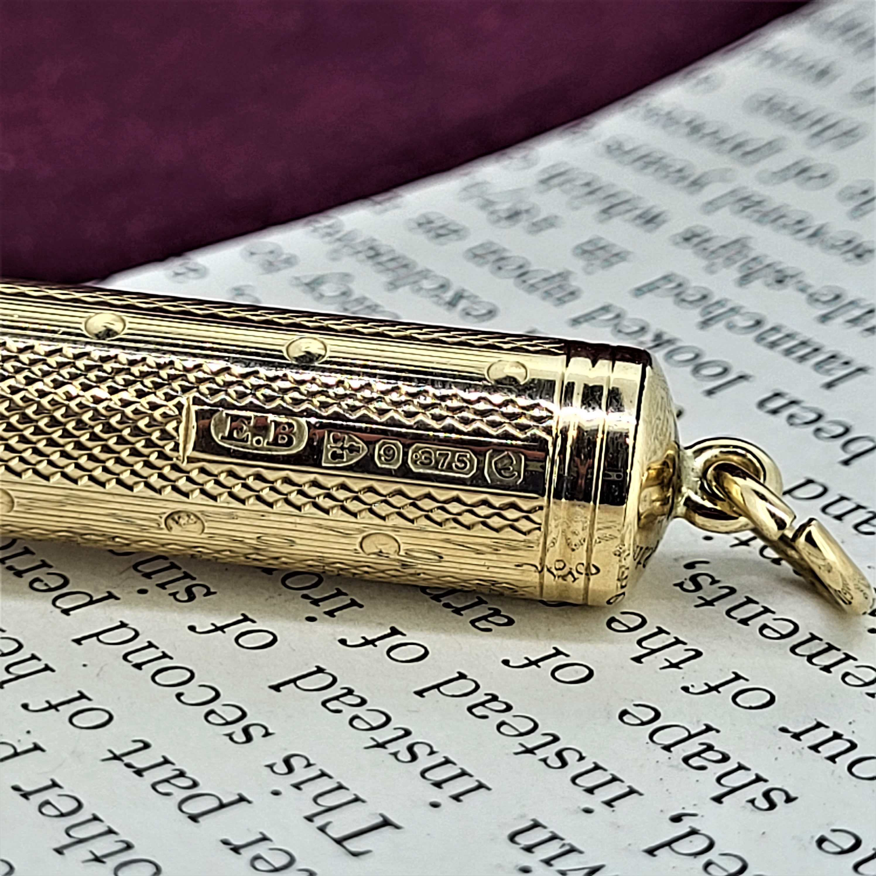 This vintage Cigar Piercer is fully hallmarked in Chester in 1930 by makers E.B. (for E Baker & Son of Augusta Street in Birmingham). Its beautifully textured and measures 58mm by 16mm at is widest point and 9mm throughout the body of the piercer.