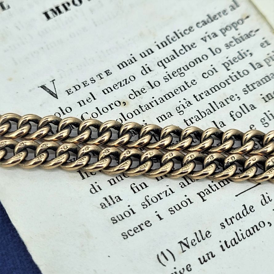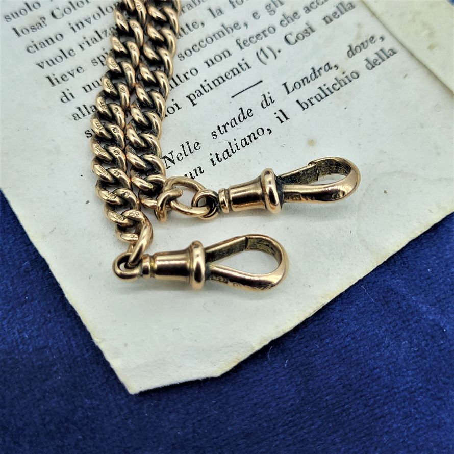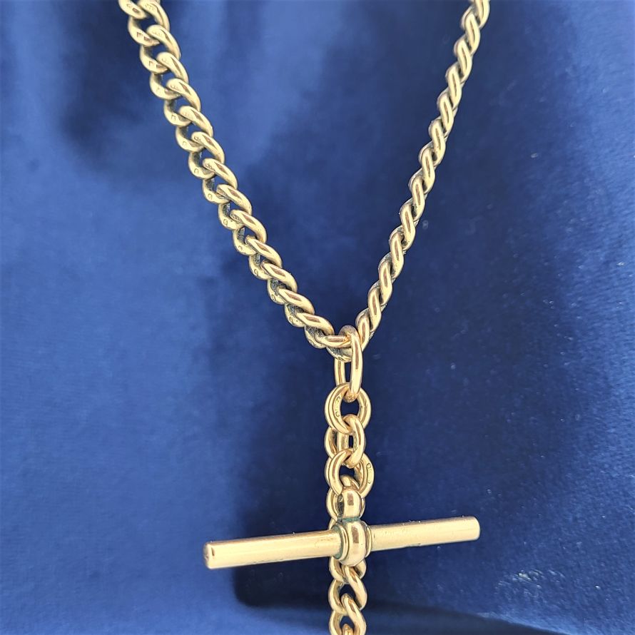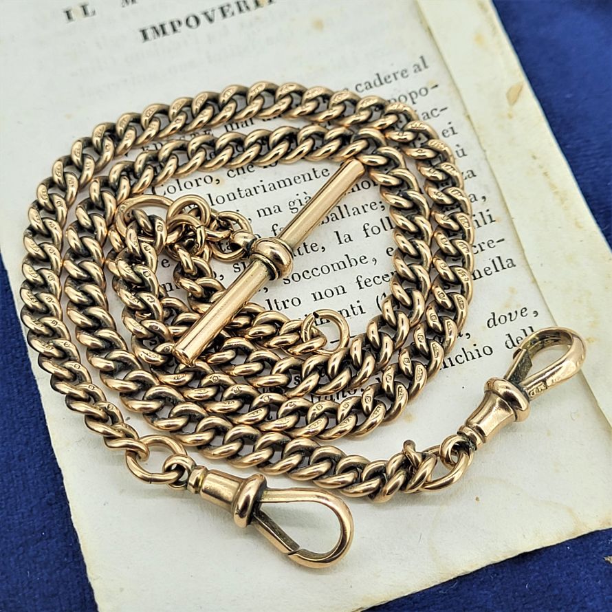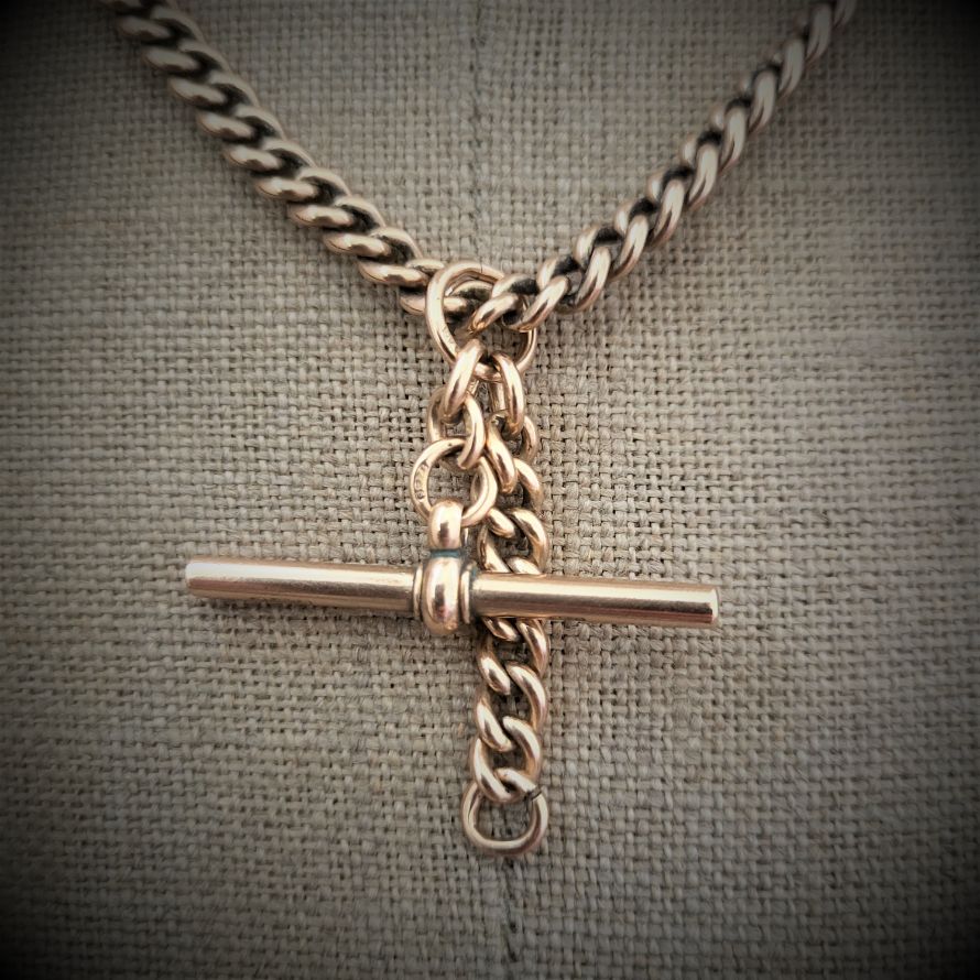 Produced in and around 1900 we are delighted to present this fabulous rose gold albert chain with rolling t-bar.