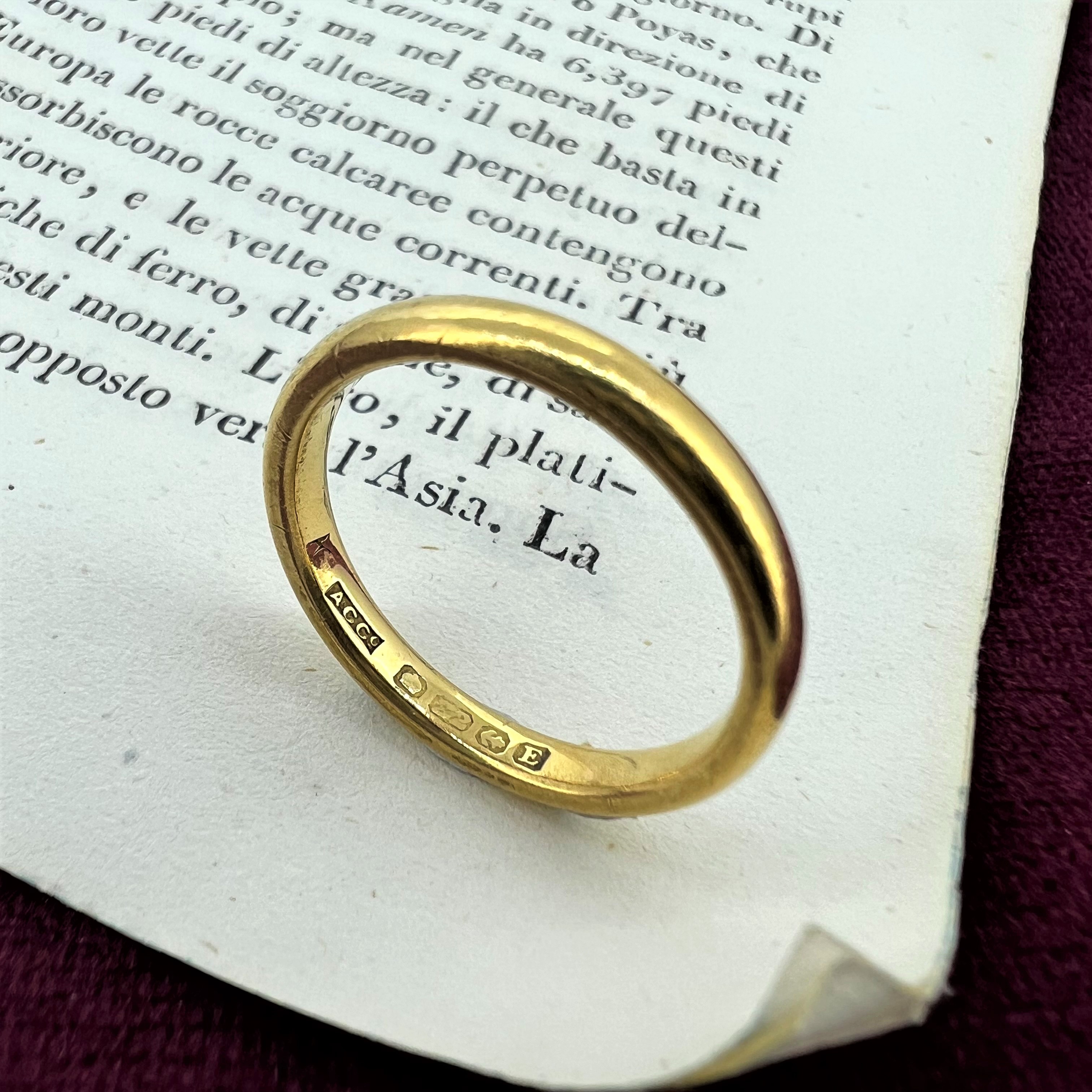 For those who are looking for the perfect, ethical wedding ring this could be for you! This ring is crafted from 22ct Gold and was hallmarked in Birmingham during 1929 by ACCo for The Albion Chain Company.