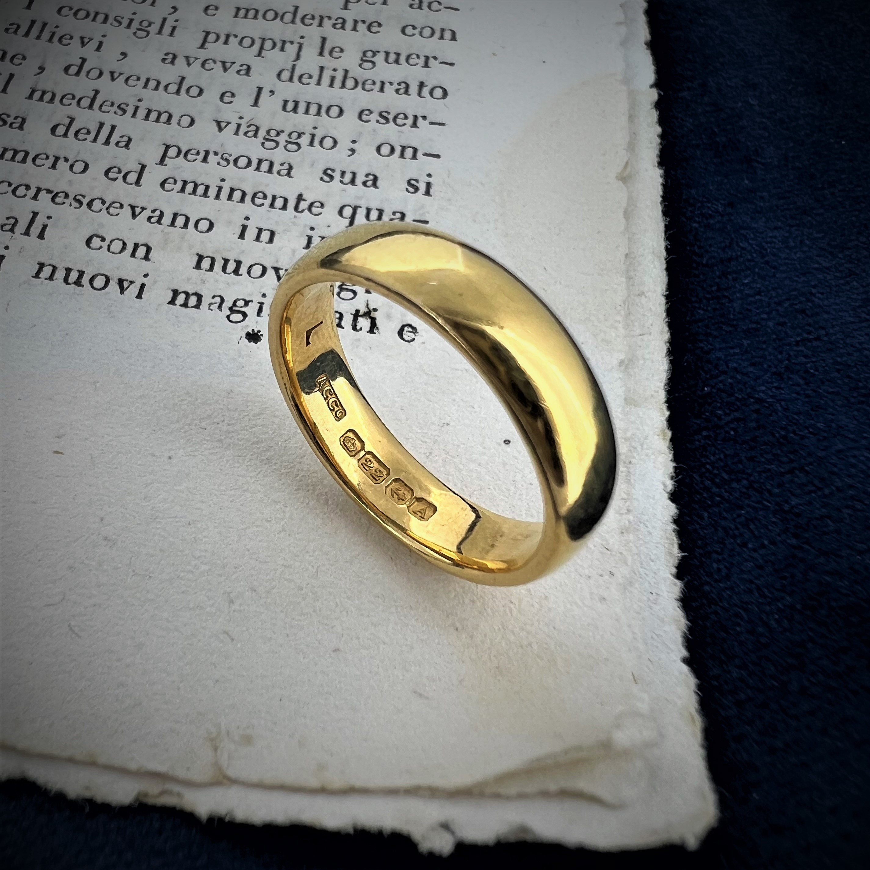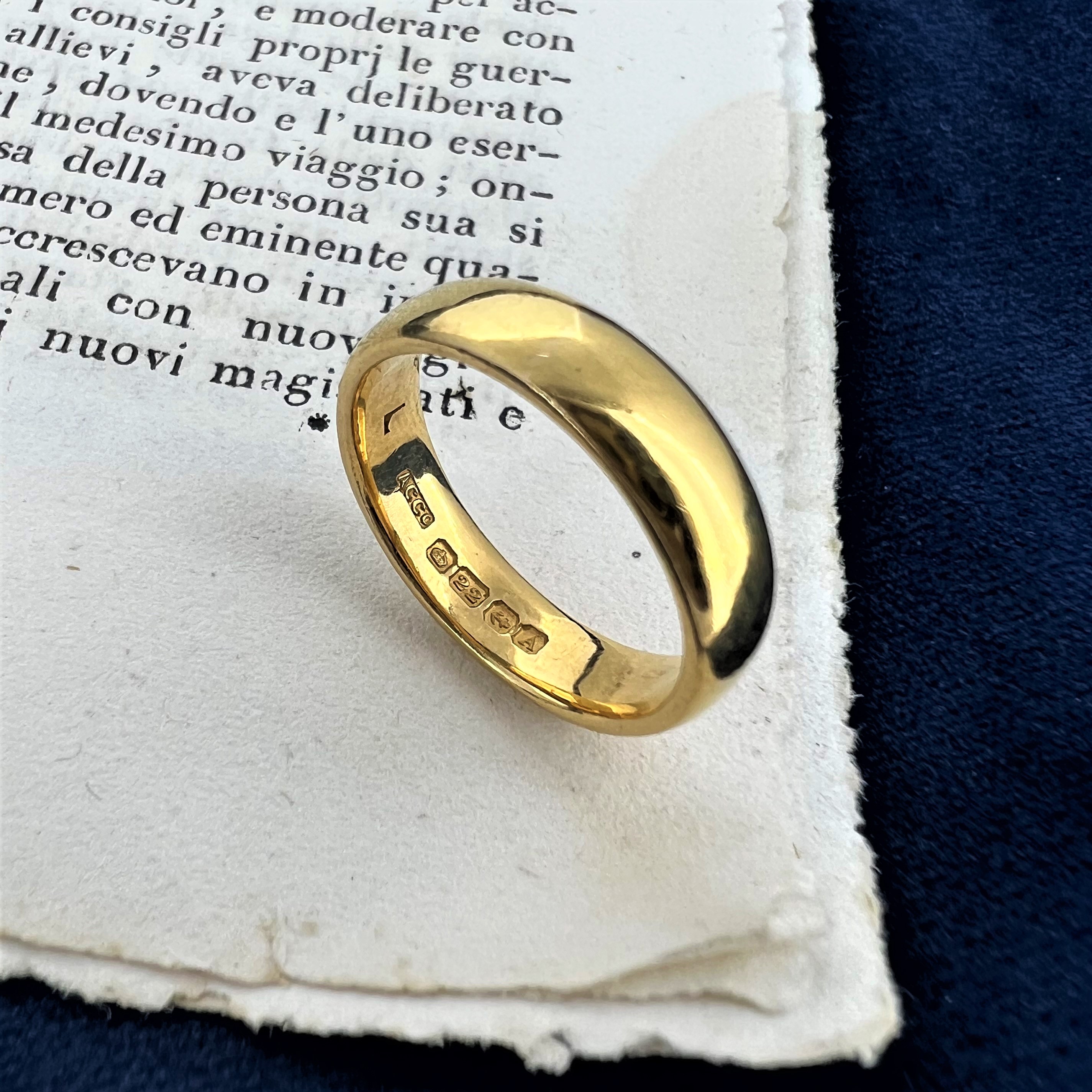 A lovely Wedding Ring crafted from 22ct Gold measuring 4.5mm in width, making it the perfect for width for those who can't decide between a 4mm or 5mm Wedding Ring. It is a Medium Weight Court profile, meaning its domed inside and out and feels smooth on the finger.