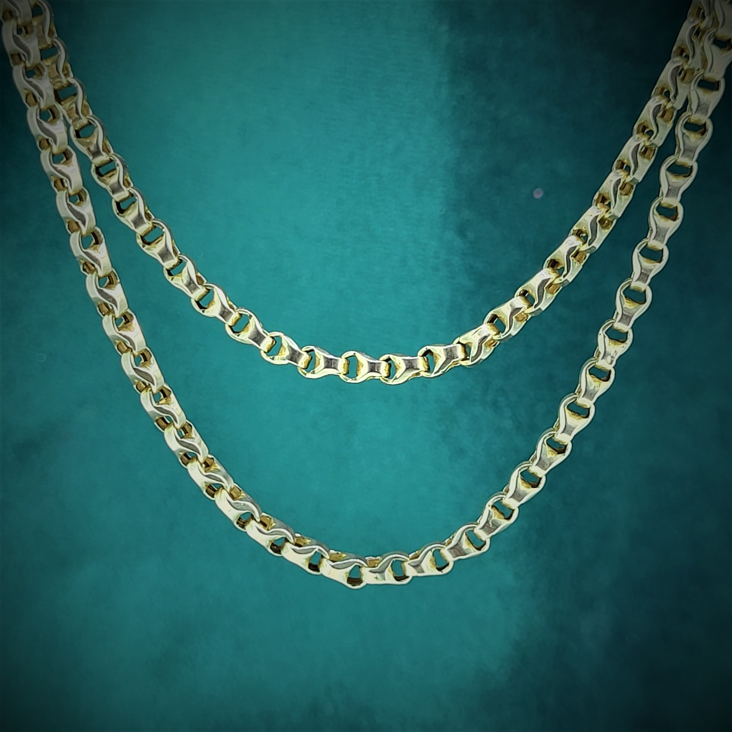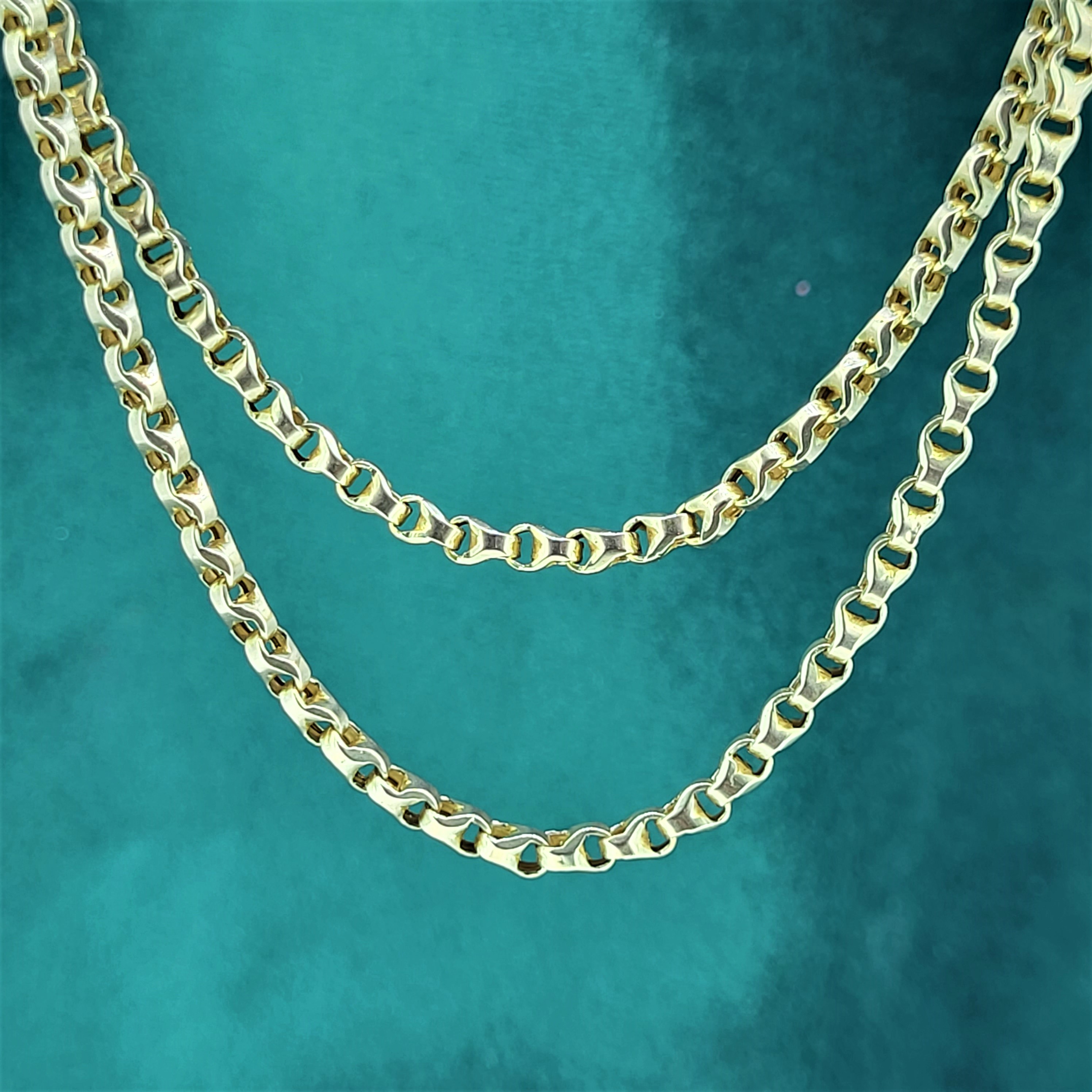 It is in the lighter weight category weighing 16.4 grams and is strong and smooth to wear. The swivel fitting can be used to attach a range of accessories and pendants to create a variety of on-trend looks (as shown in the photos).What is the link? Not classic belcher... I actually have no idea on this one!