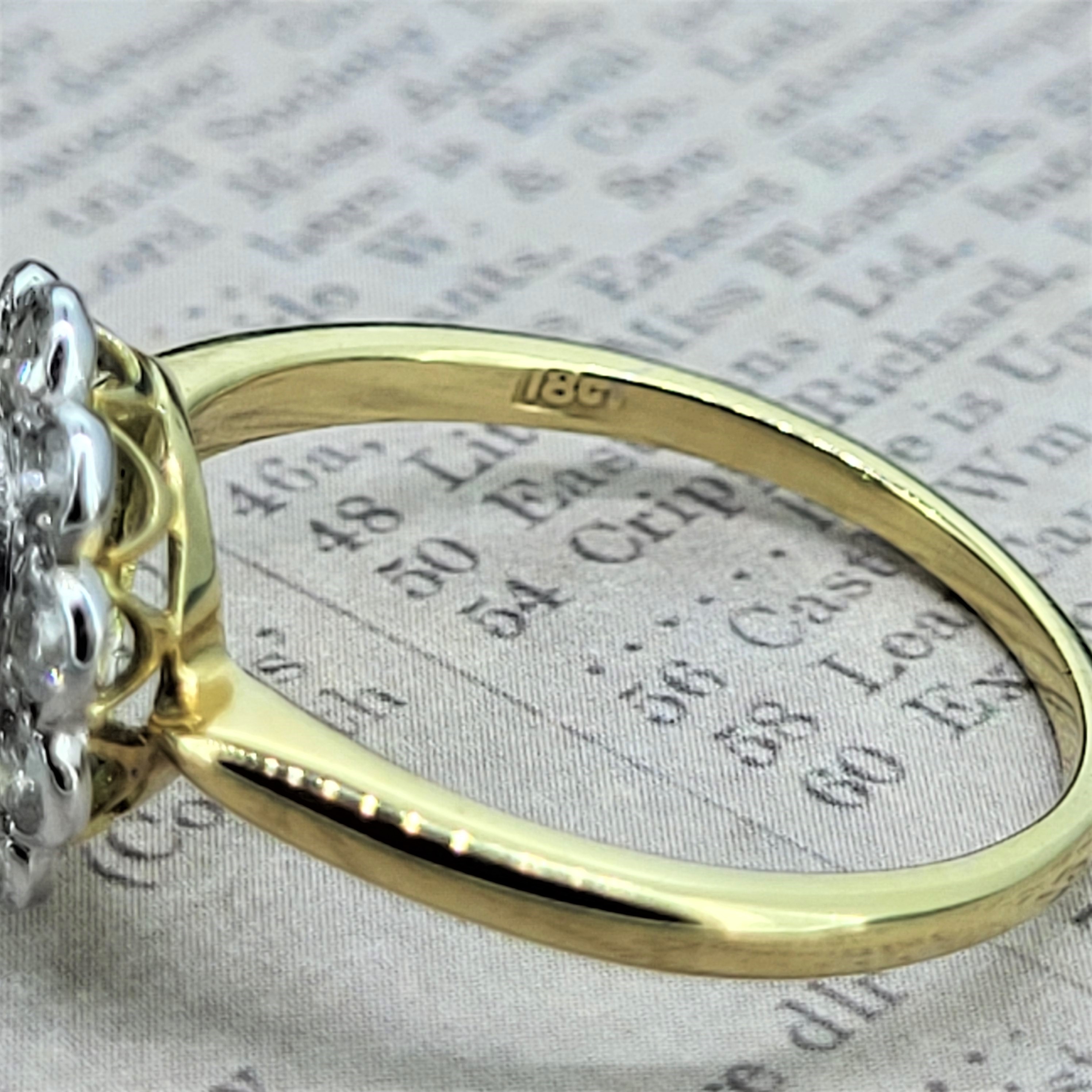 The ring is Stamped 18CT and weighs 2.6 grams. It is currently a Size N and can be sized to suit.