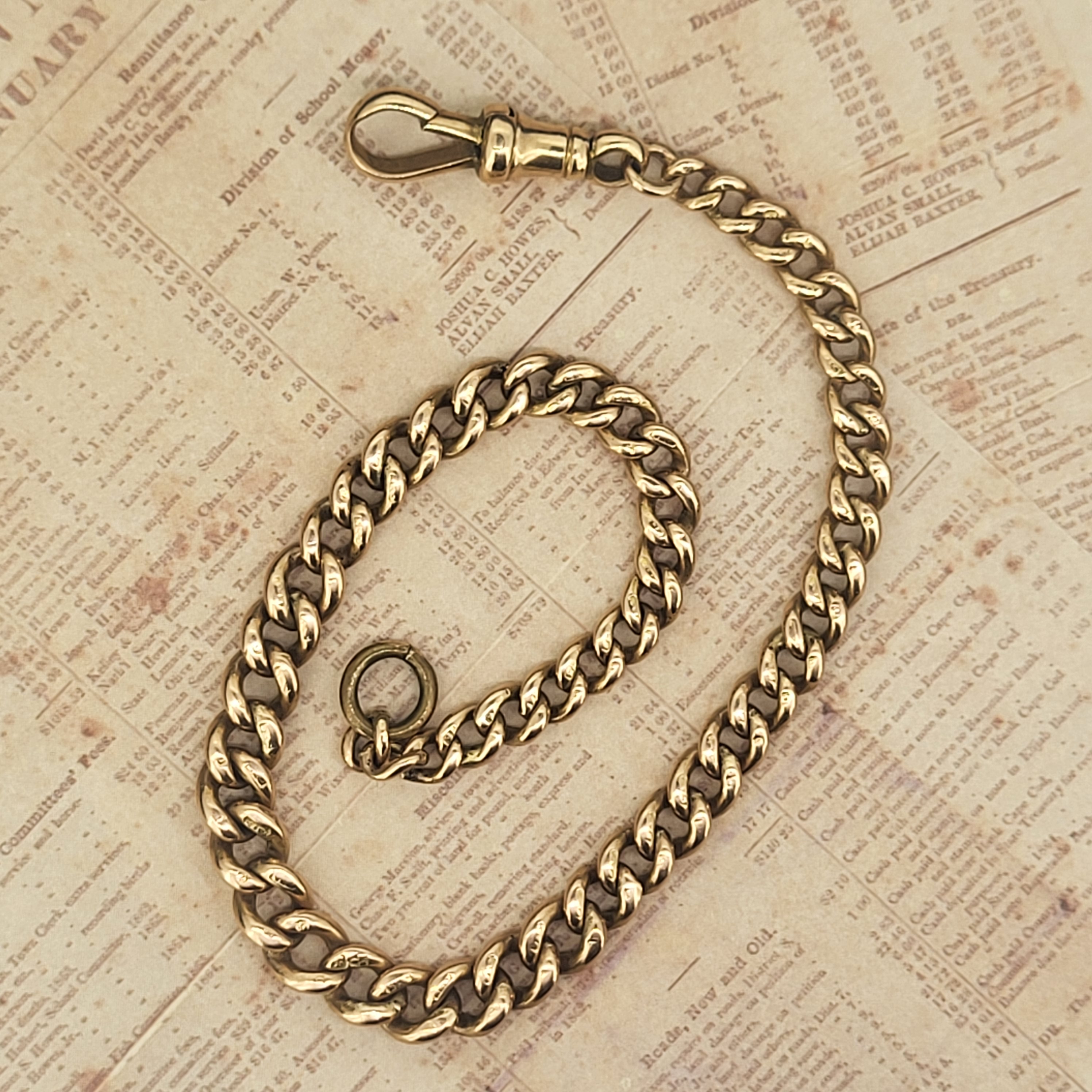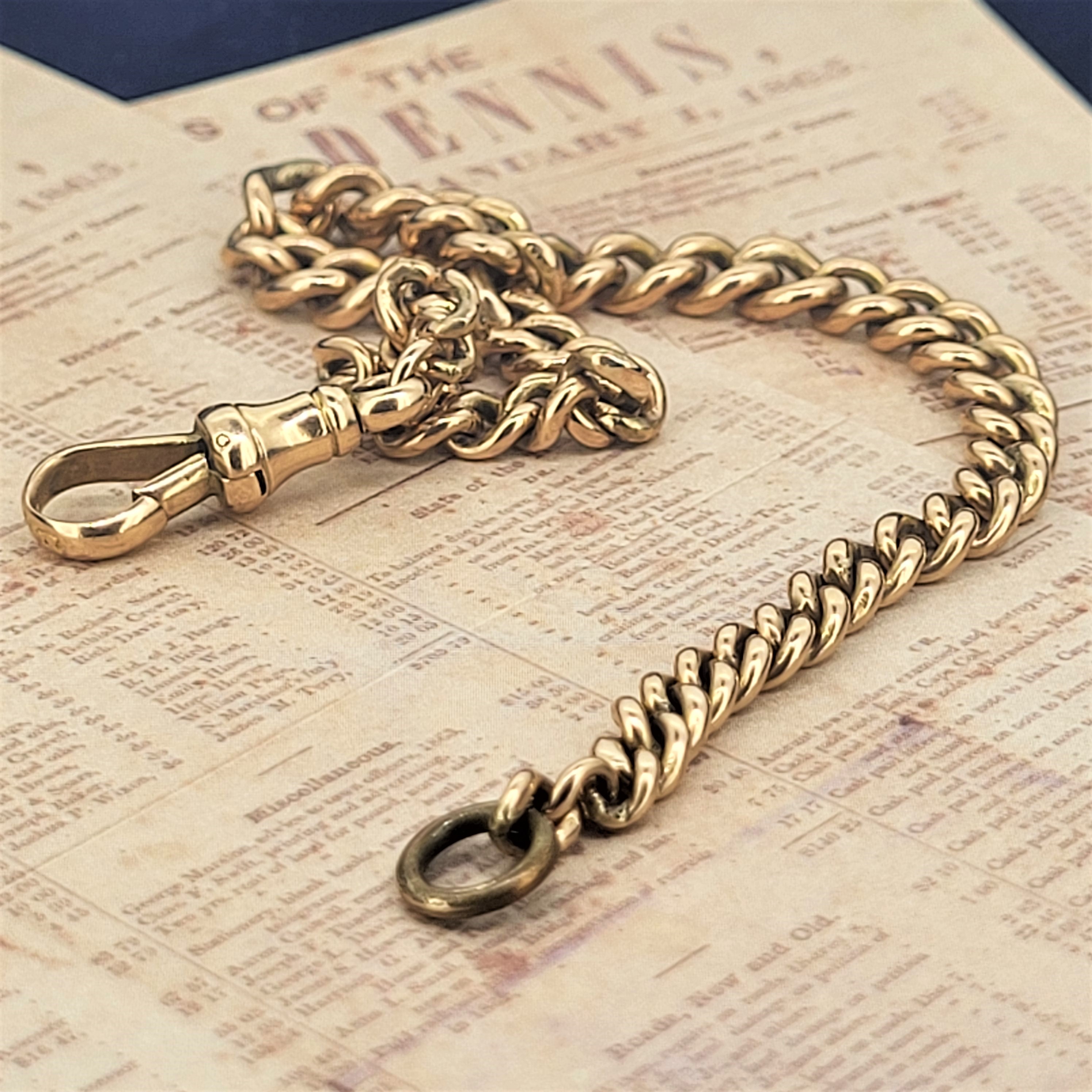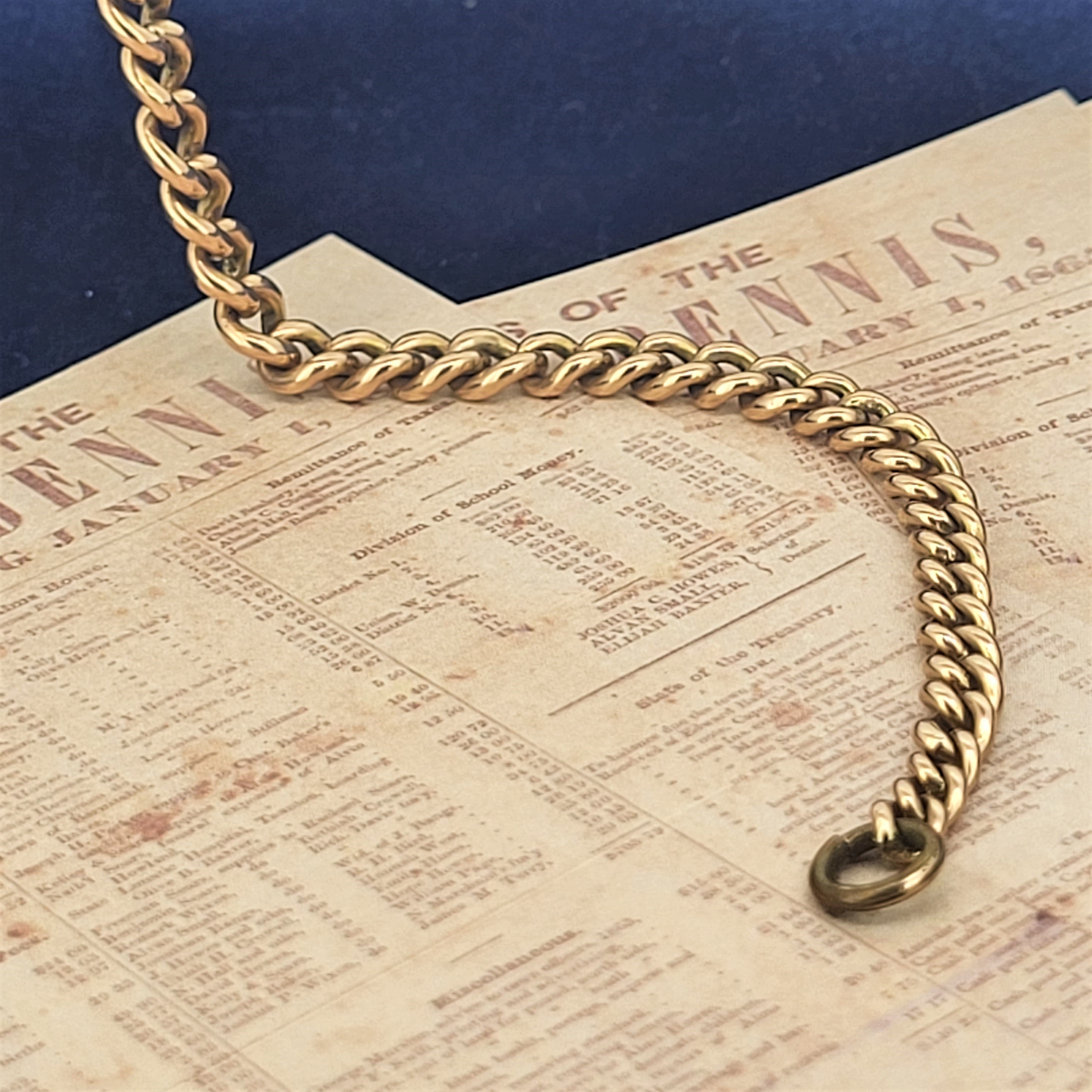 This stunning Albert Bracelet is crafted from 9ct Yellow Gold with all original links and fittings. Every link is stamped and the bracelet weighs a total of 11.7 grams.