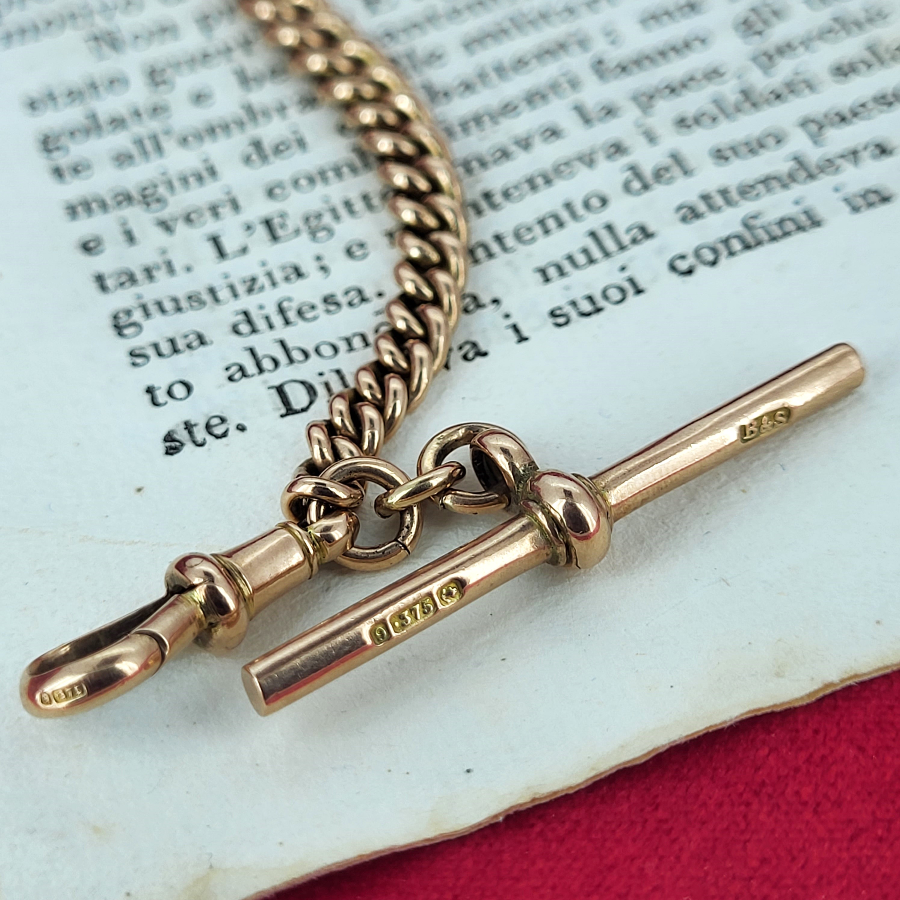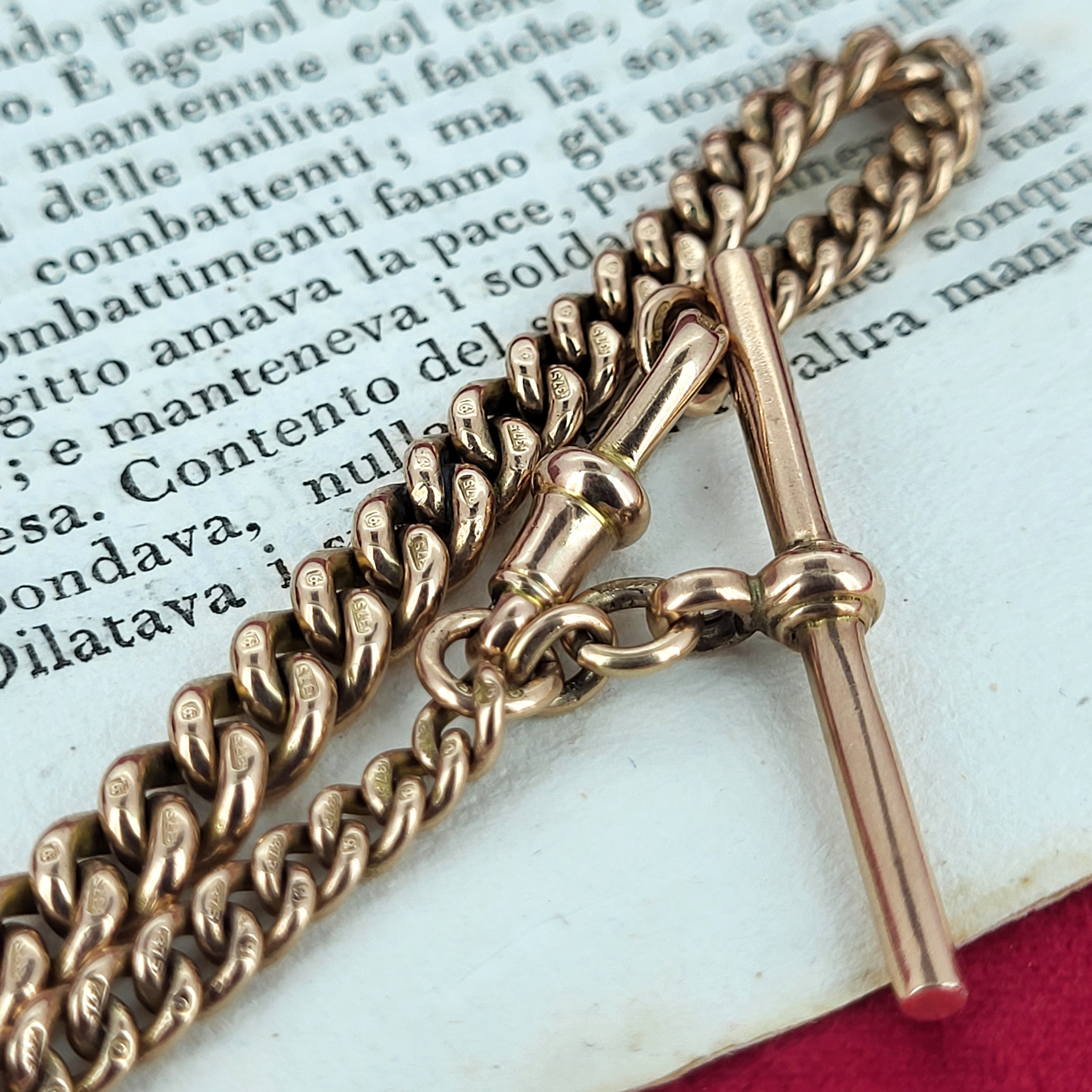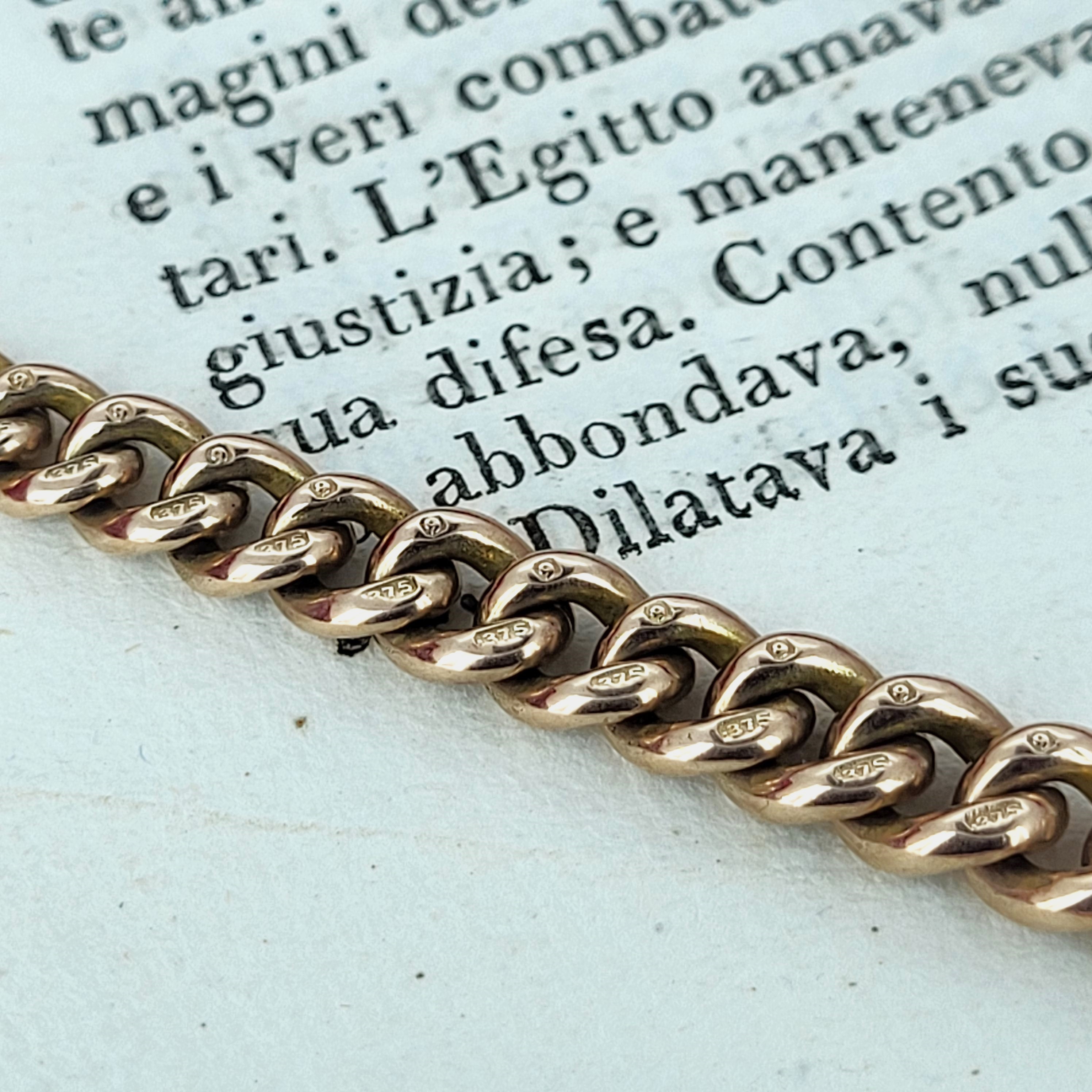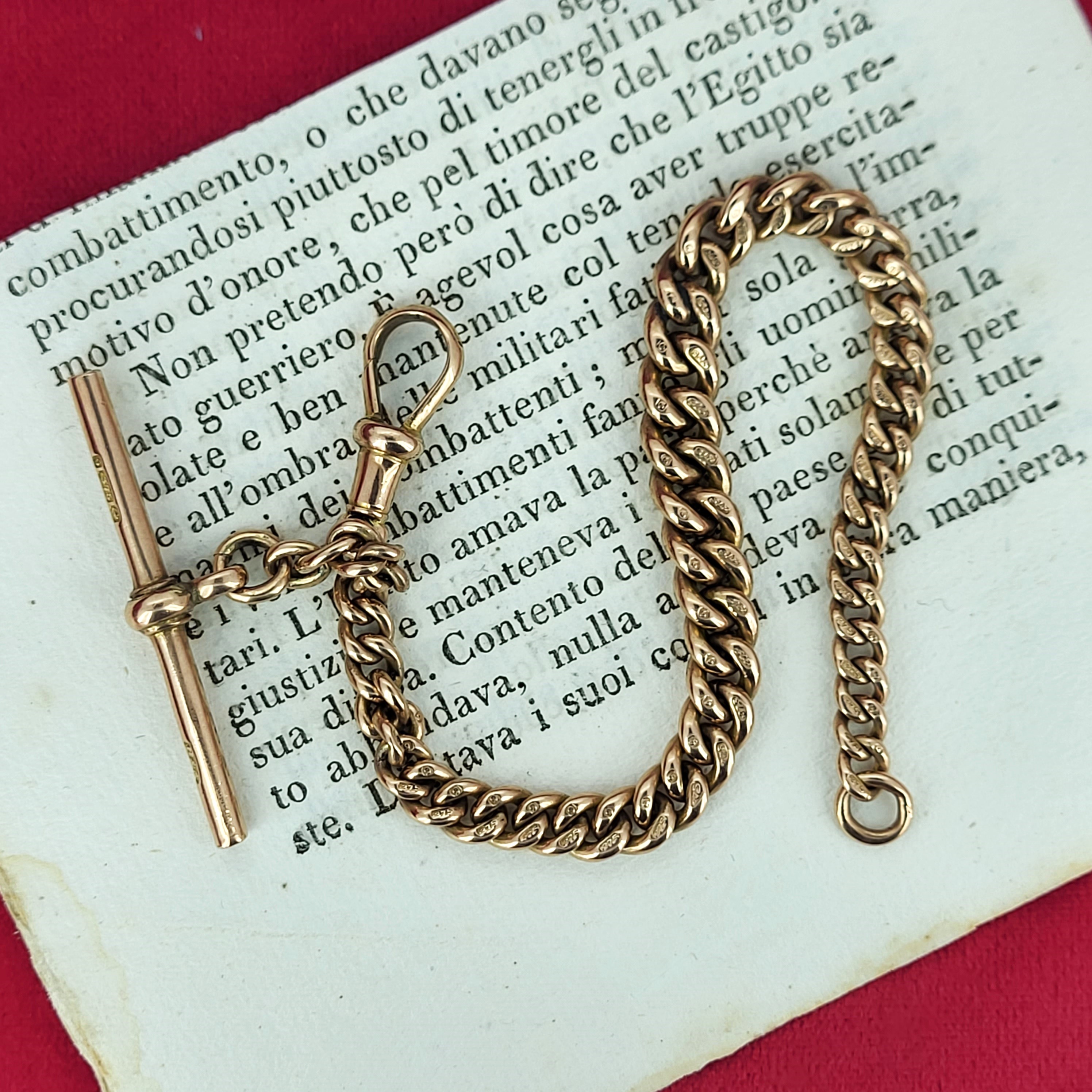 A wonderful Traditional Albert Style Bracelet with tight curb links crafted from 9ct Rose Gold. The bracelet comprises a Swivel fitting and a T-Bar measuring 4cm in length.