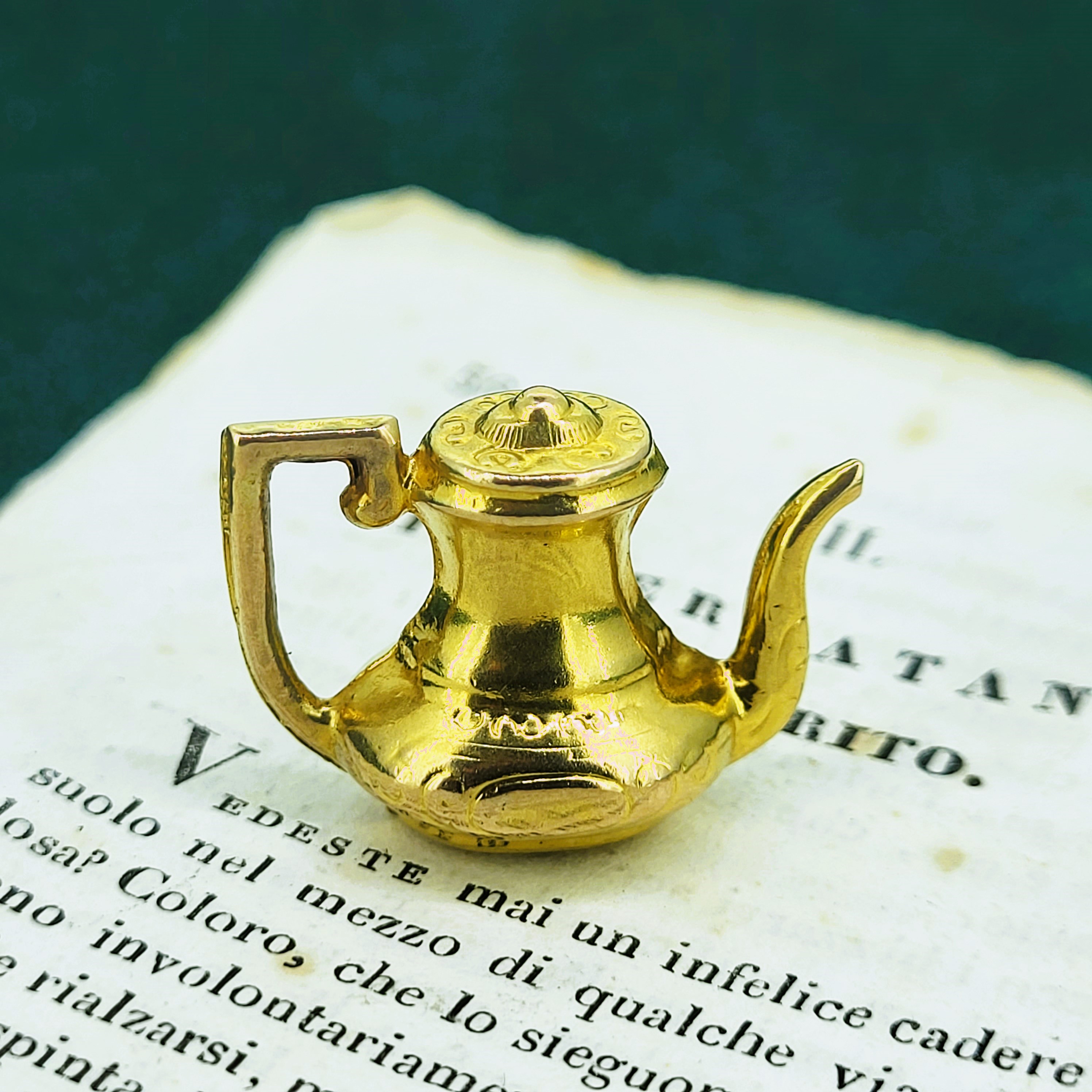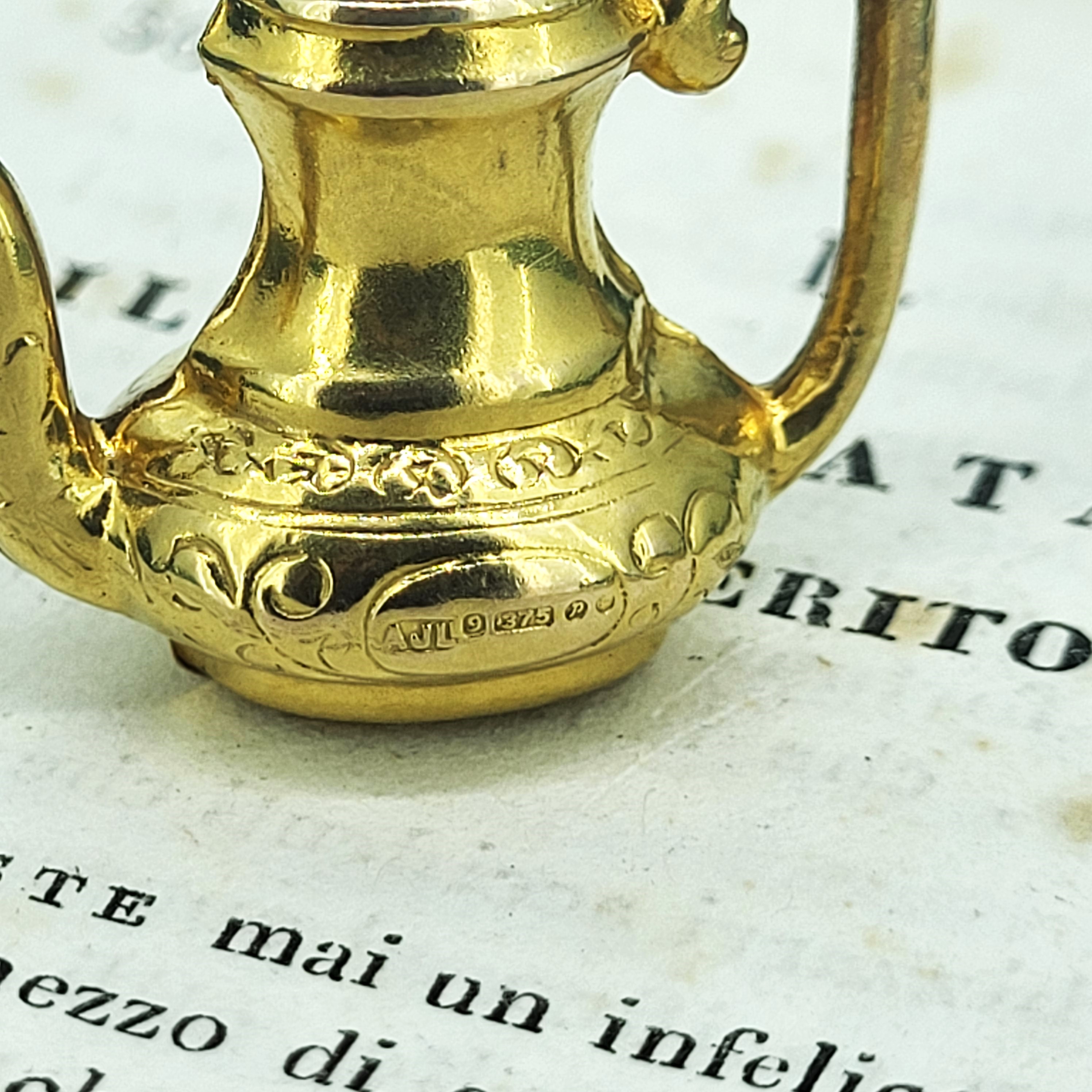 A vintage Coffee Pot Charm crafted from 9ct Yellow Gold. This beautiful charm can be worn as a pendant, layered up with different necklaces or even added to a bracelet.