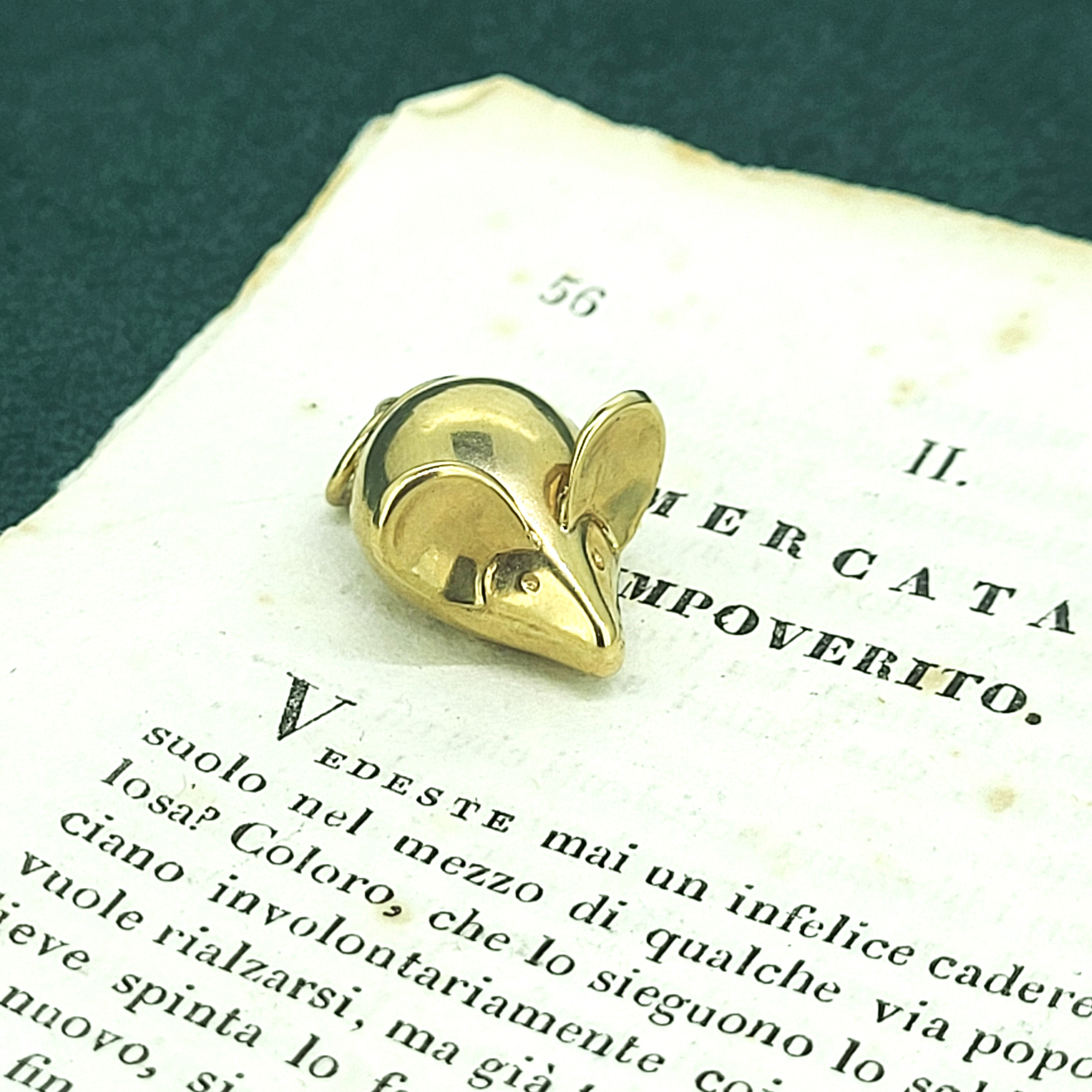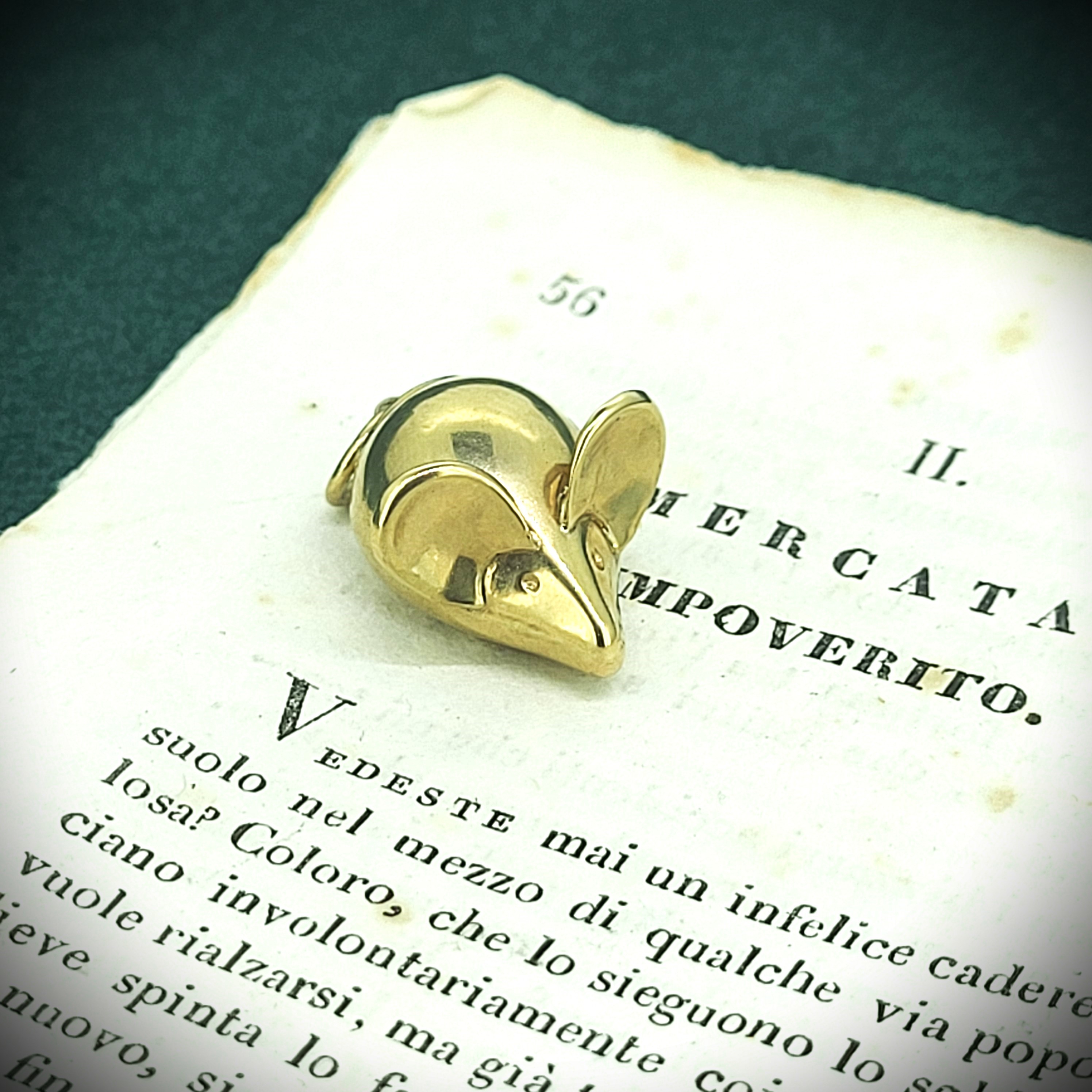 A cute Mouse Charm crafted from 9ct Yellow Gold. A mouse can symbolize many things, including timidity, fertility, stealth, and awareness. They are also seen to be a symbol of wisdom.
