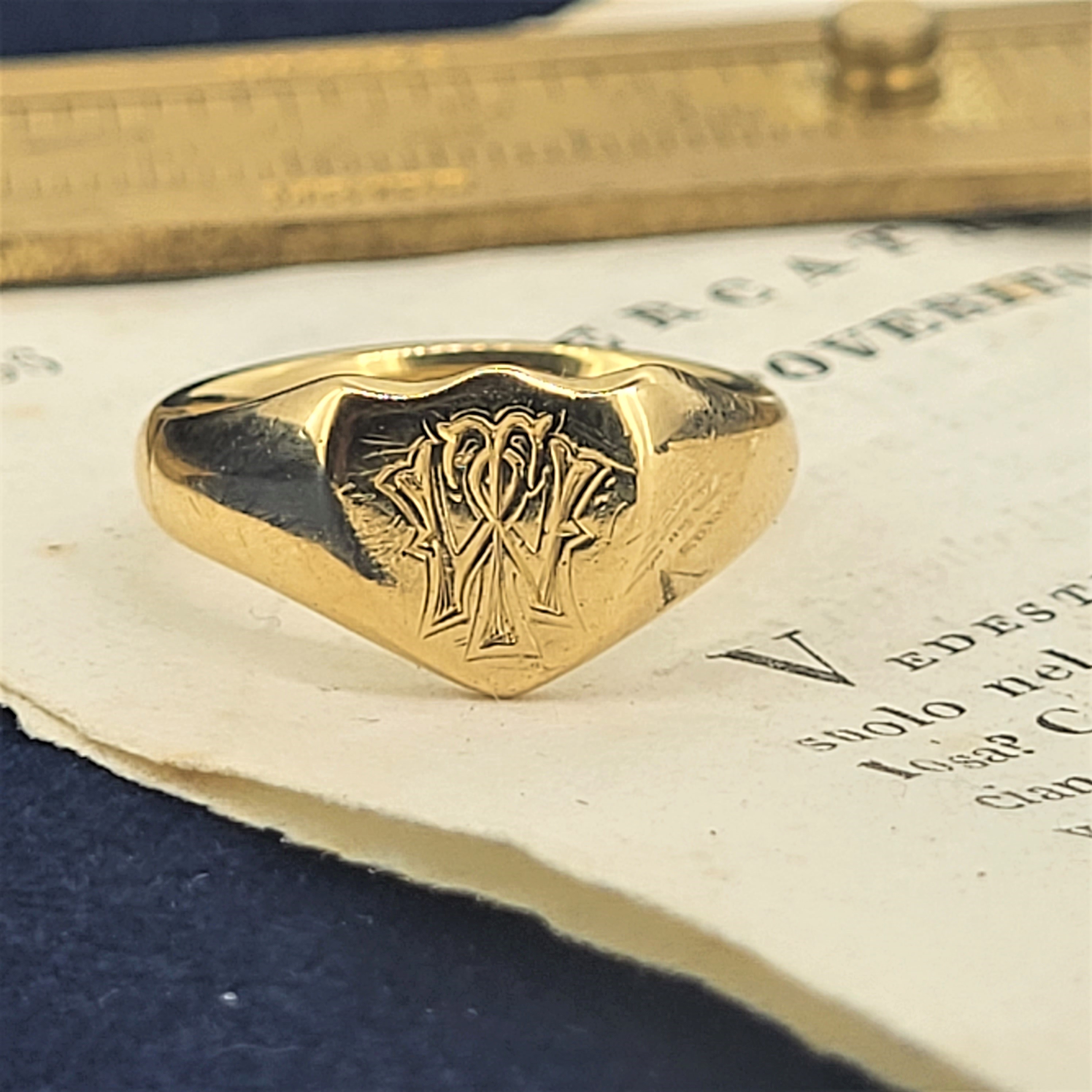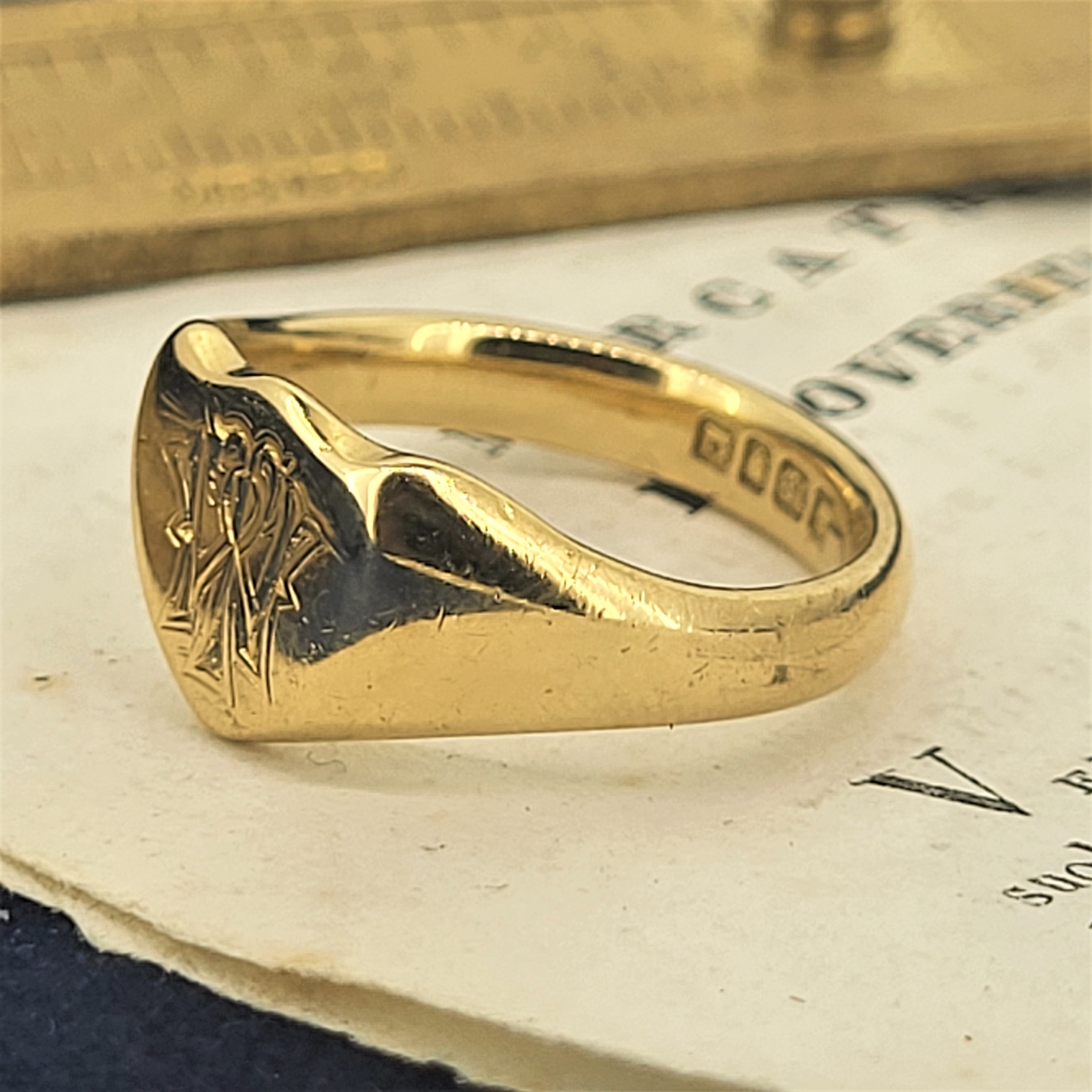 It was hallmarked in London in 1918 and the head measures 9mm by 11mm. The shield features a hand engraved, crisp monogram style engraving with the initials W T which can be removed if your own personalisation is a preference (although we love the detail).