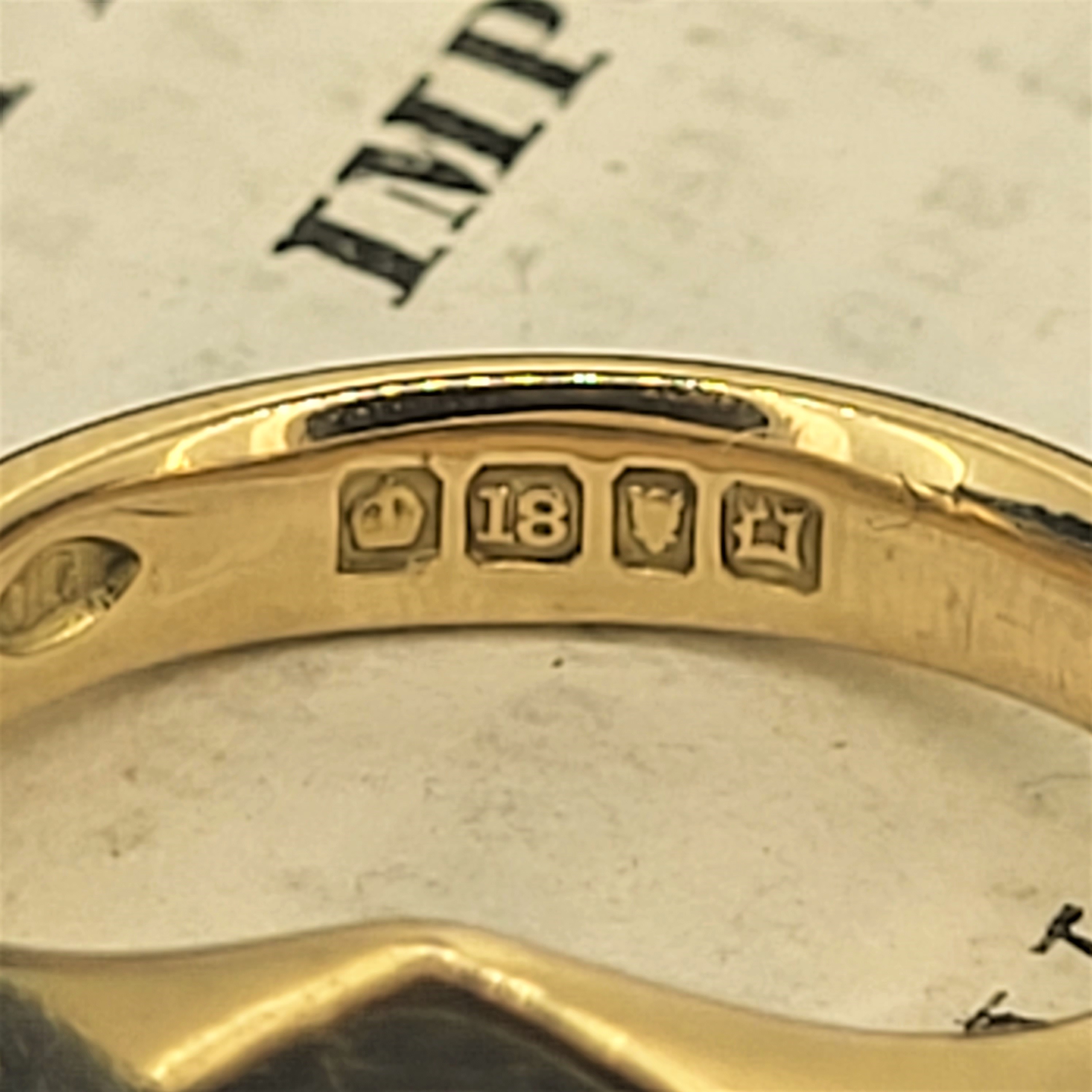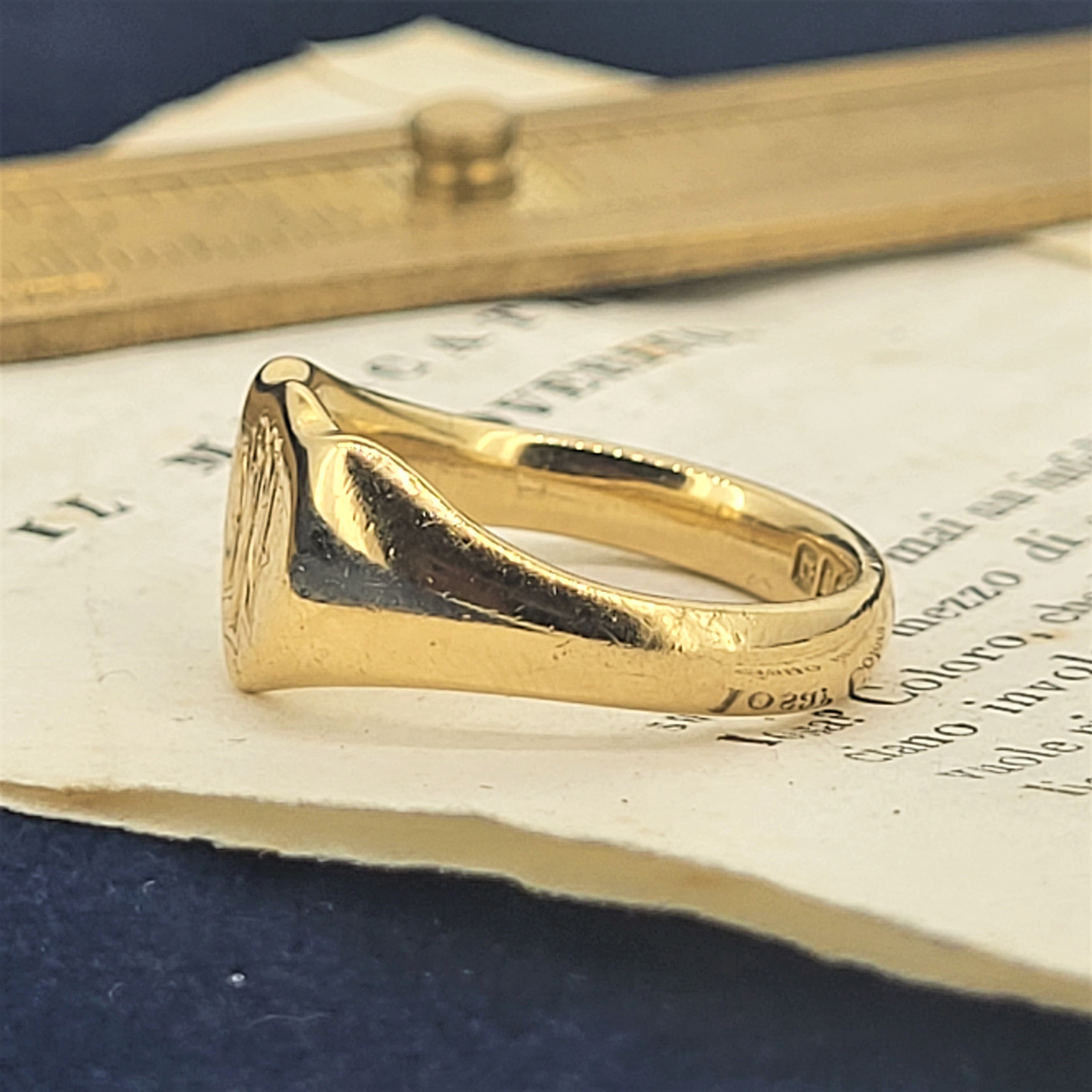 A fabulous Shield Shaped Unisex Signet Ring crafted from 18ct Yellow Gold weighing 6.6 grams.