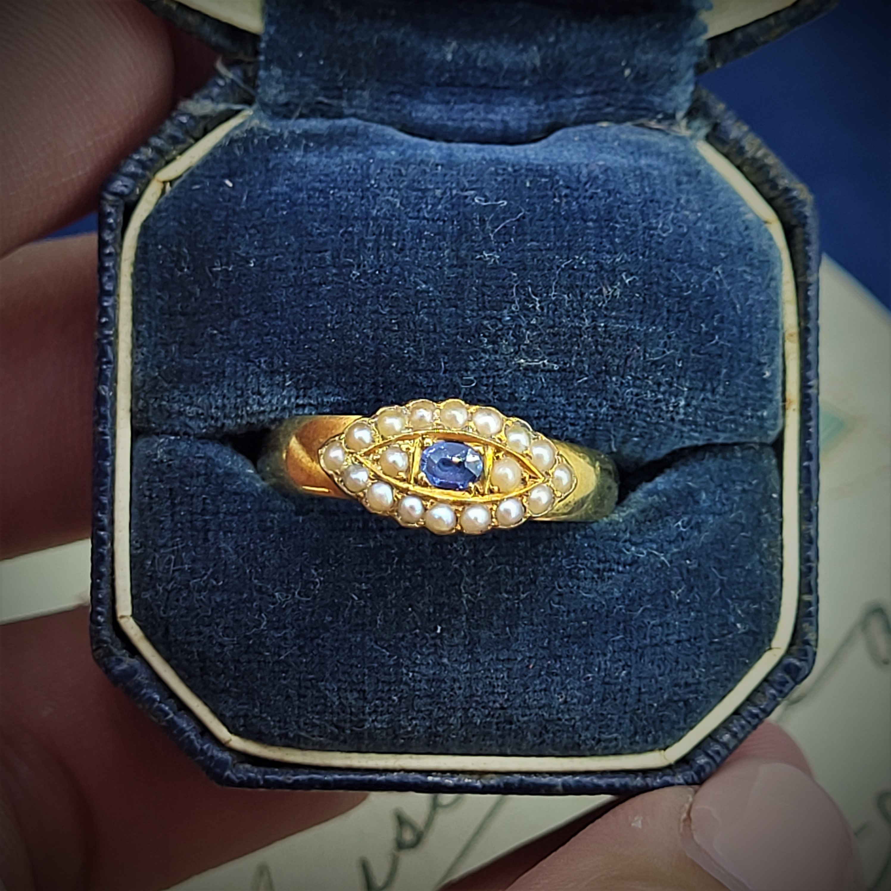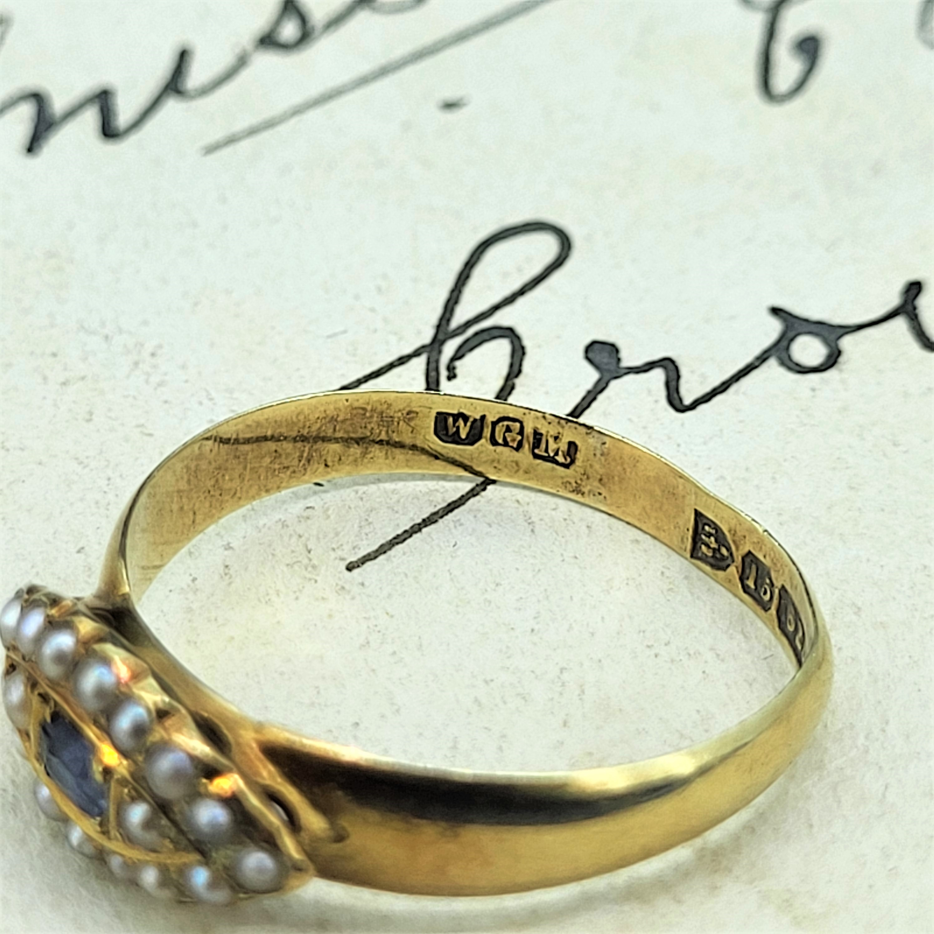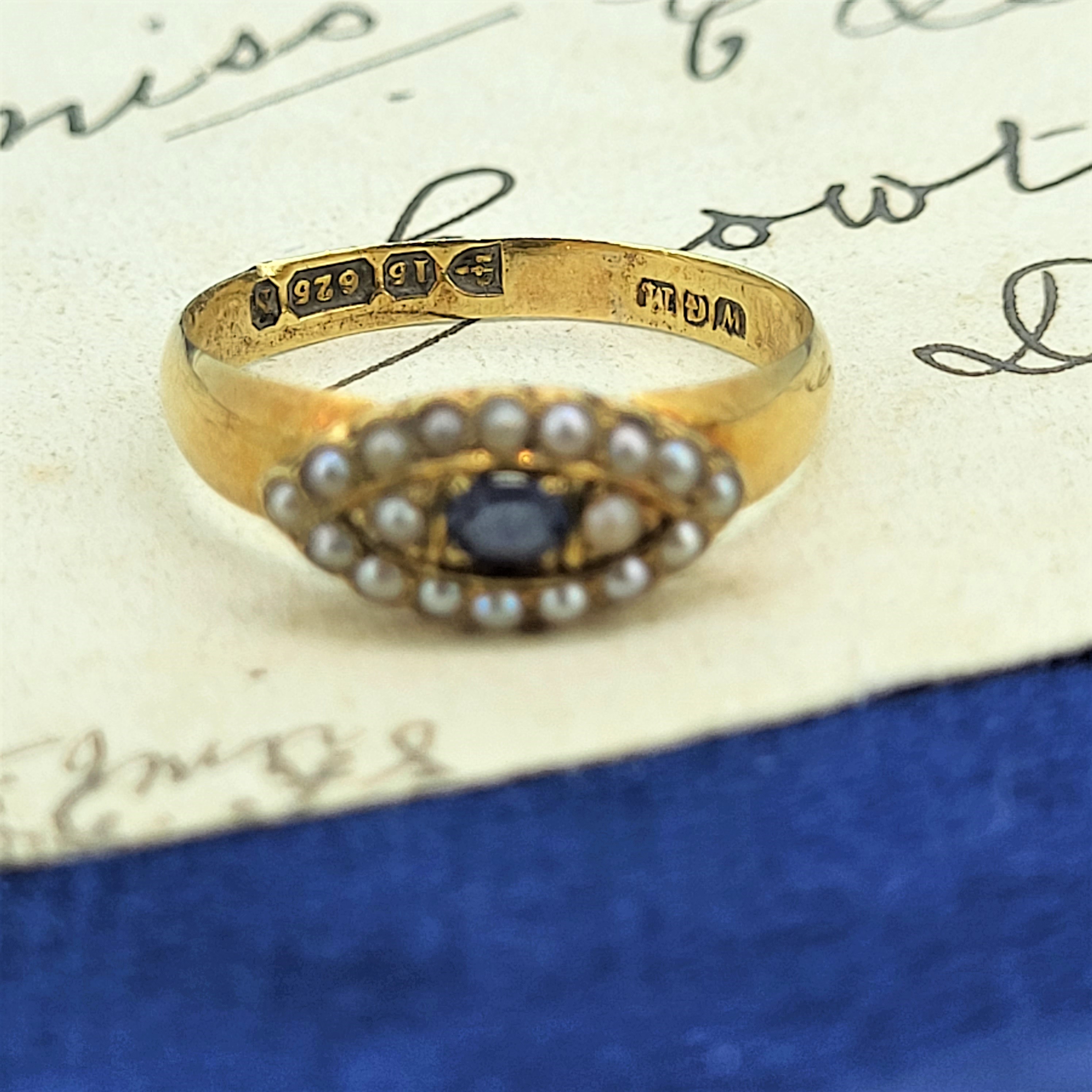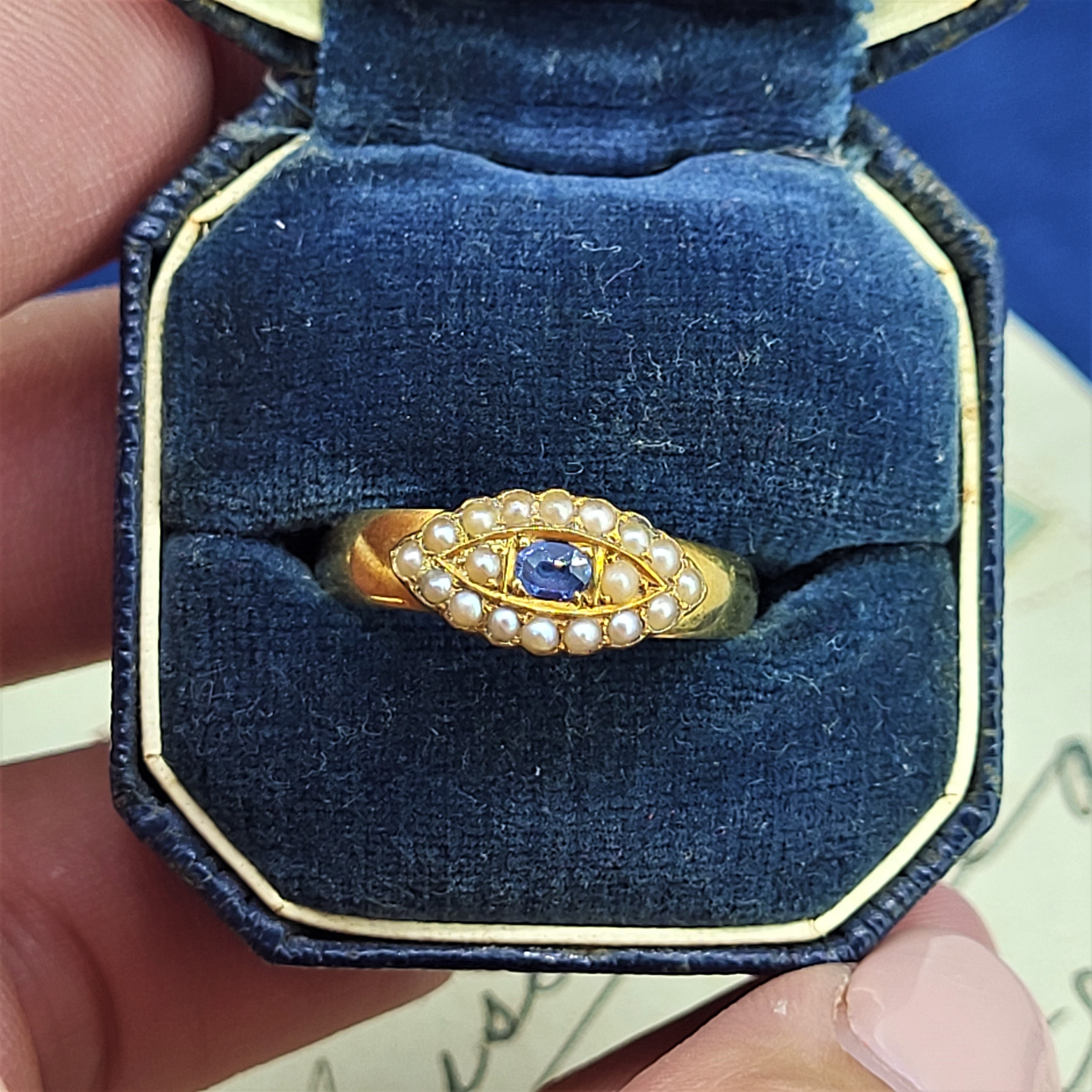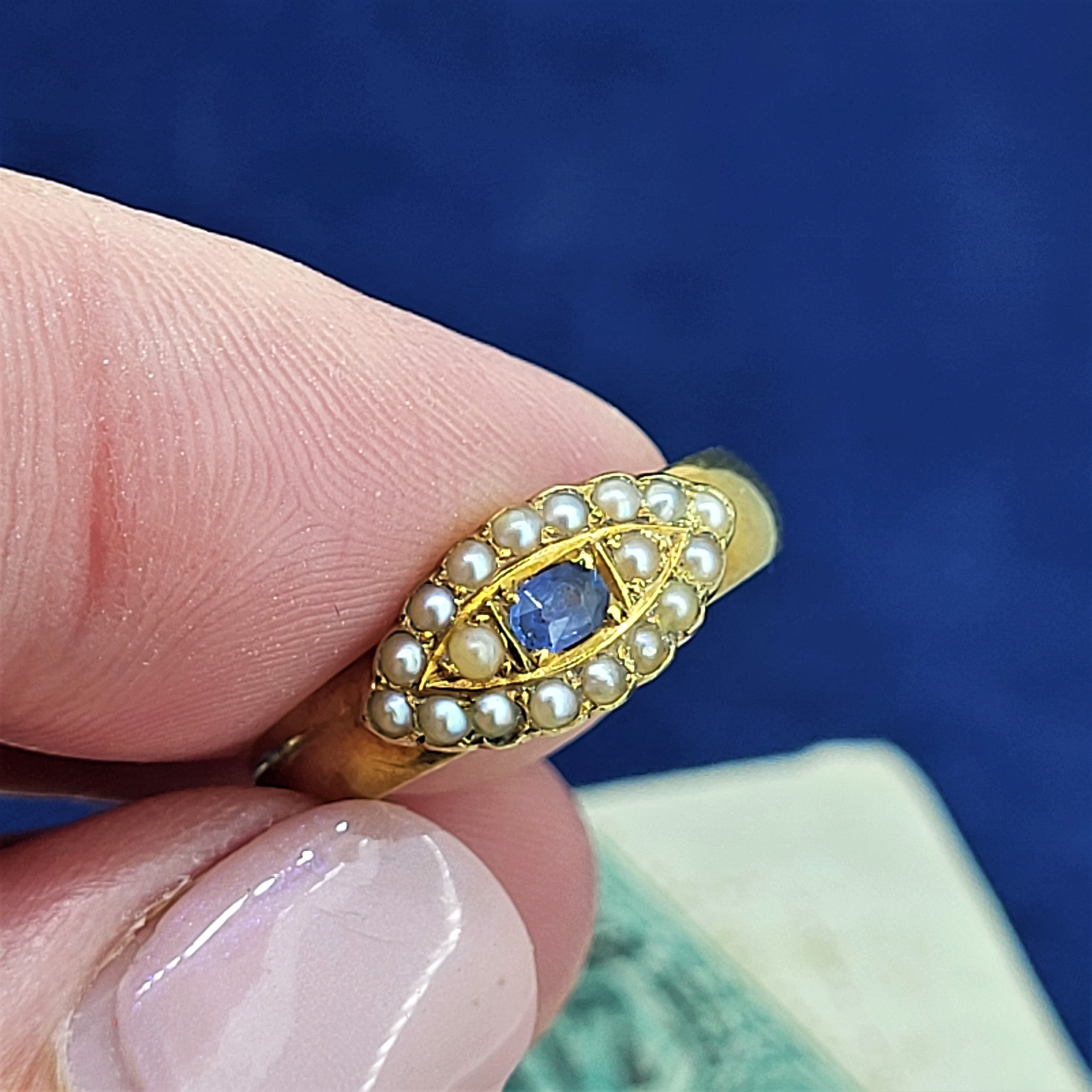 A really lovely Victorian Sapphire and Seed Pearl Ring crafted from 15ct Gold.