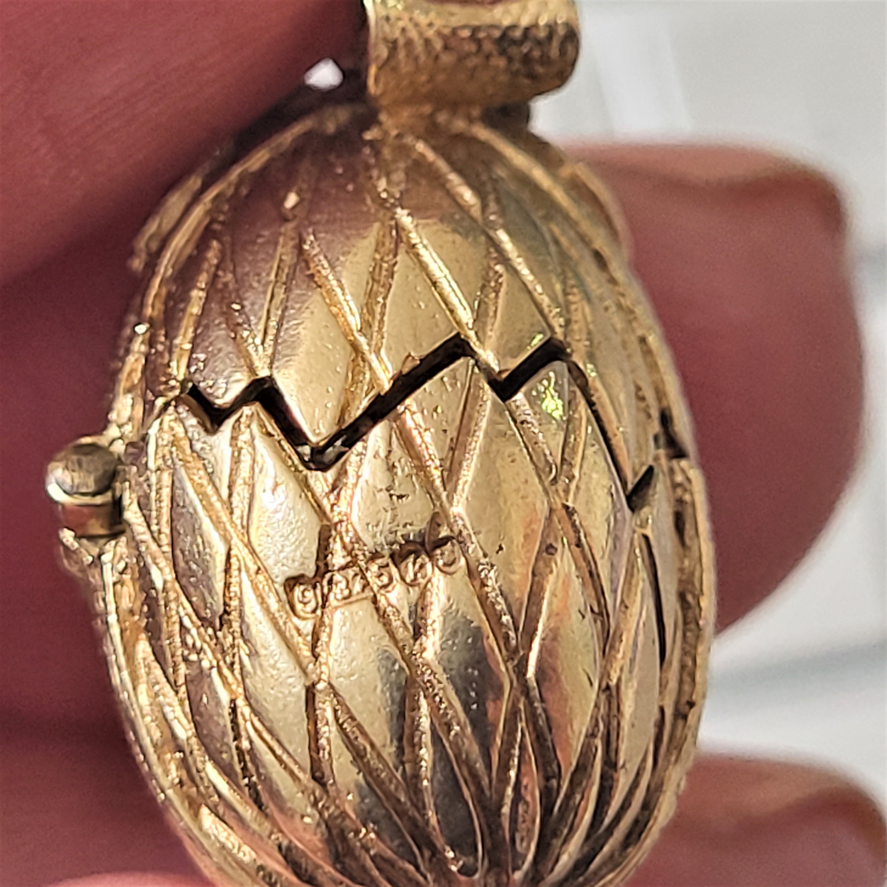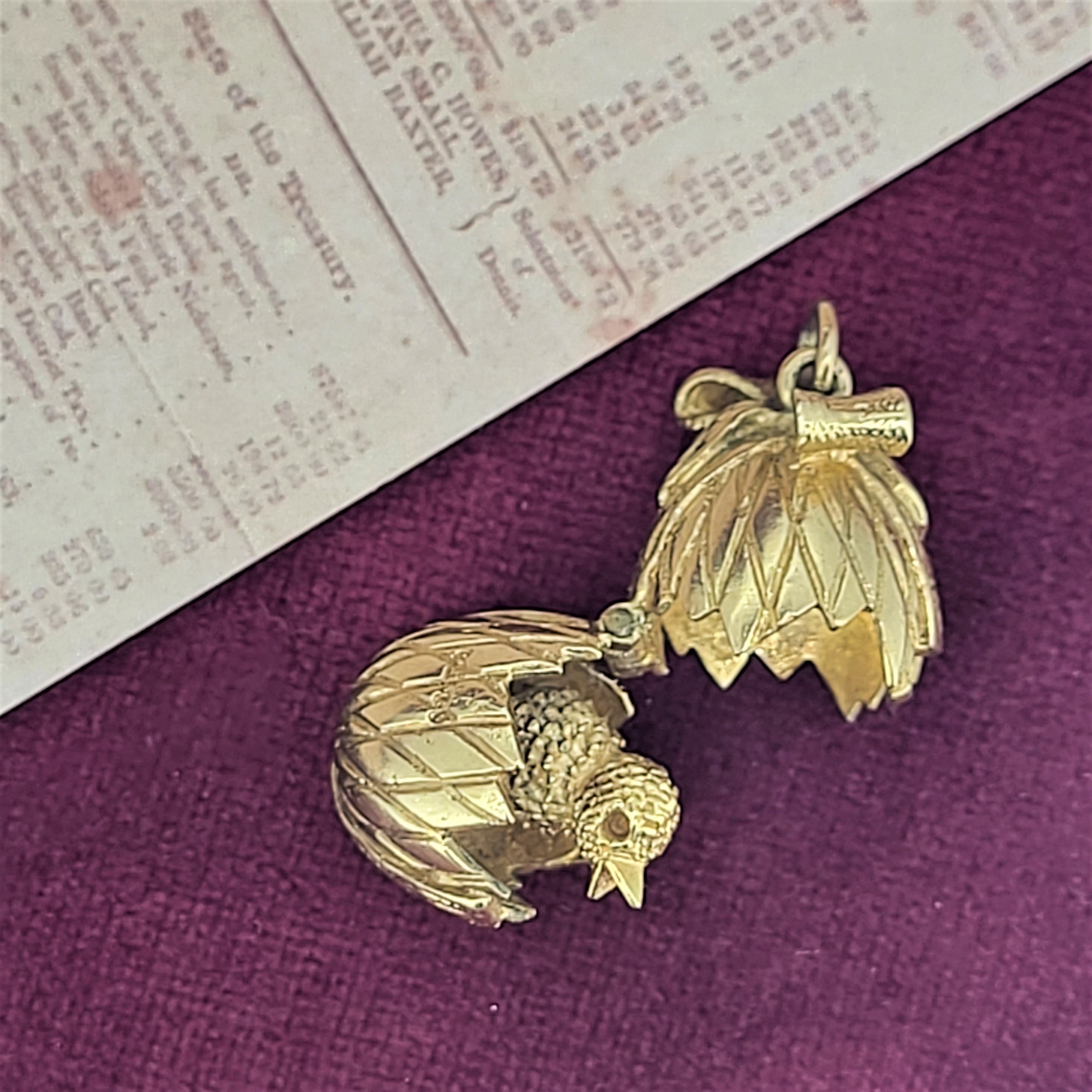 The charm opens to reveal the chick hatching and when its closed it measures 22mm by 14mm.