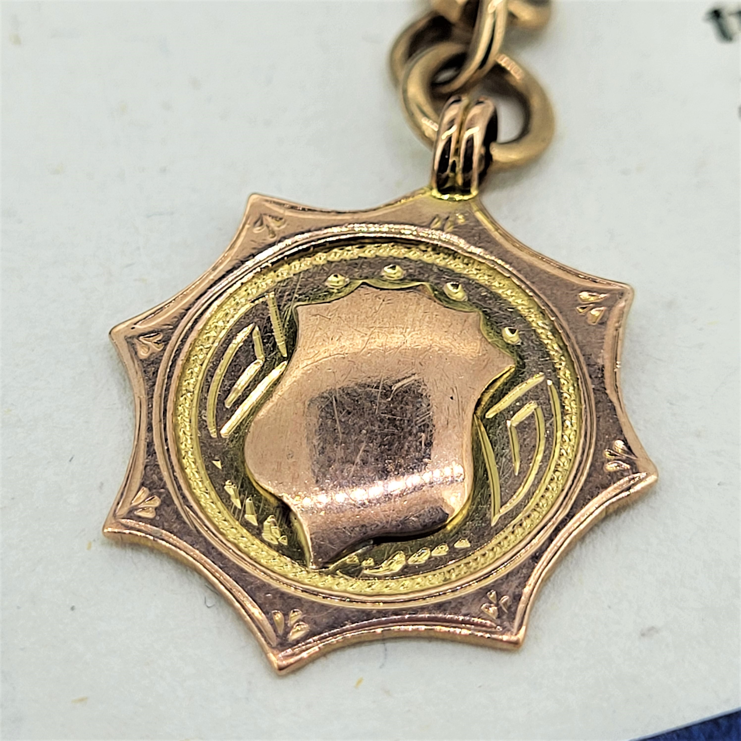 9ct Rose Gold Shield Fob Pendant hallmarked in Birmingham in 1928 by H B & S for Herbert Bushell & Sons Ltd.