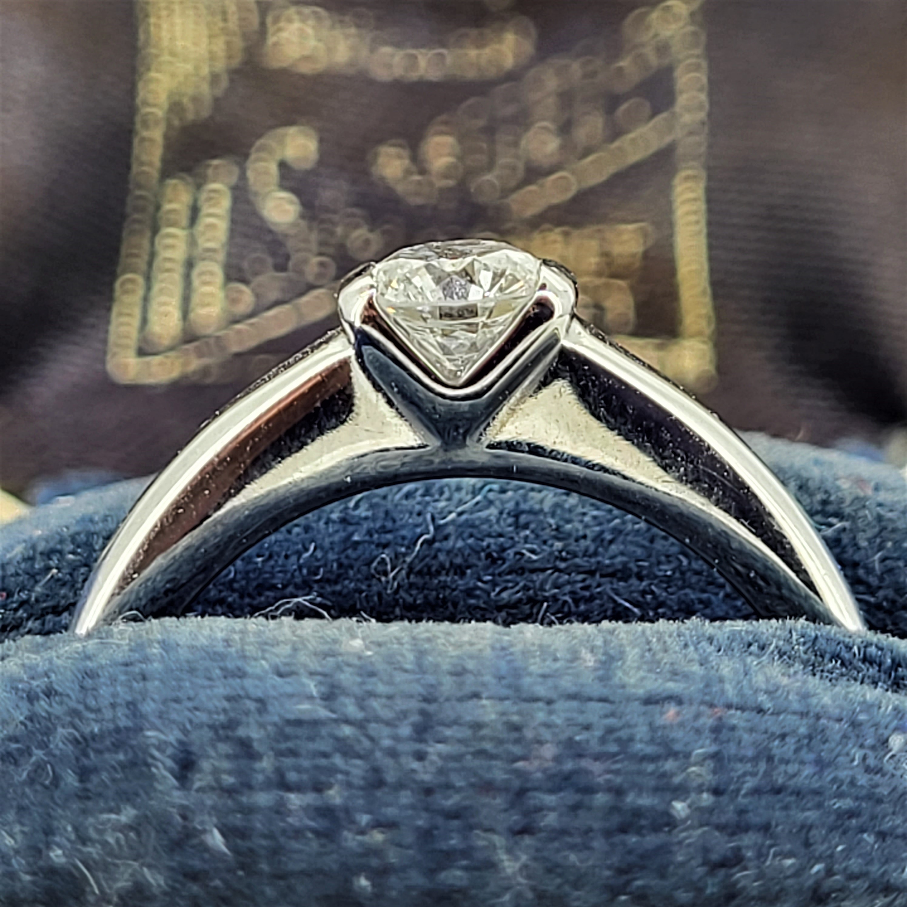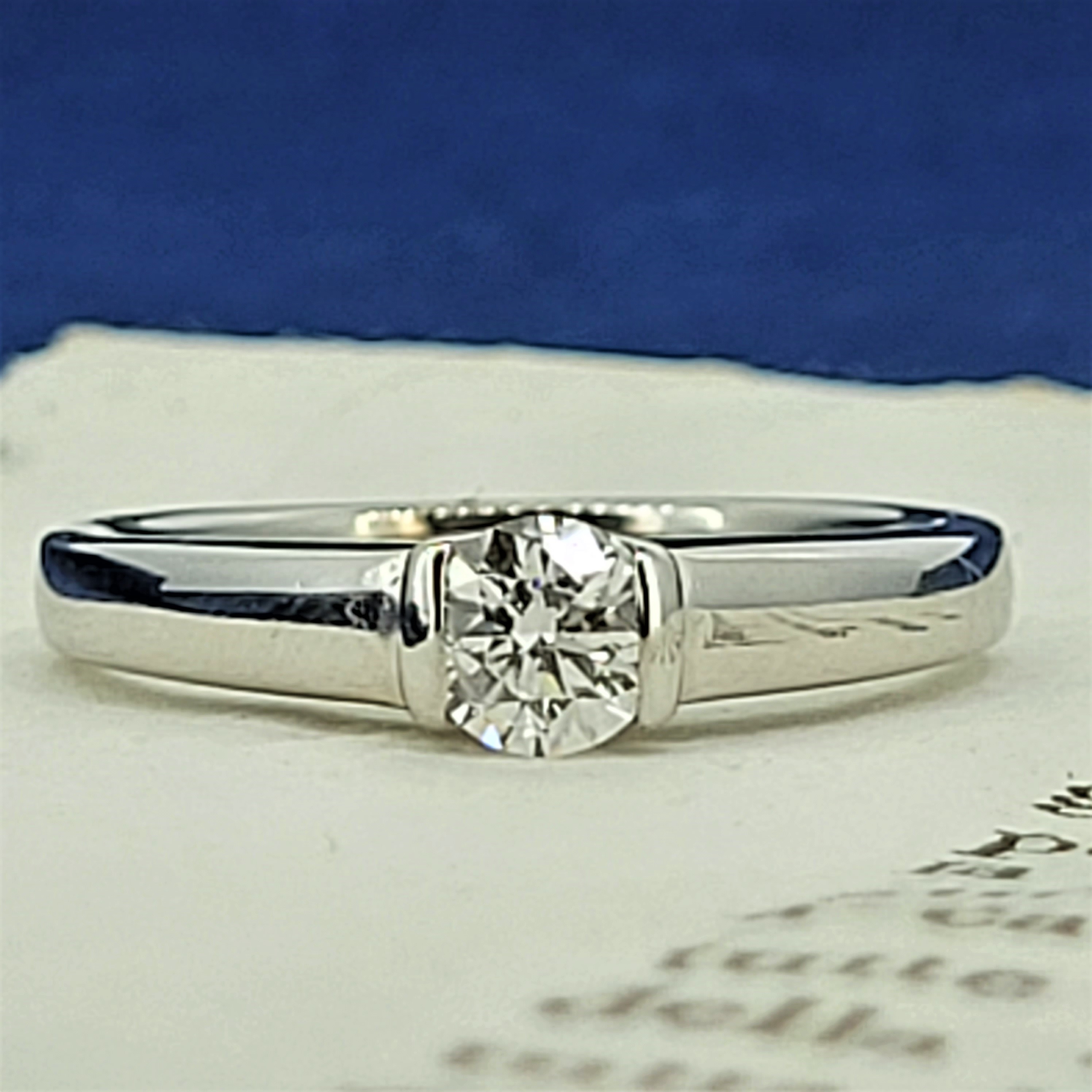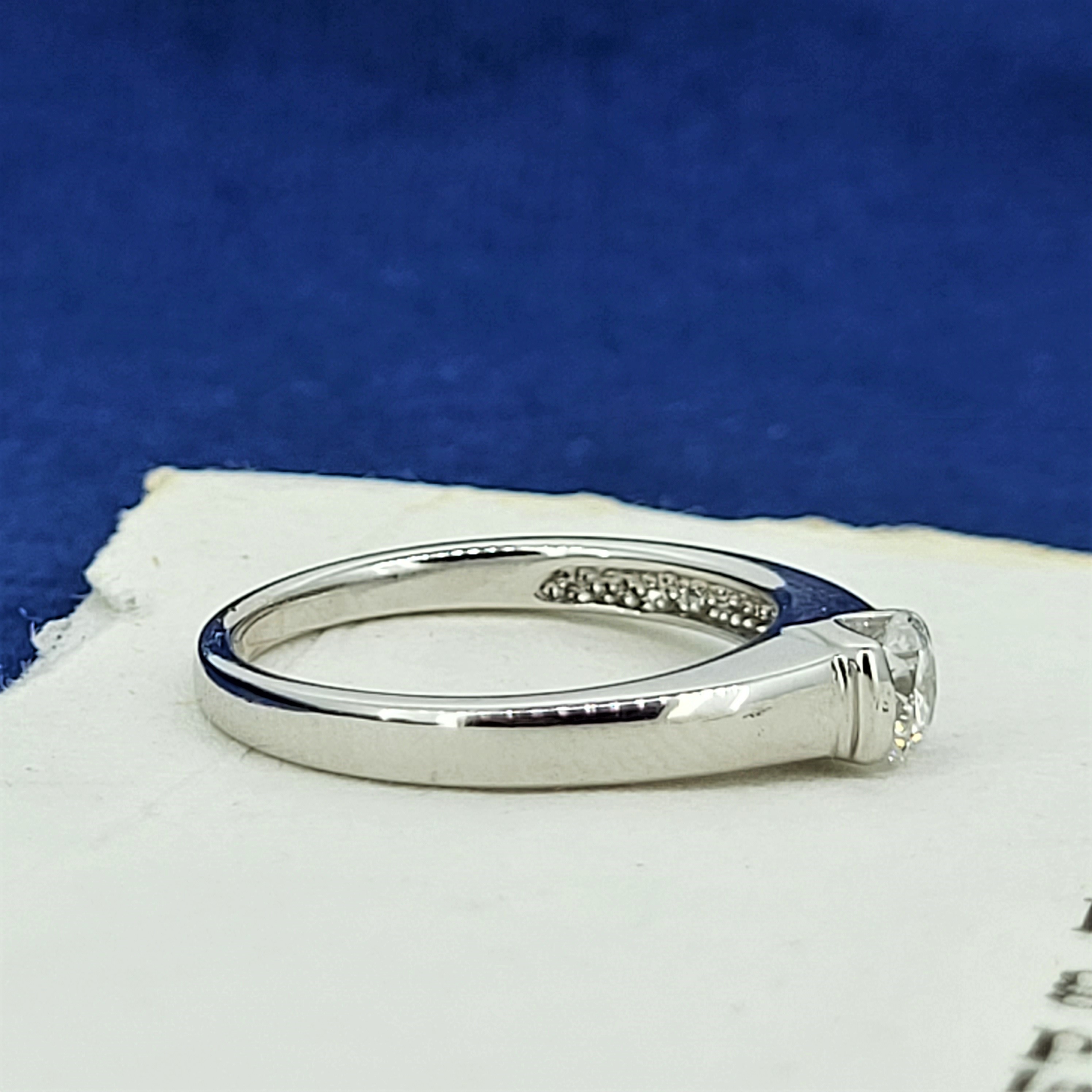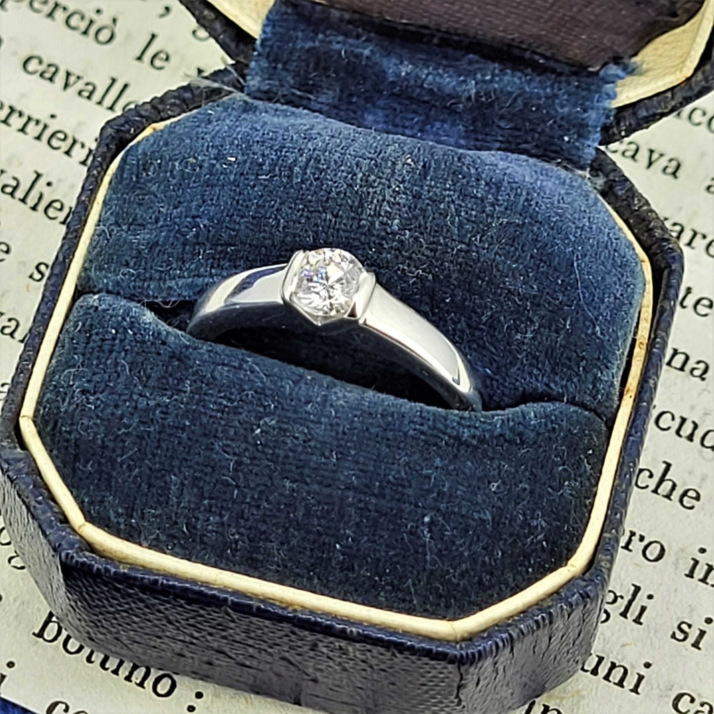 The diamond itself G VS (uncertified) and the ring weighs an impressive 3.3grams. Currently size K 1/2 and can be sized. This is unworn (new, old stock).