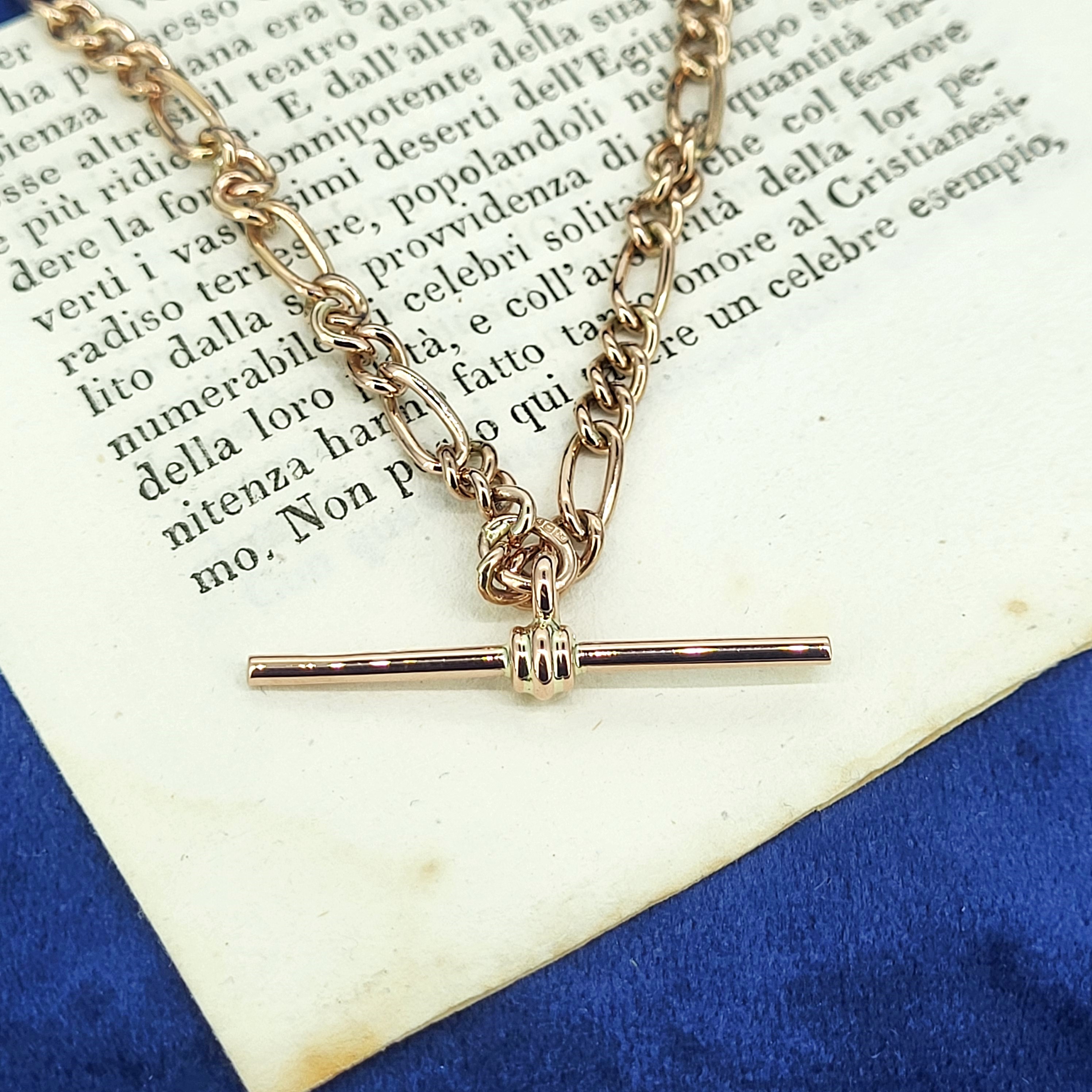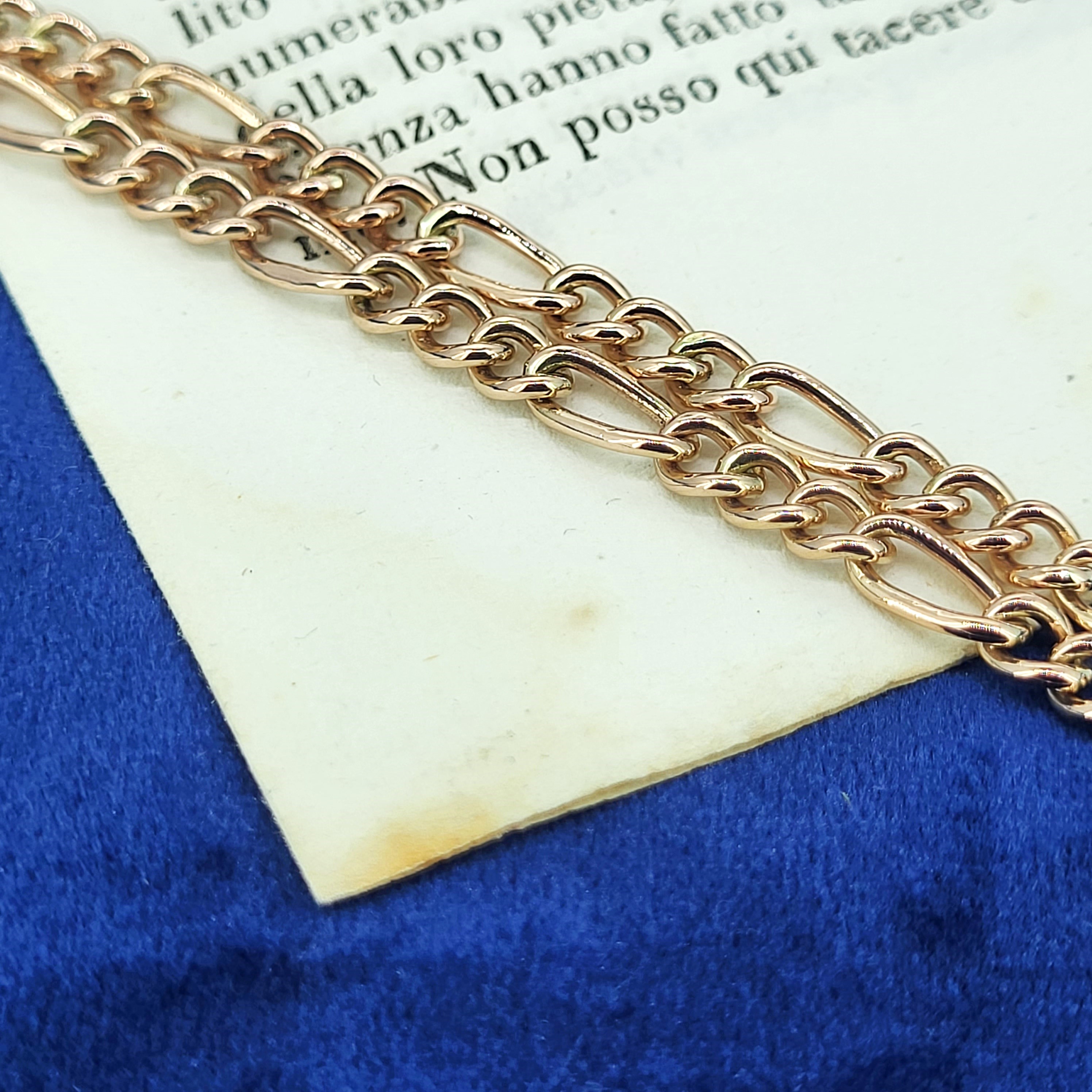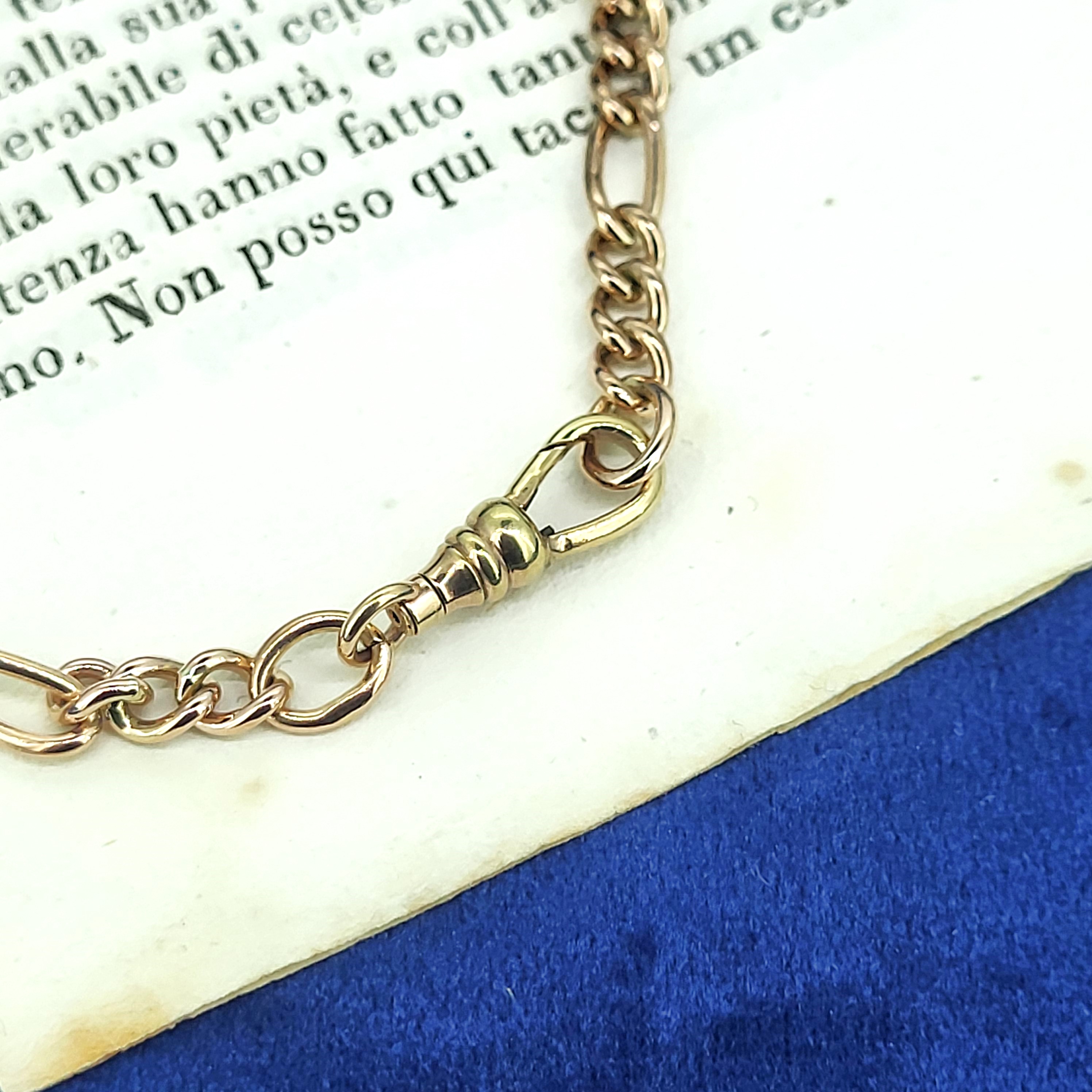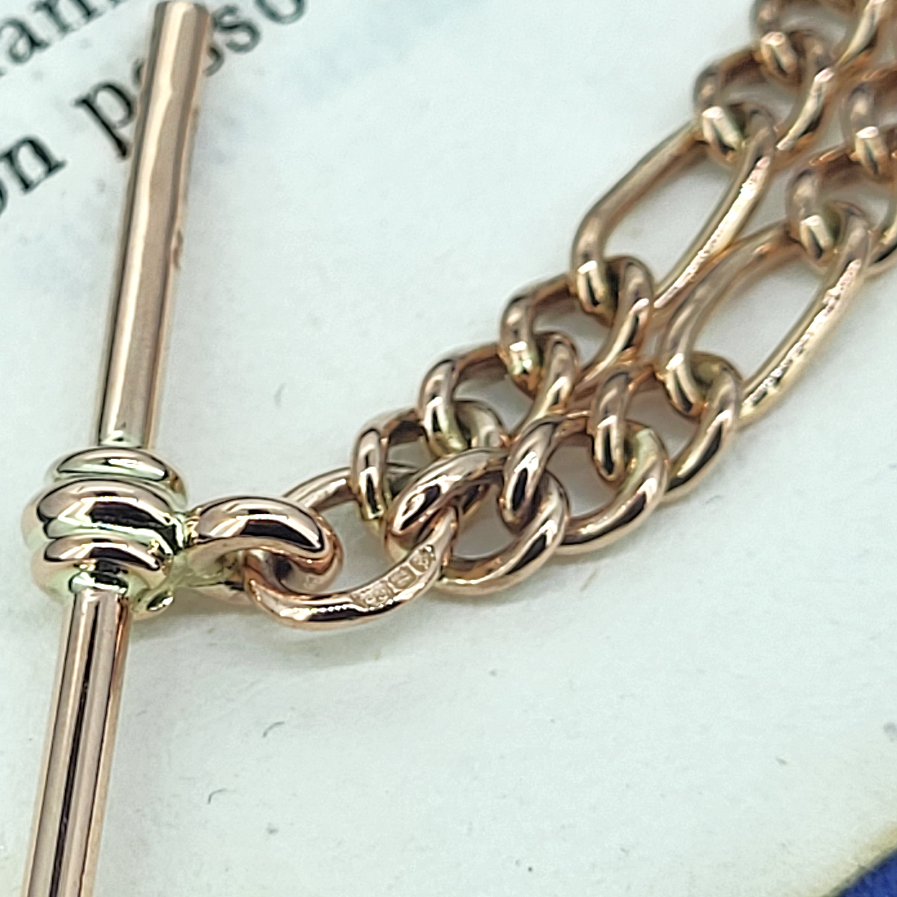 A 9ct Rose Gold Twisted Figaro Albert Chain with a Swivel fitting.