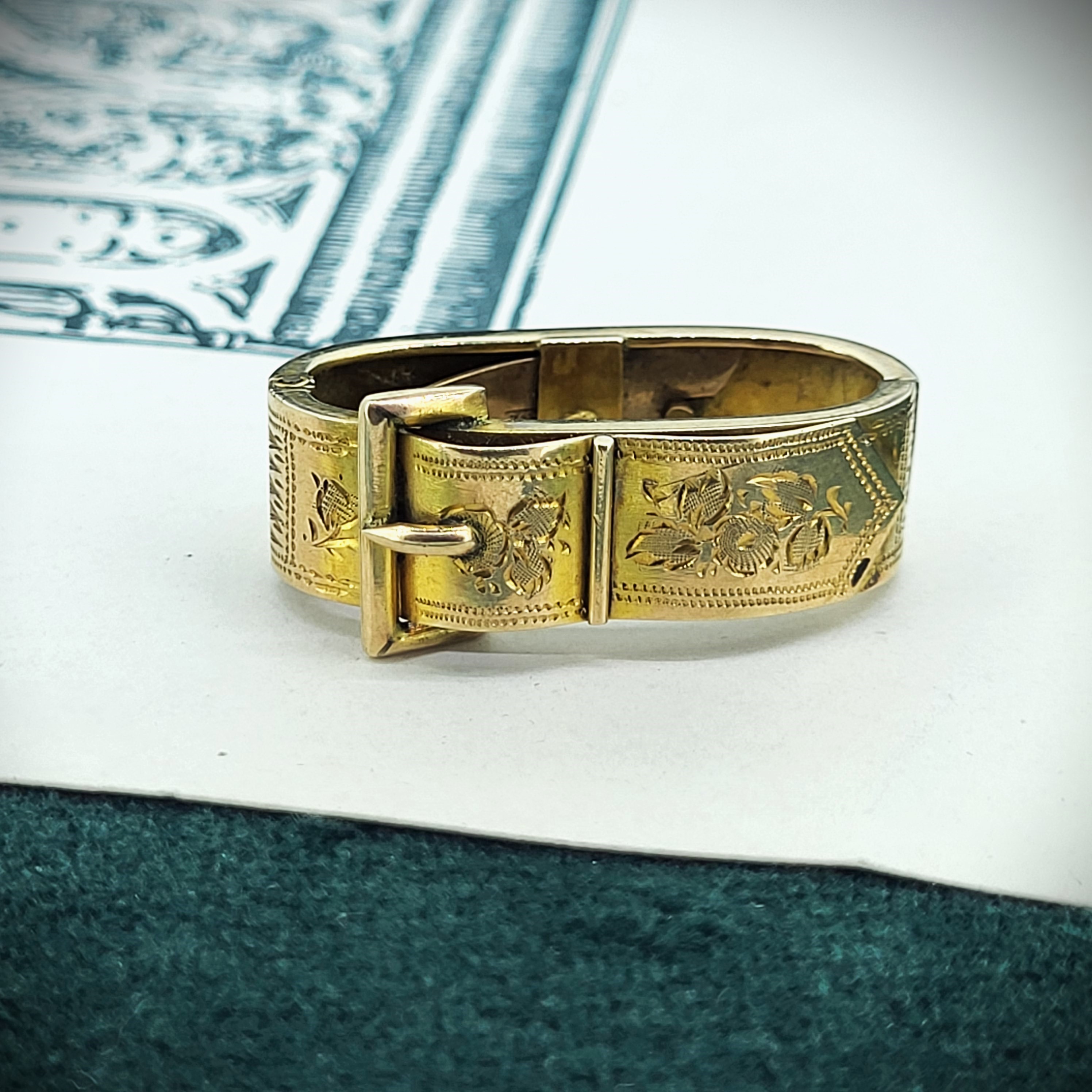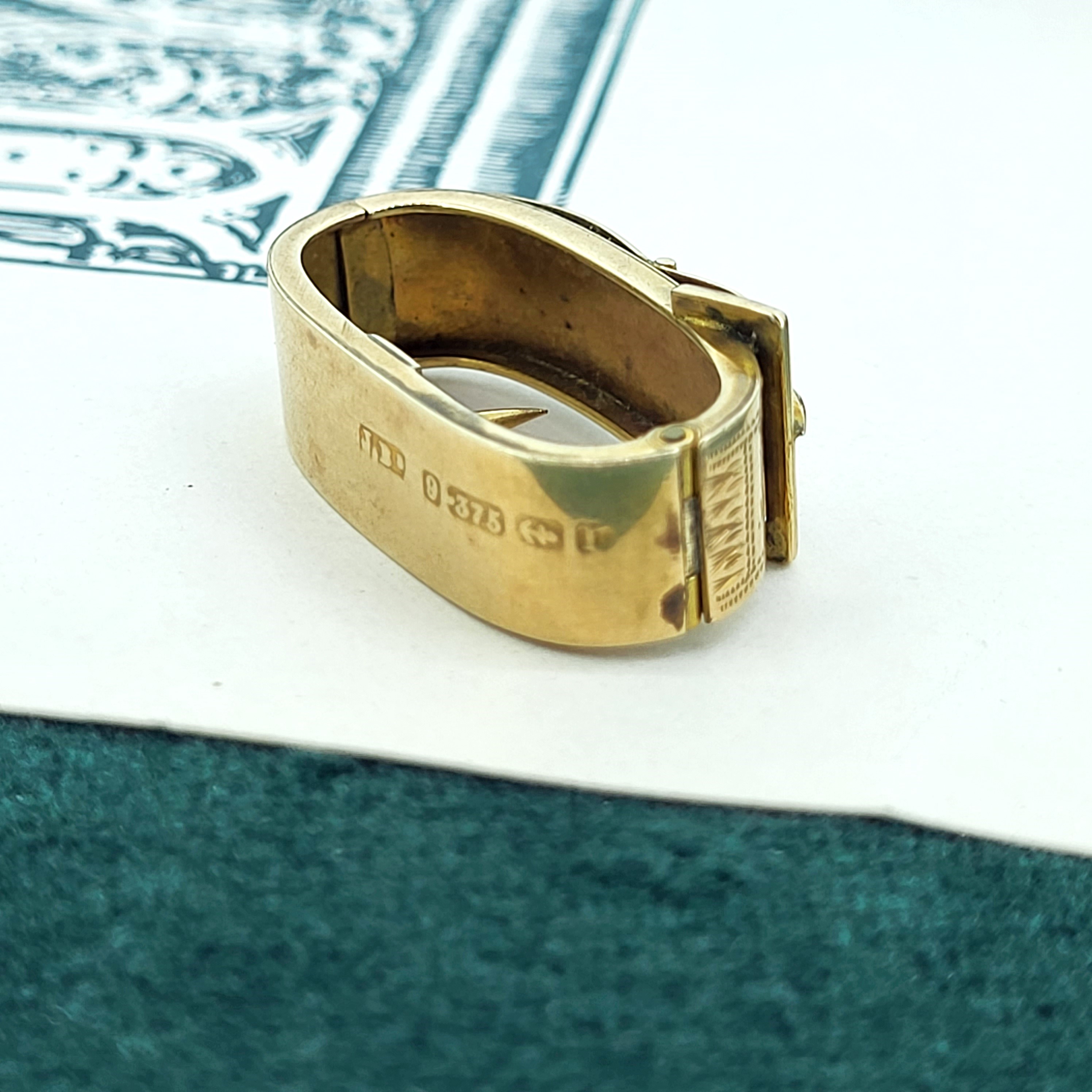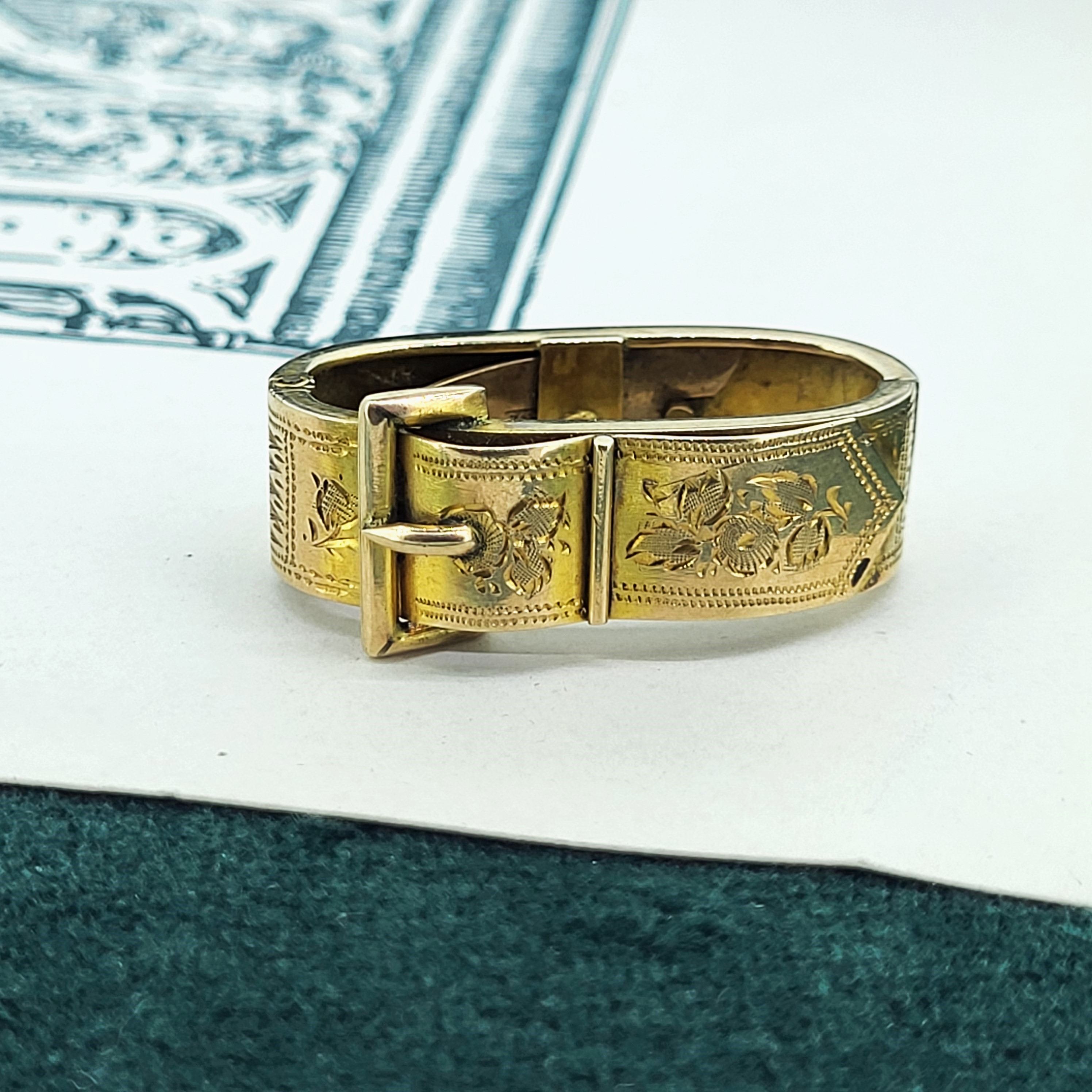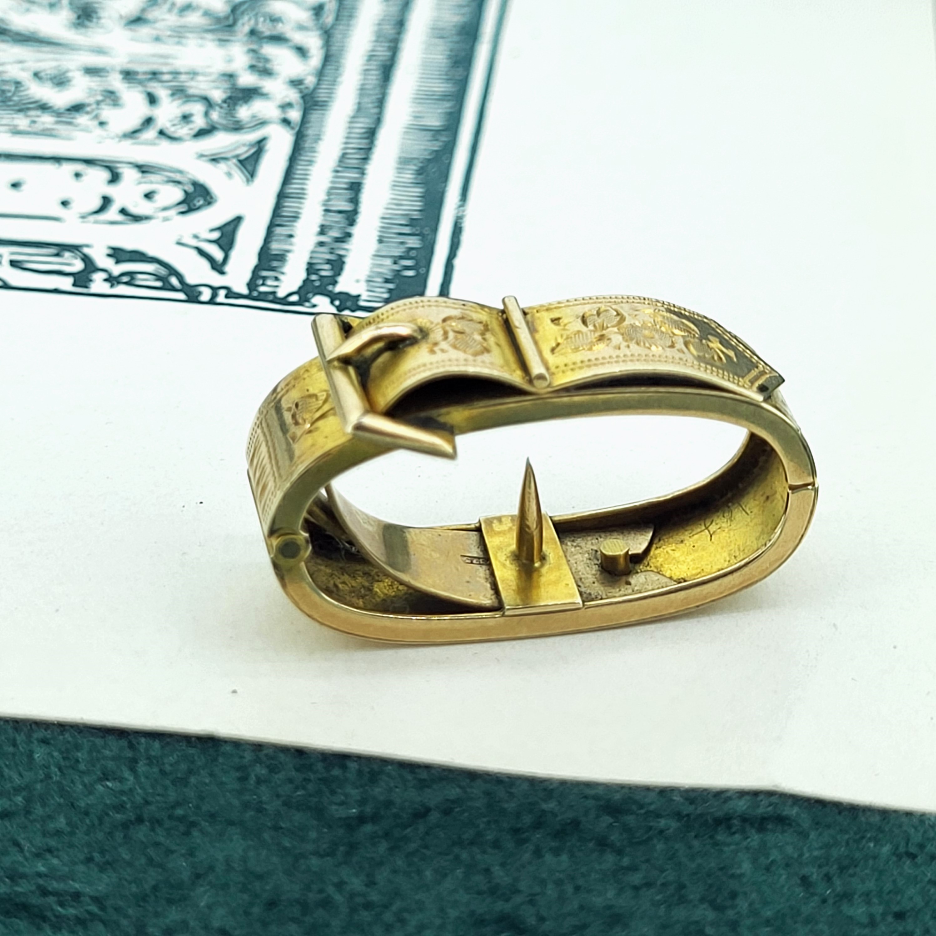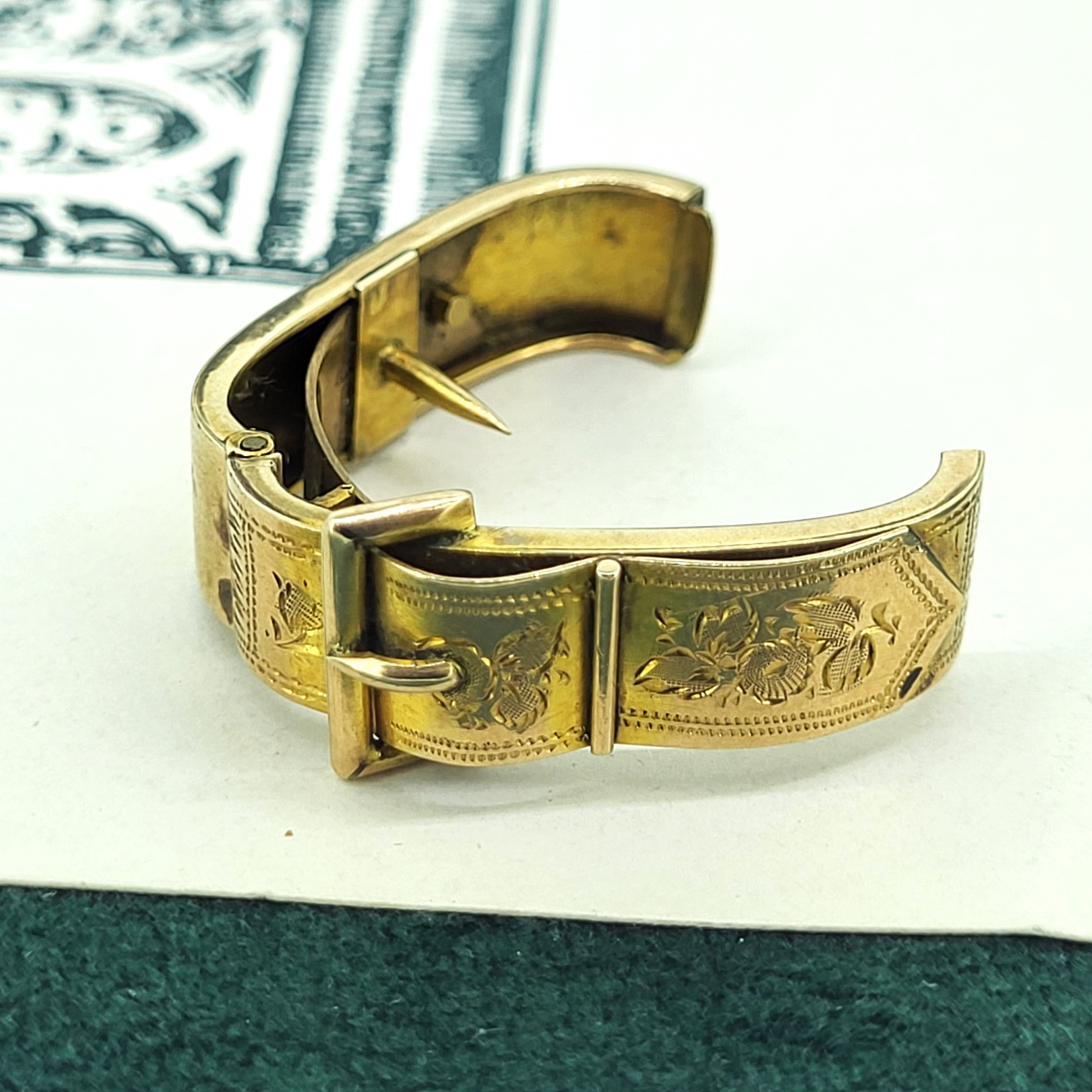 The scarf clip is solid and the hinges open to then close over the scarf. It is decorated by beautiful hand engraving showing intricate flowers and leaves, completed by two rows of milling.