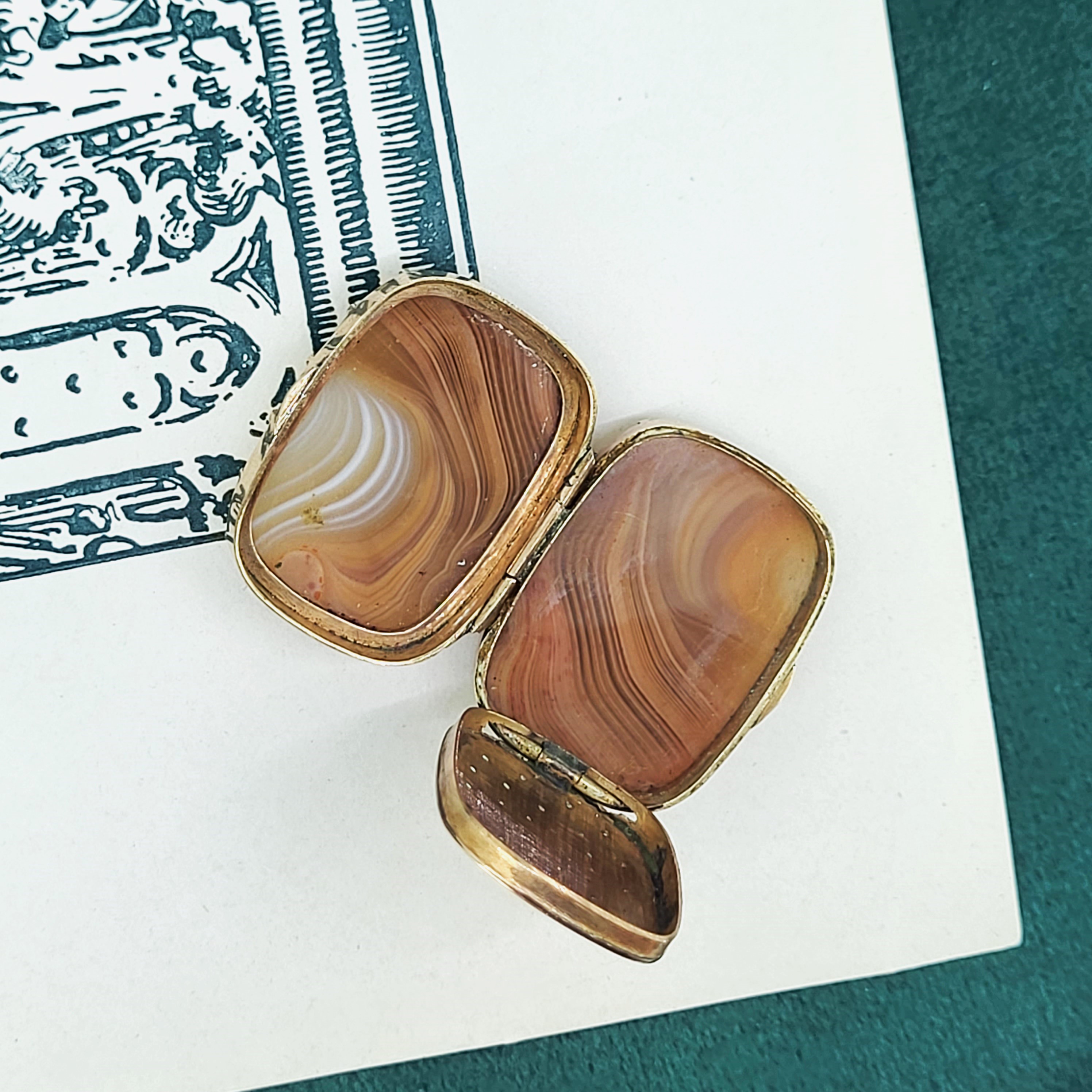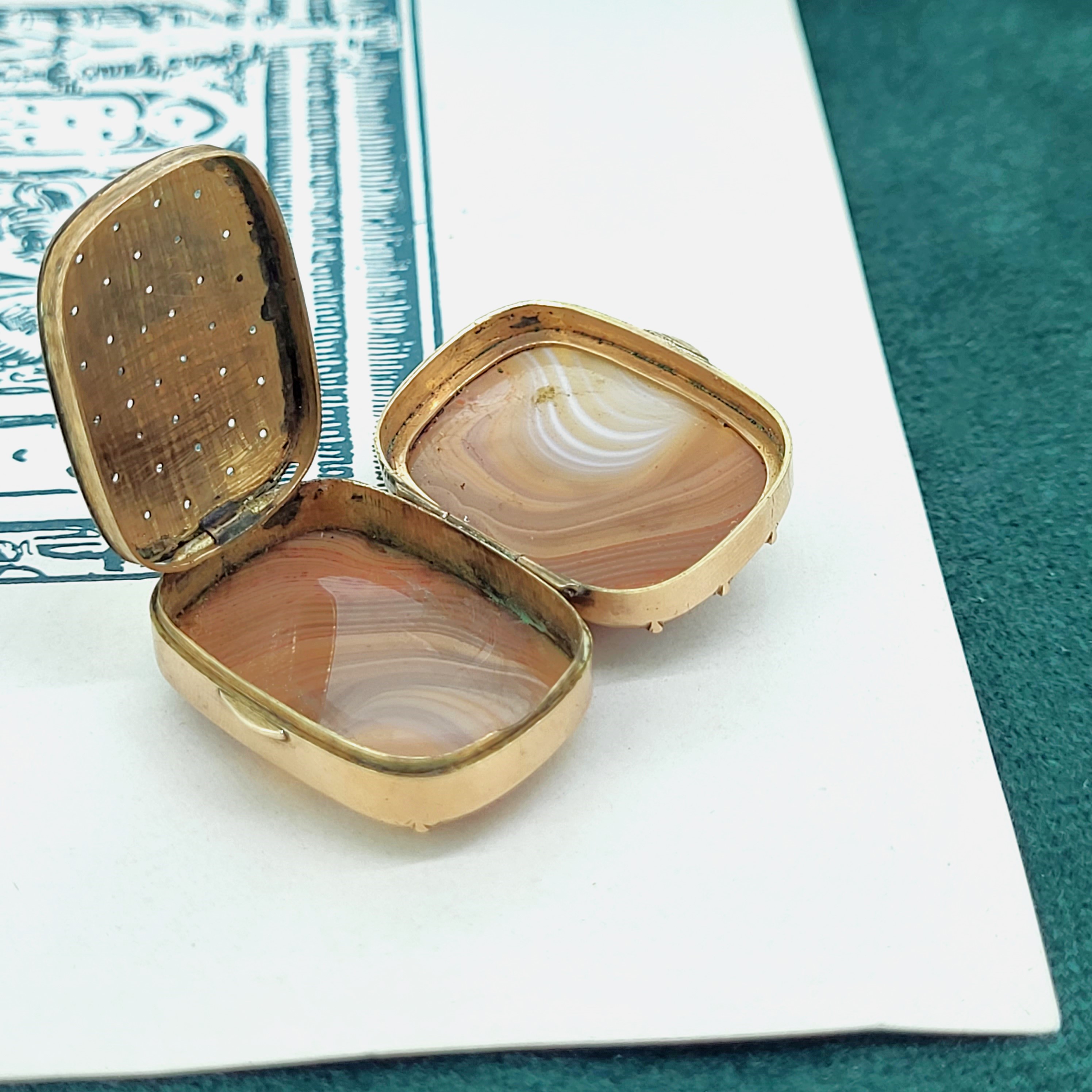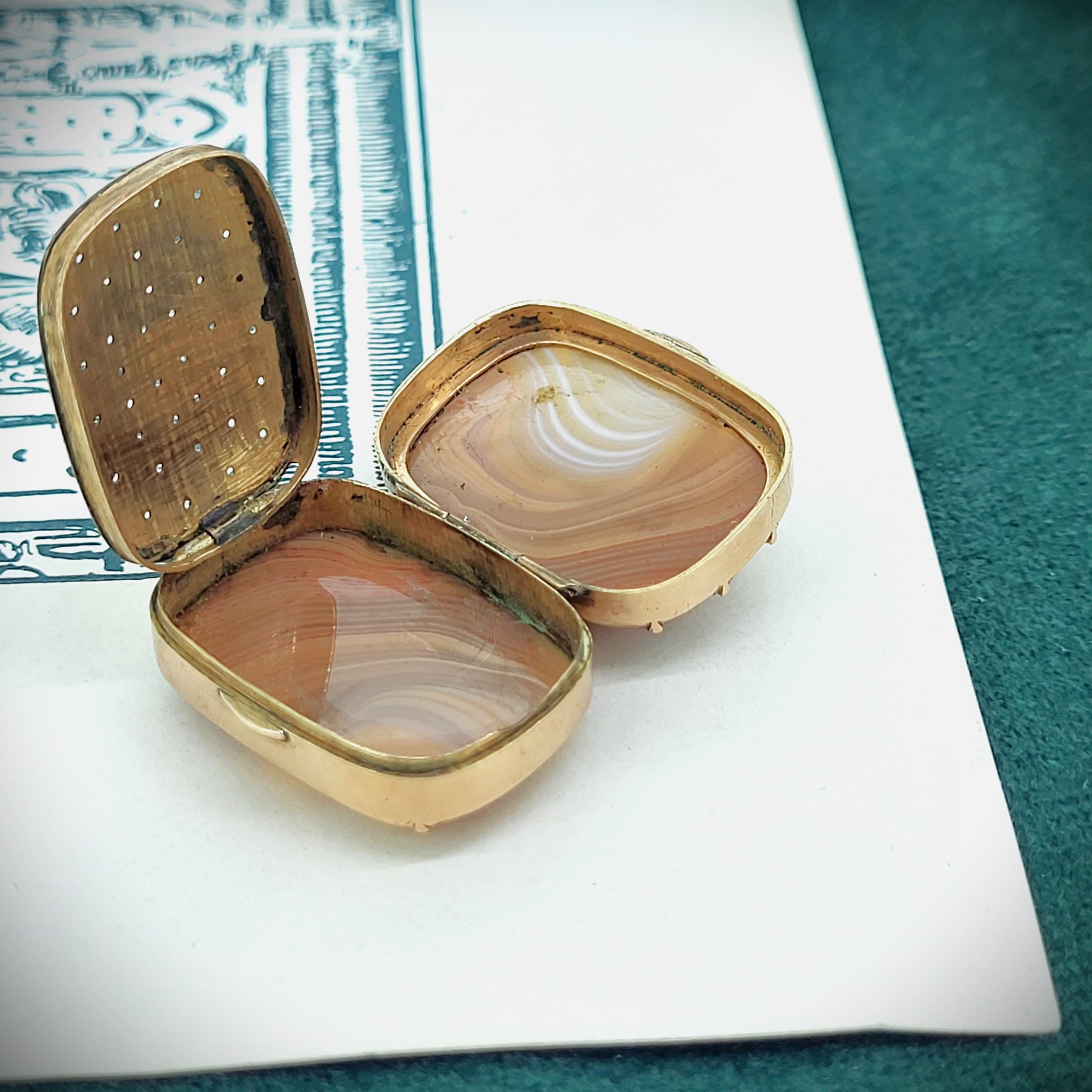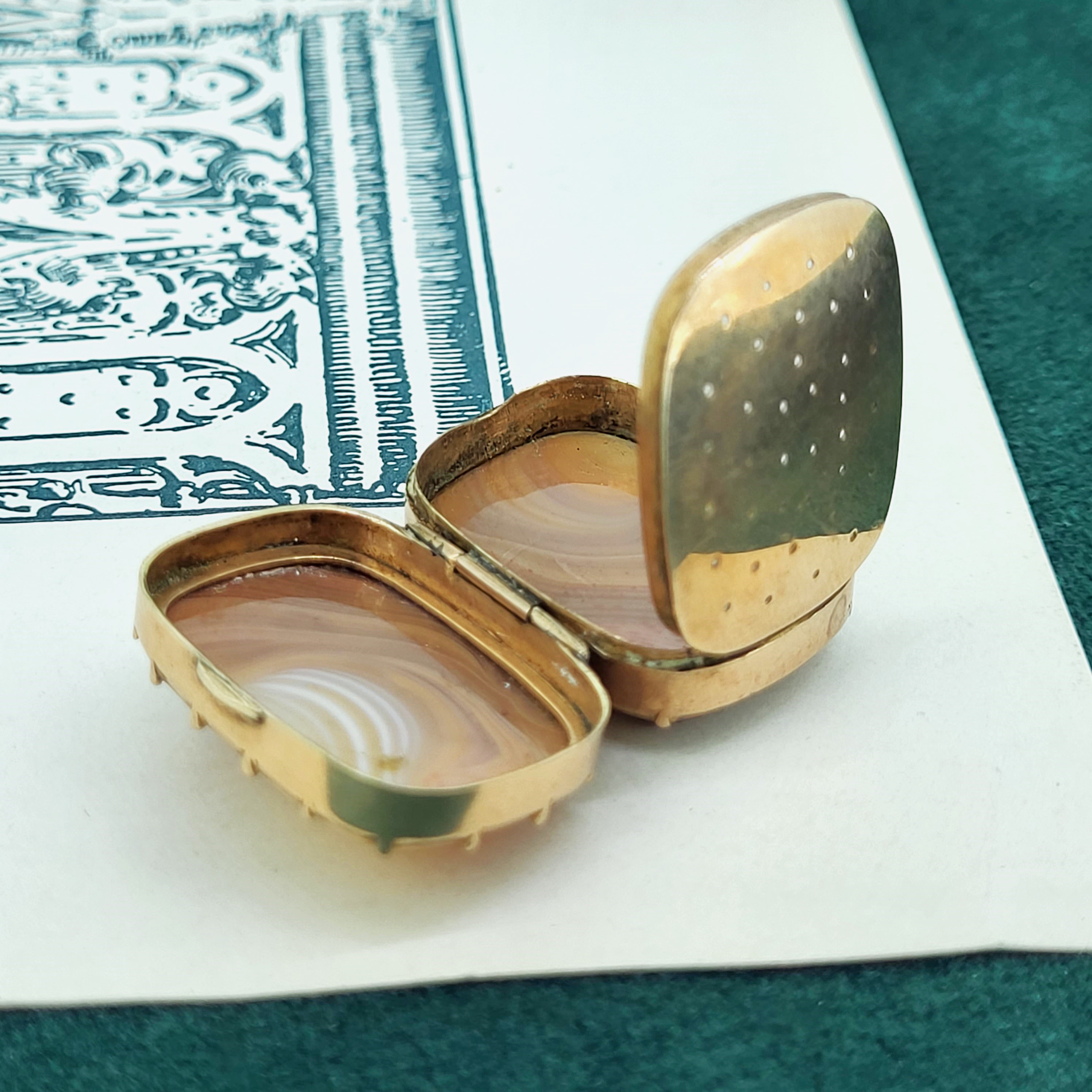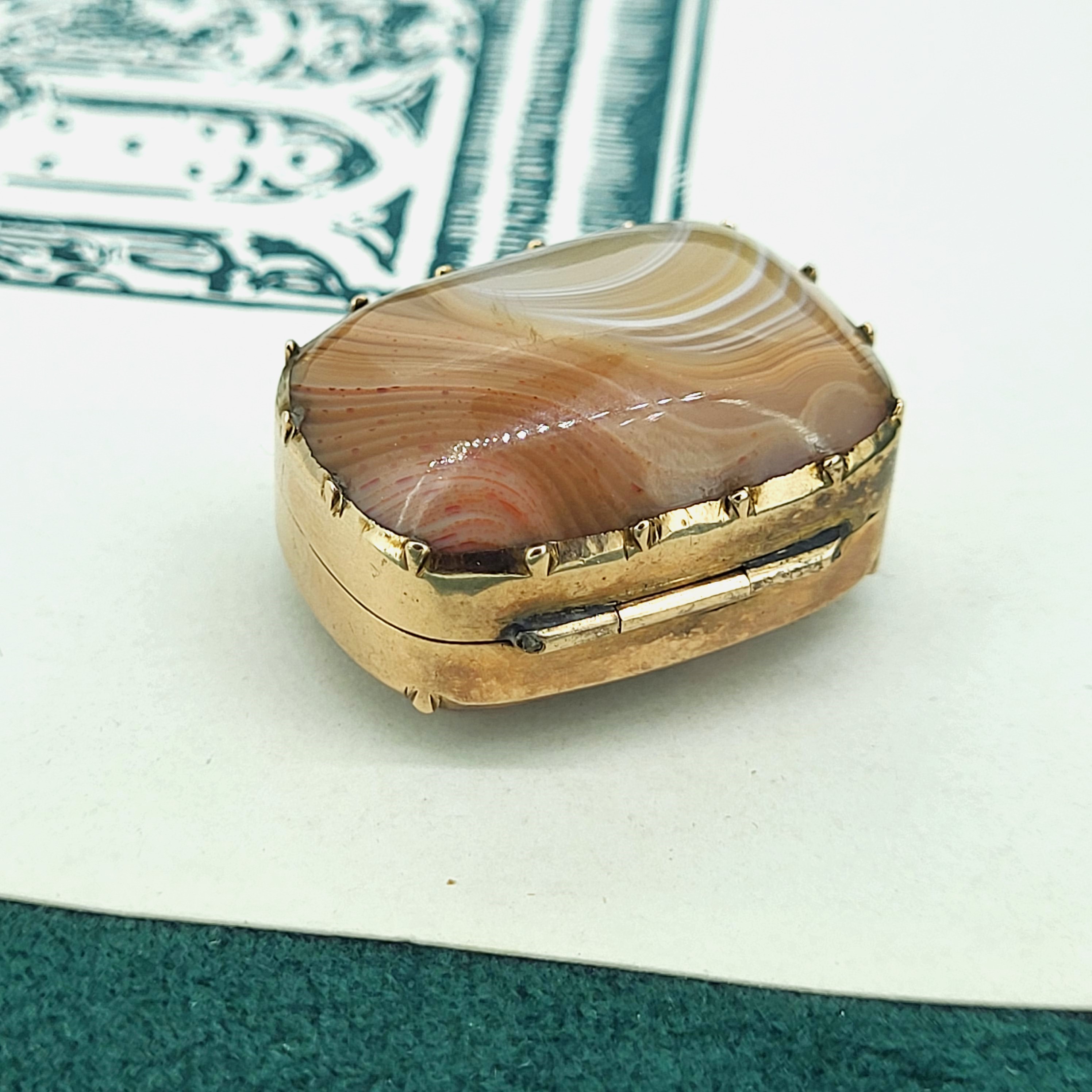 An Antique Vinaigrette crafted from 9ct Rose Gold. It features Scottish Banded Agate which looks beautifully semi translucent.