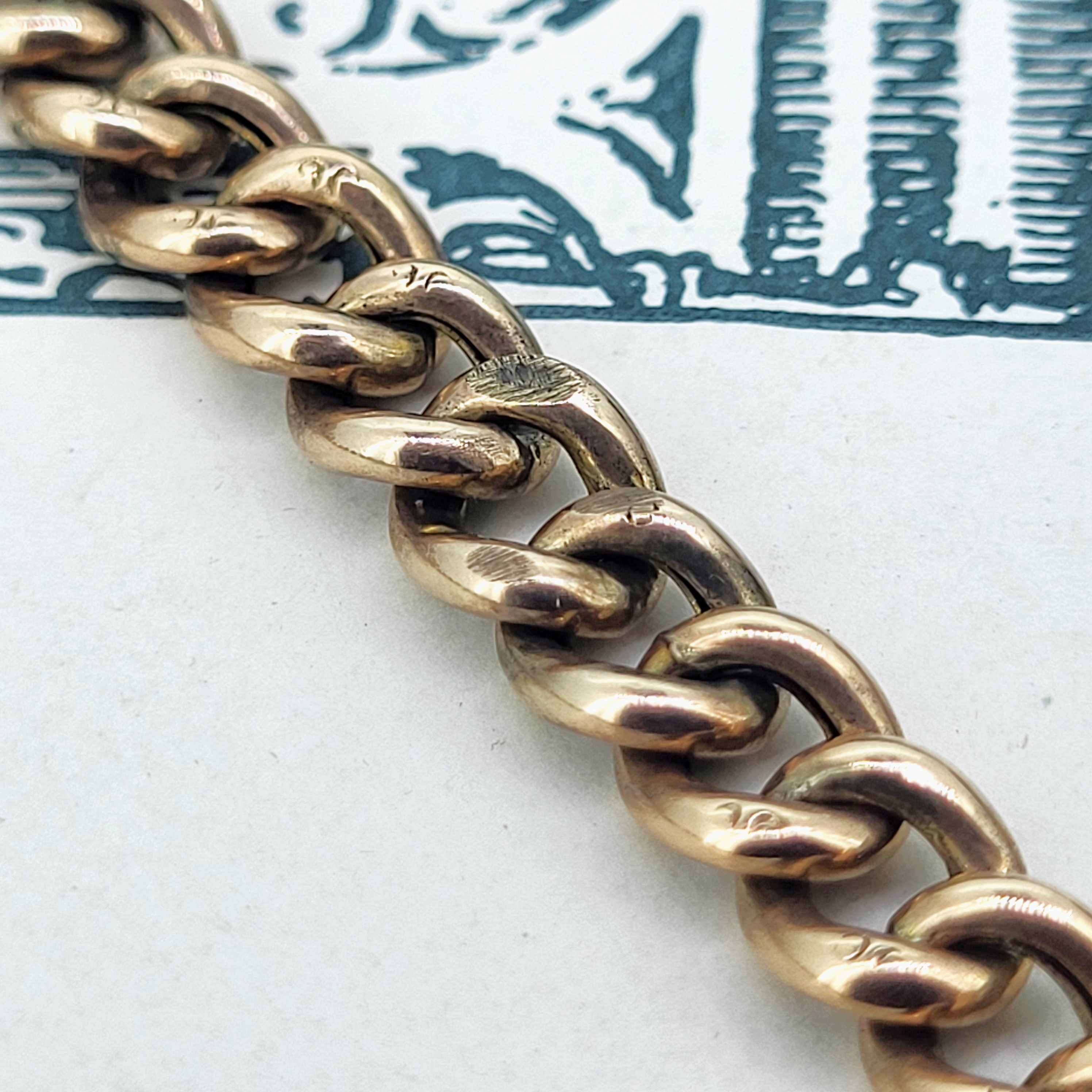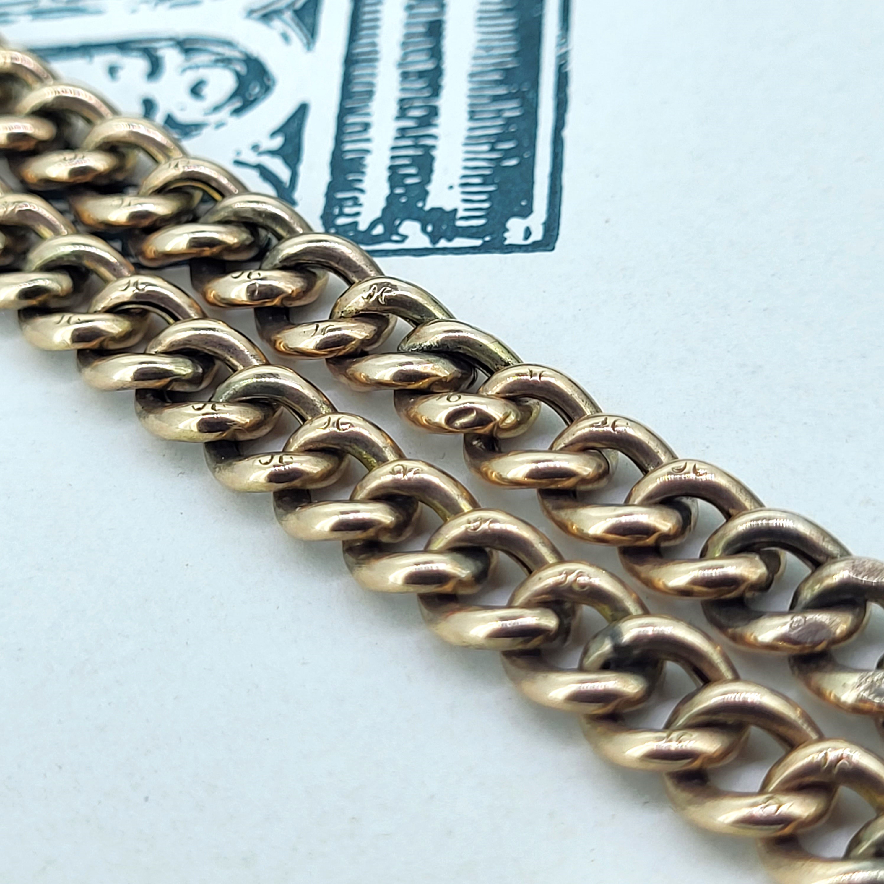 The links measure 6mm in width and every link is individually stamped. The T-Bar measures 35mm and the chain is fitted with double swivel clasps.
