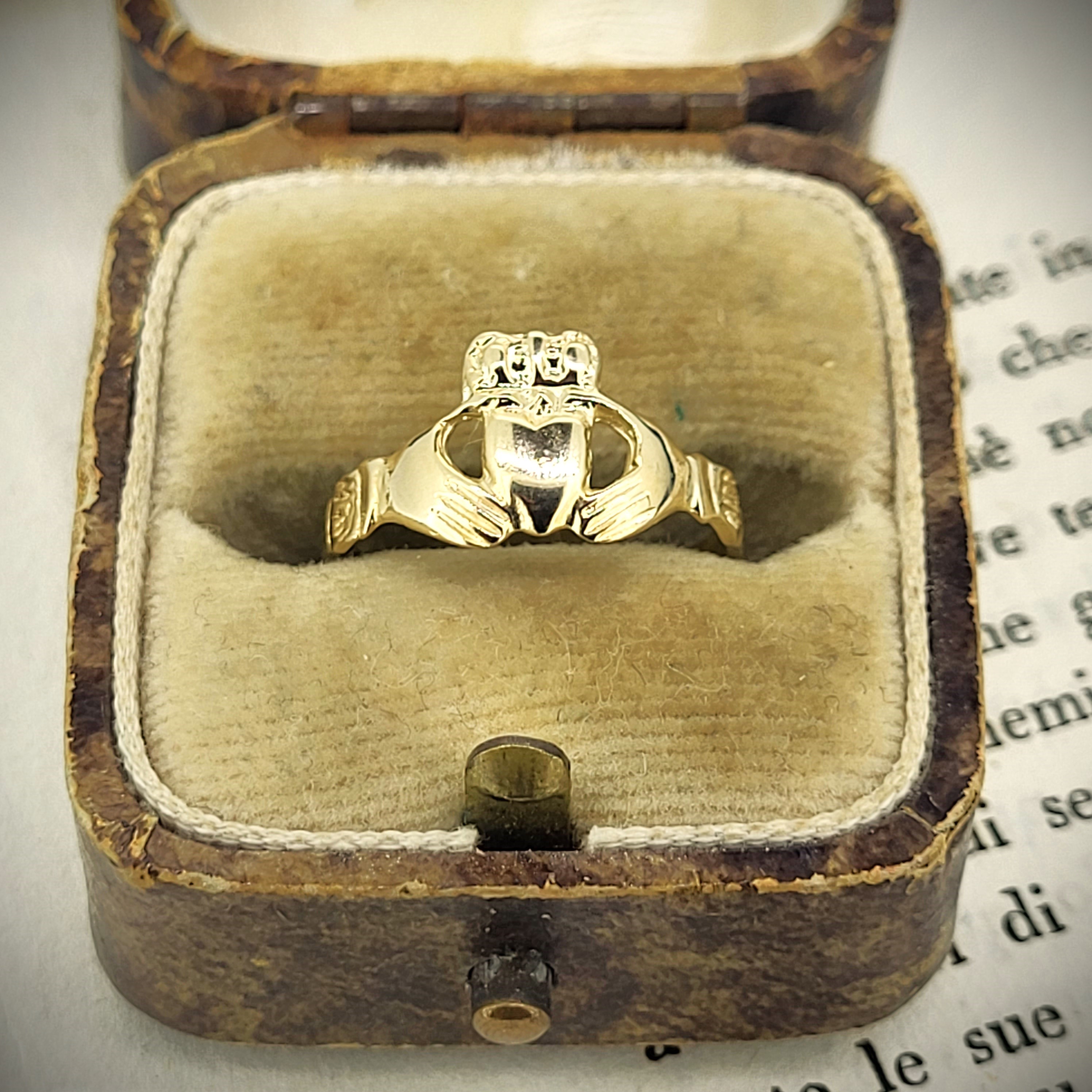 A Claddagh Ring is a traditional Irish ring that represents love, loyalty and friendship.