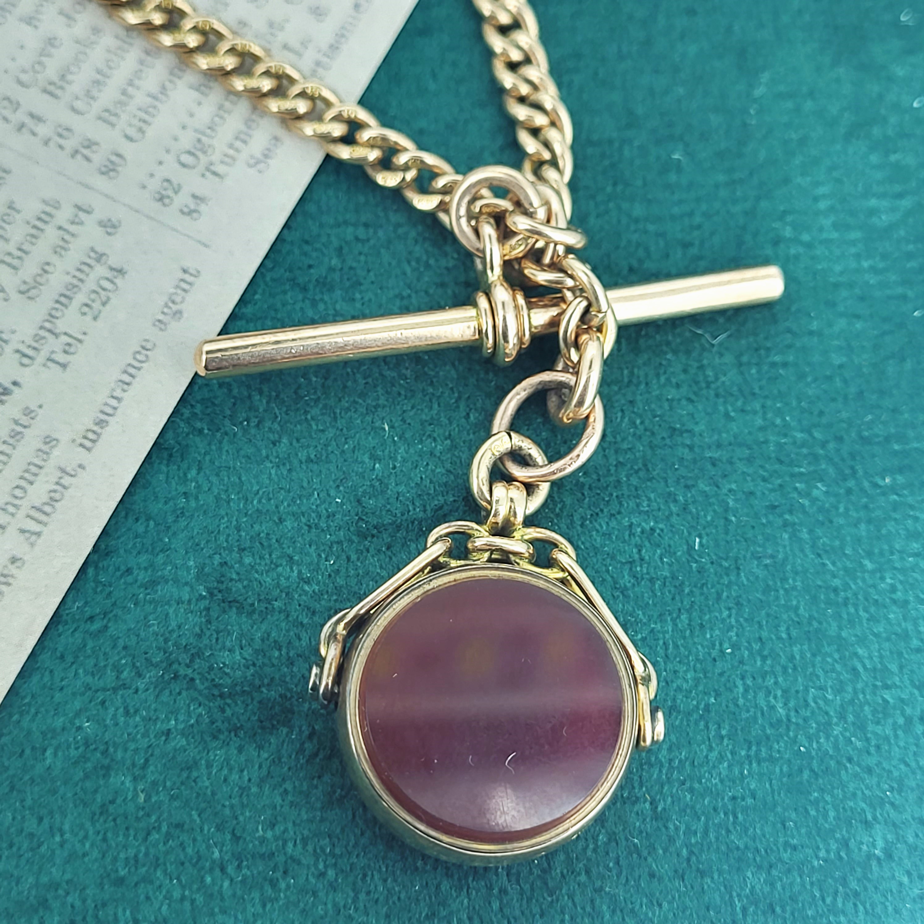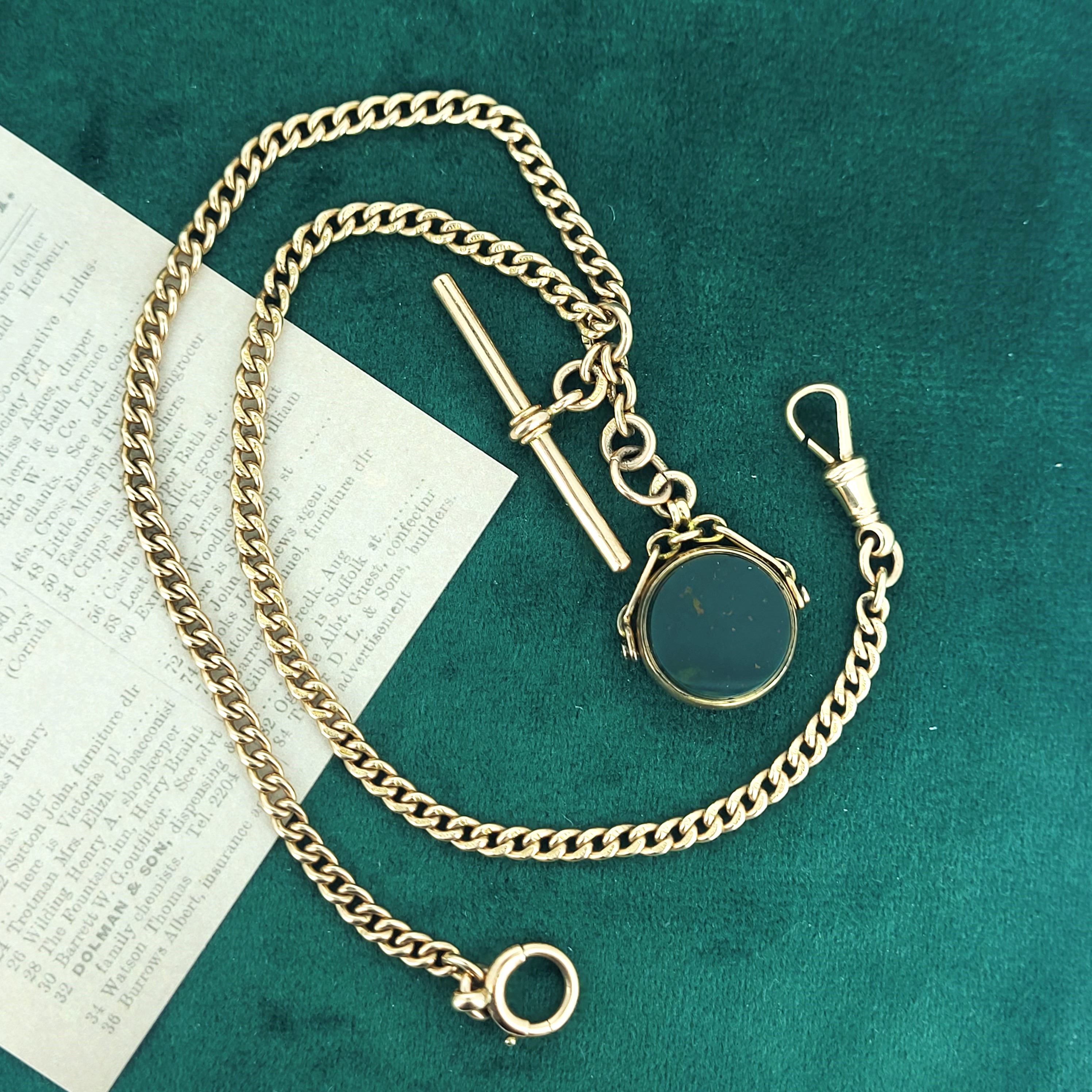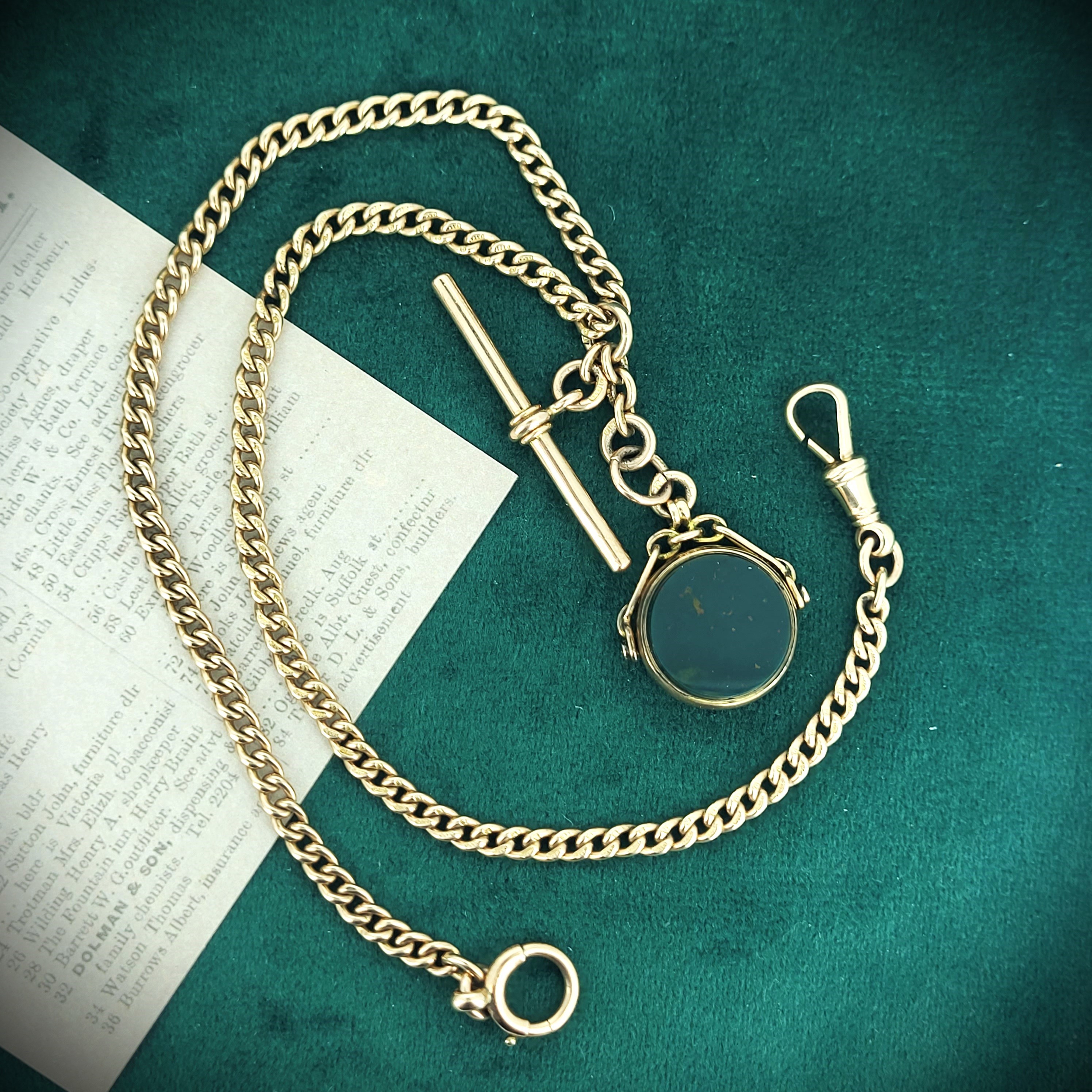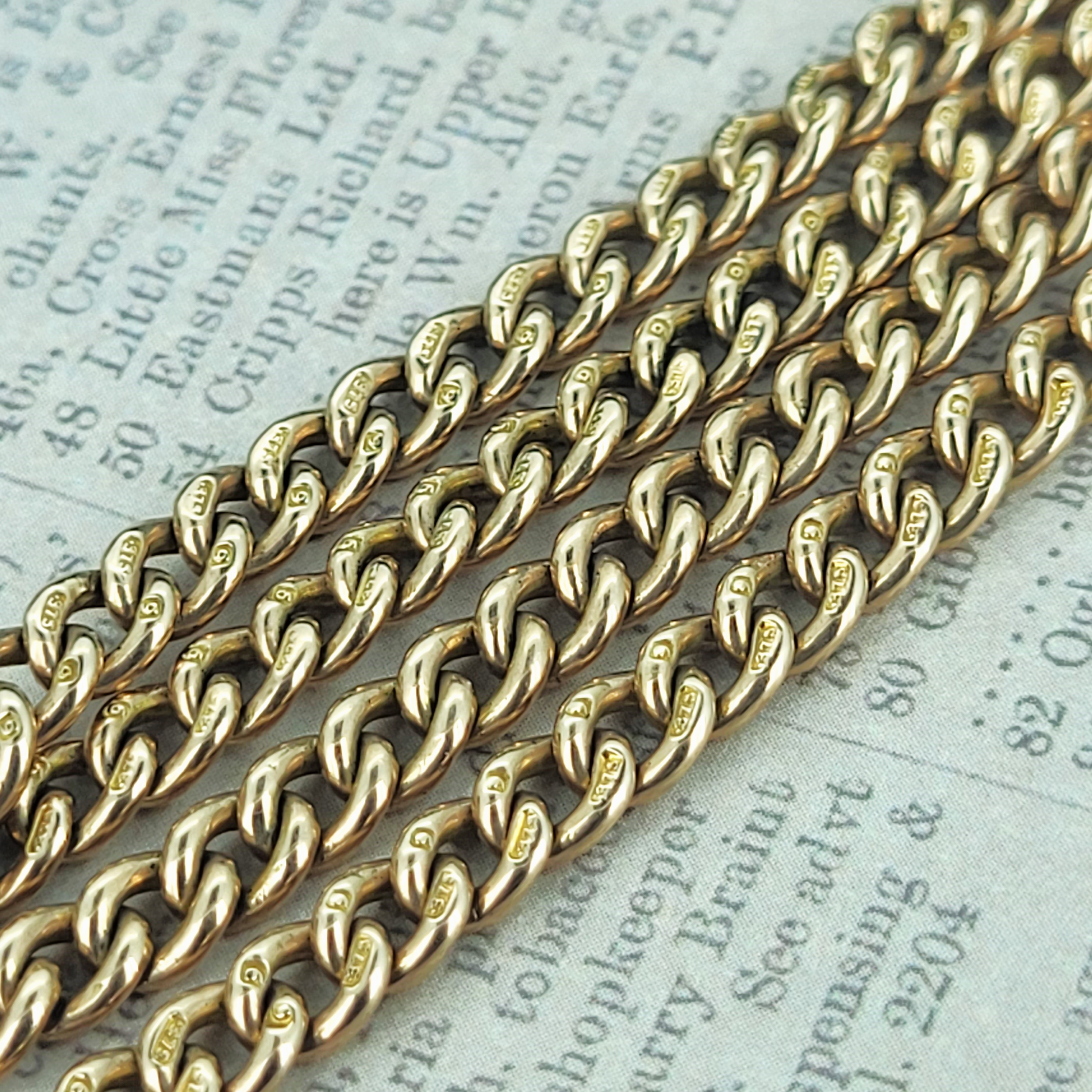 We are delighted to present this absolutely gorgeous Curb Link Albert Chain crafted from 9ct Rosse Gold.