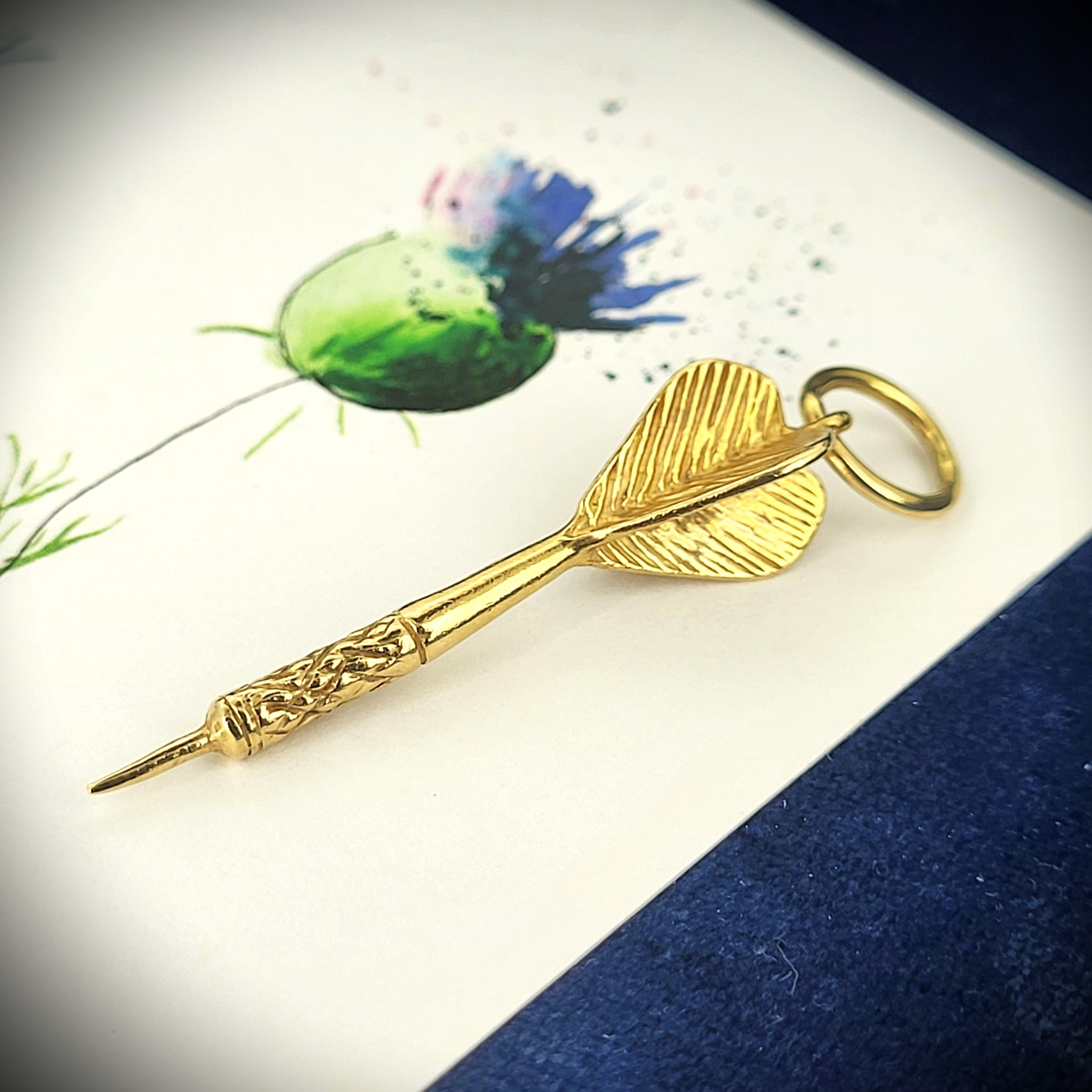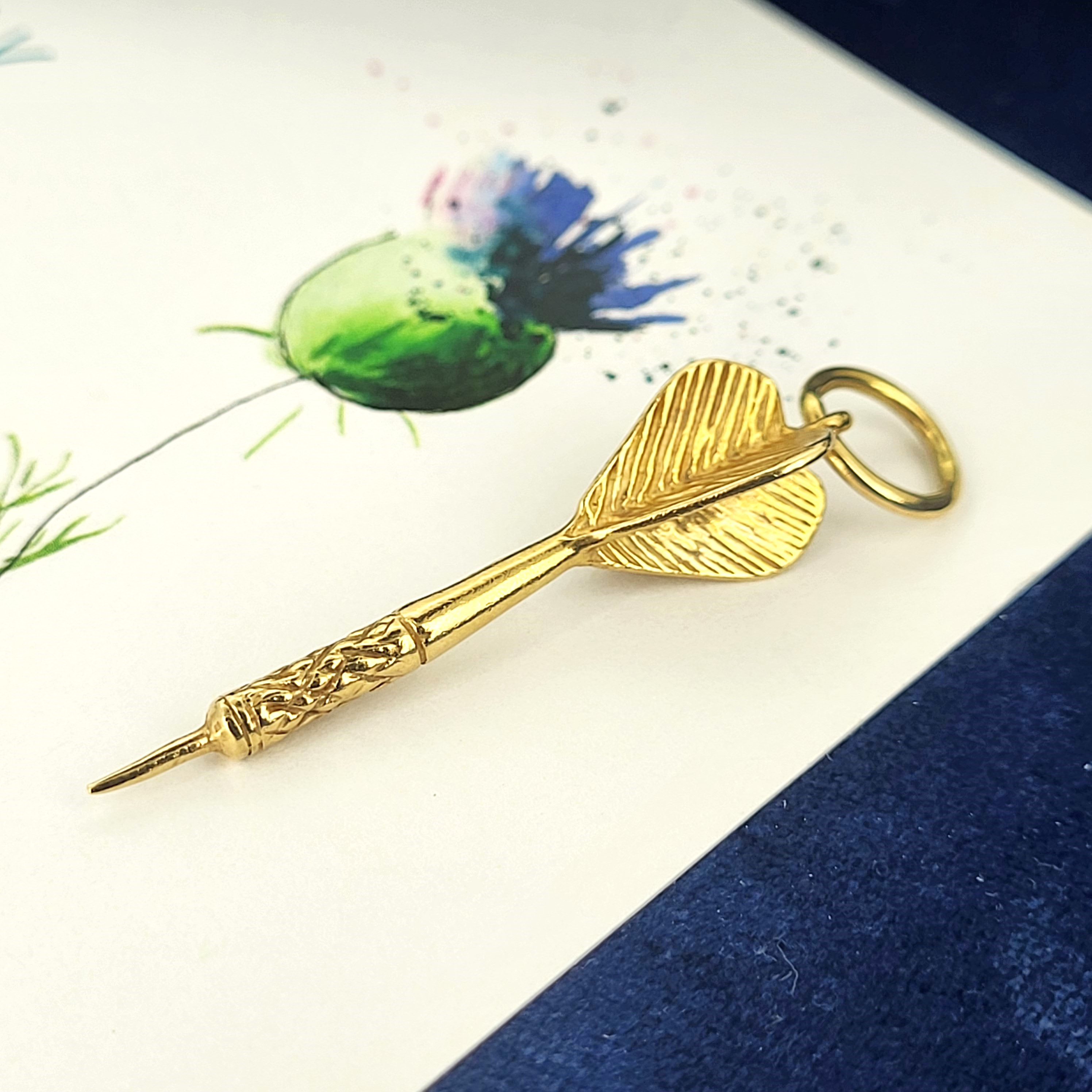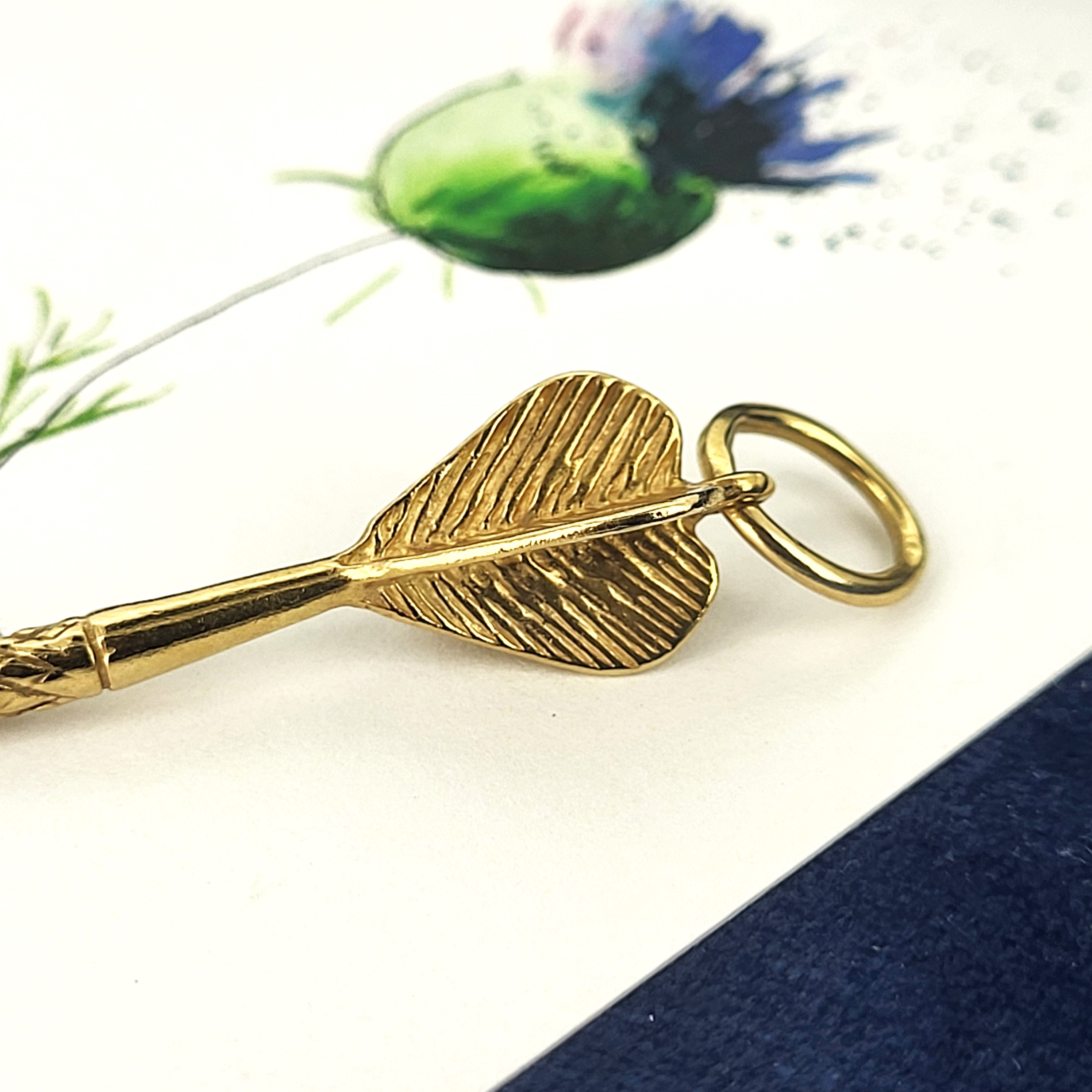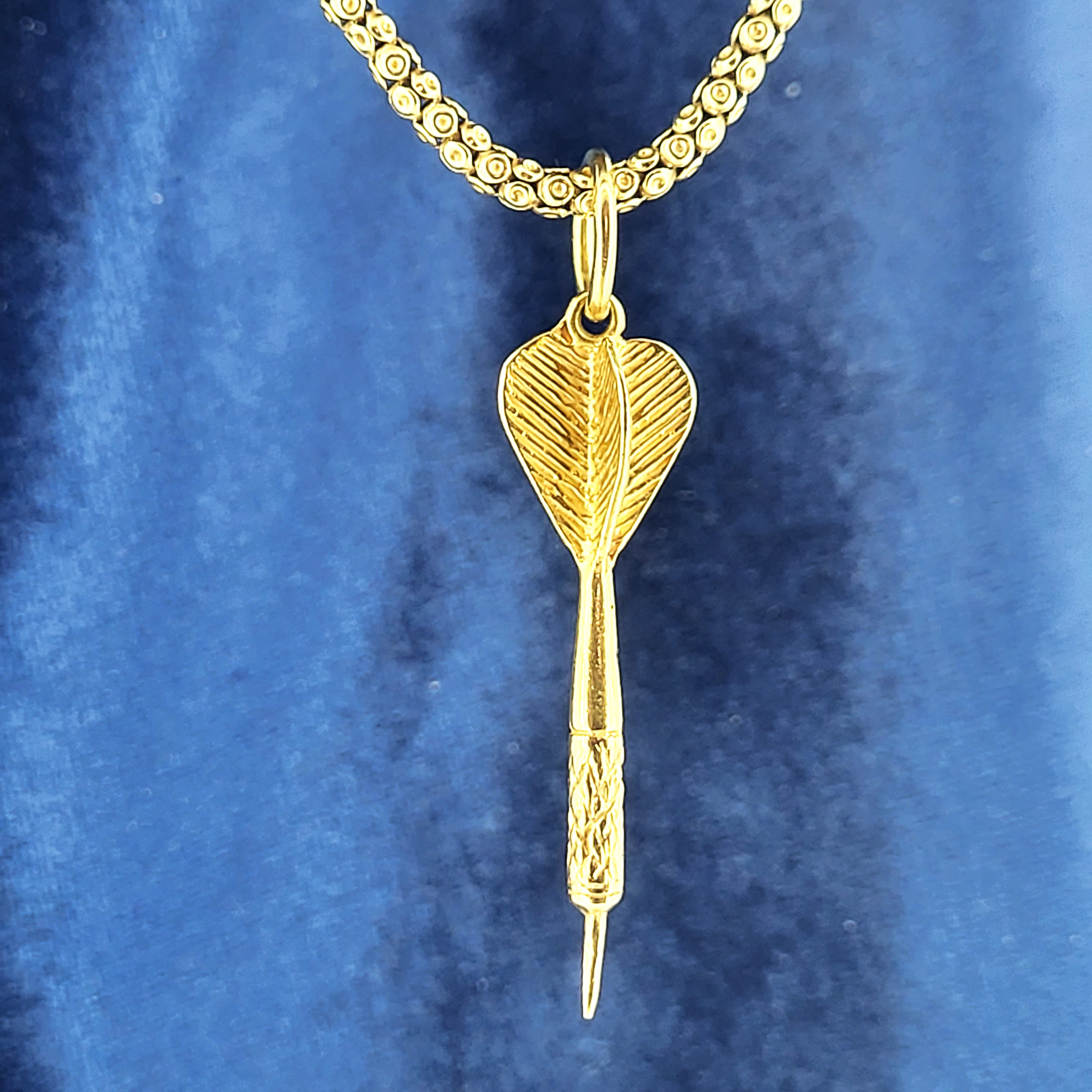 Crafted from 9ct Yellow Gold, this vintage dart charm measures 40mm in length and has a 9mm jump ring.