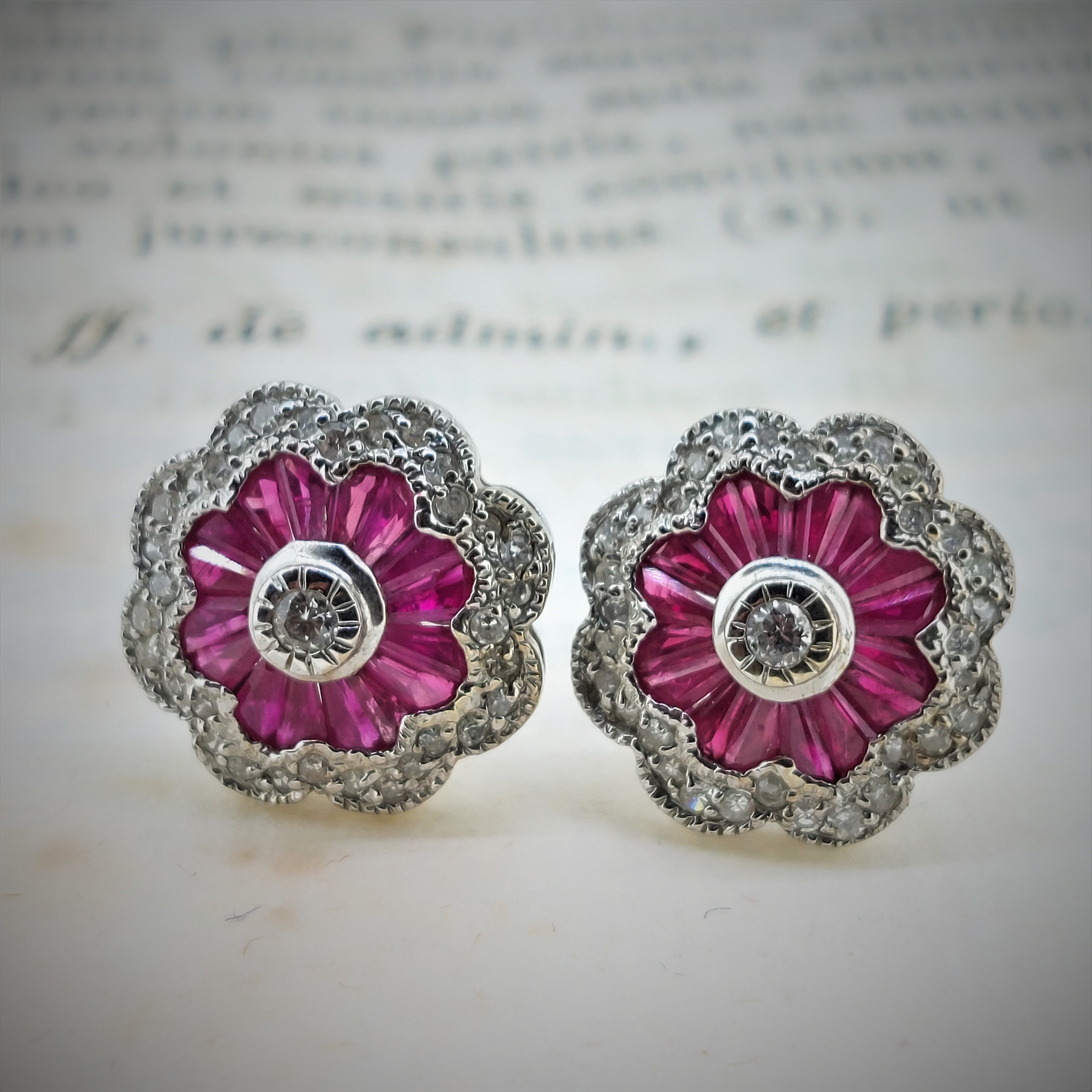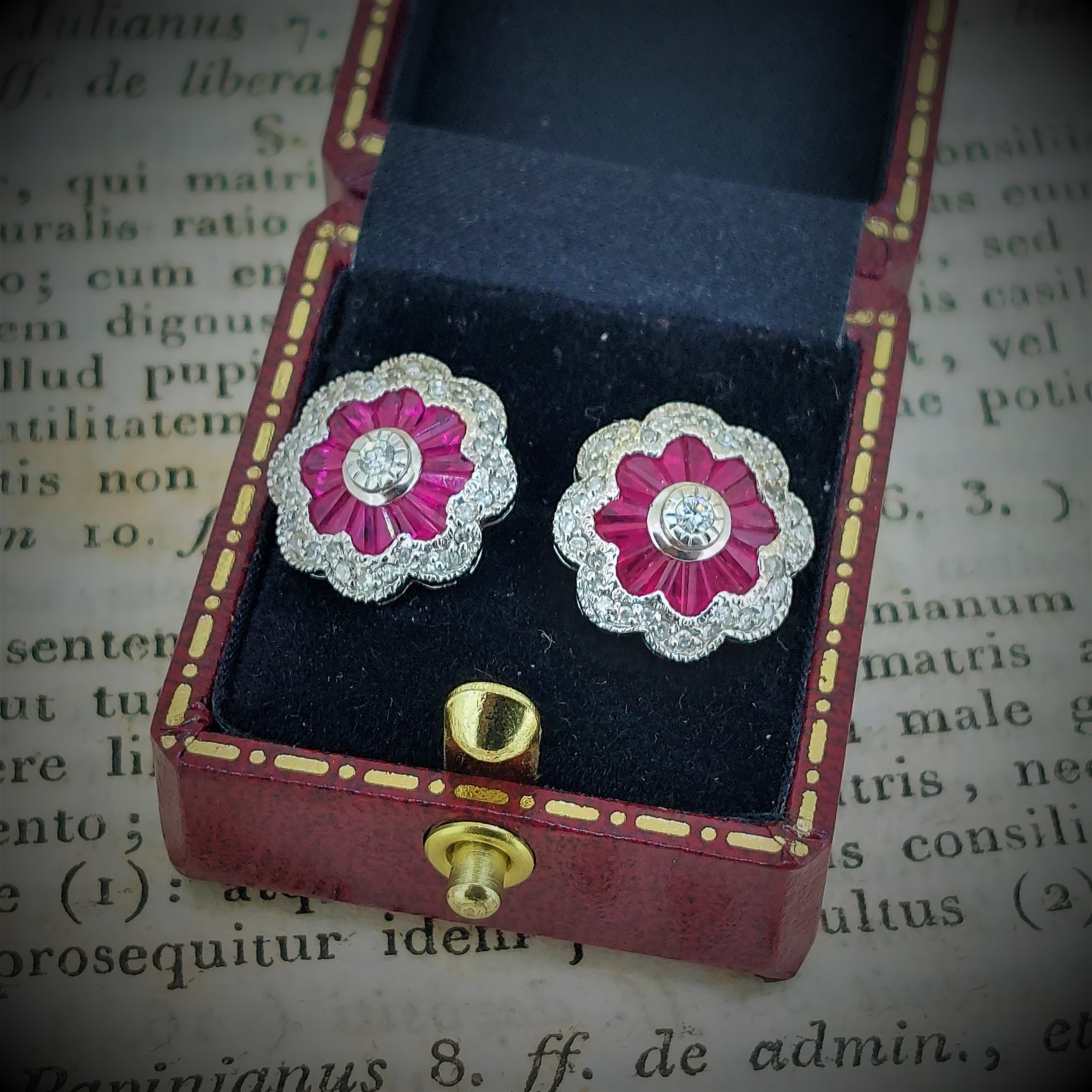 There are many reasons why the Art-Deco period is the most widely reproduced period in the jewellery biz! There earrings are just one of them! With 0.35ct of diamonds and almost 1.50ct of rubies these are a delight! Set in 18ct White Gold with butterfly backs.