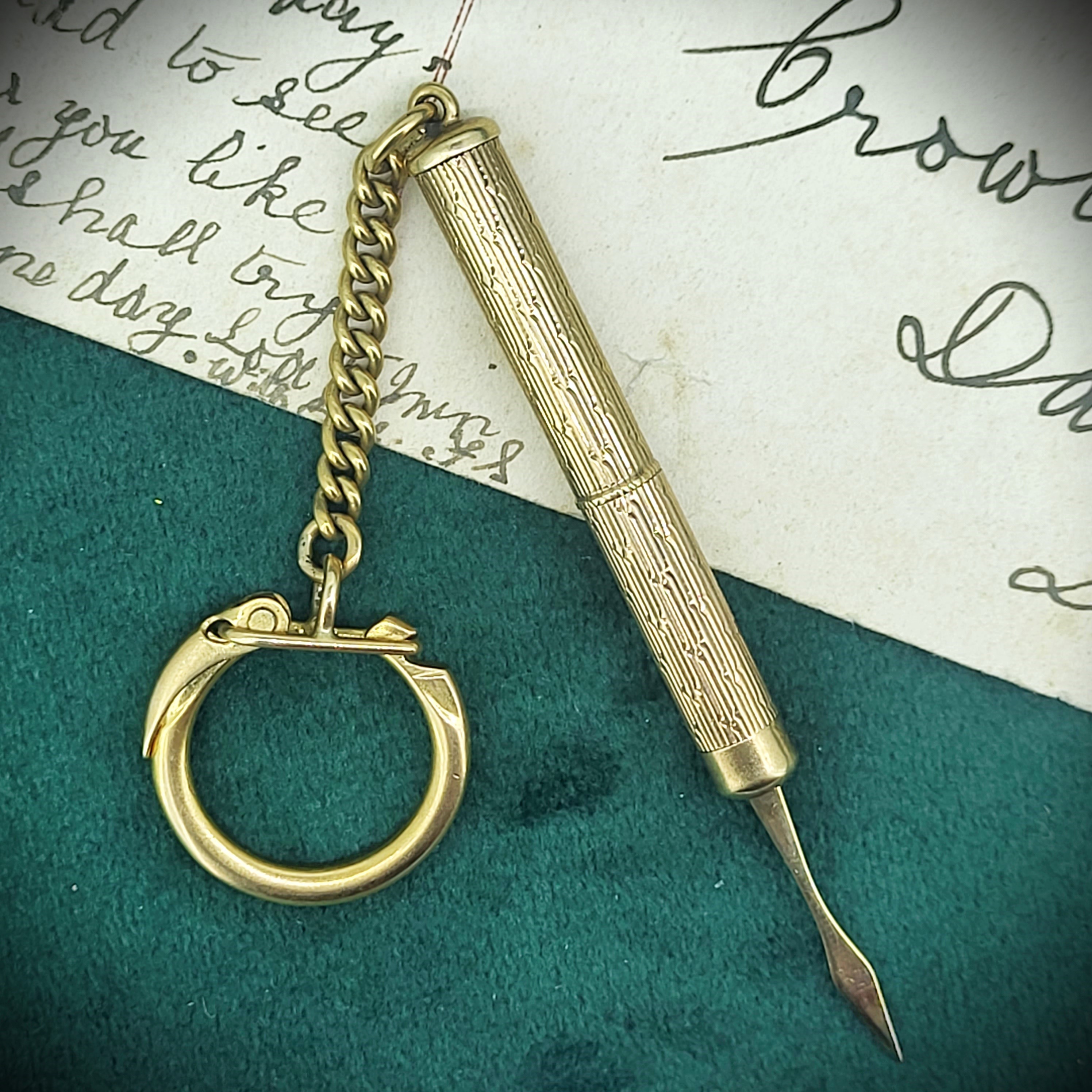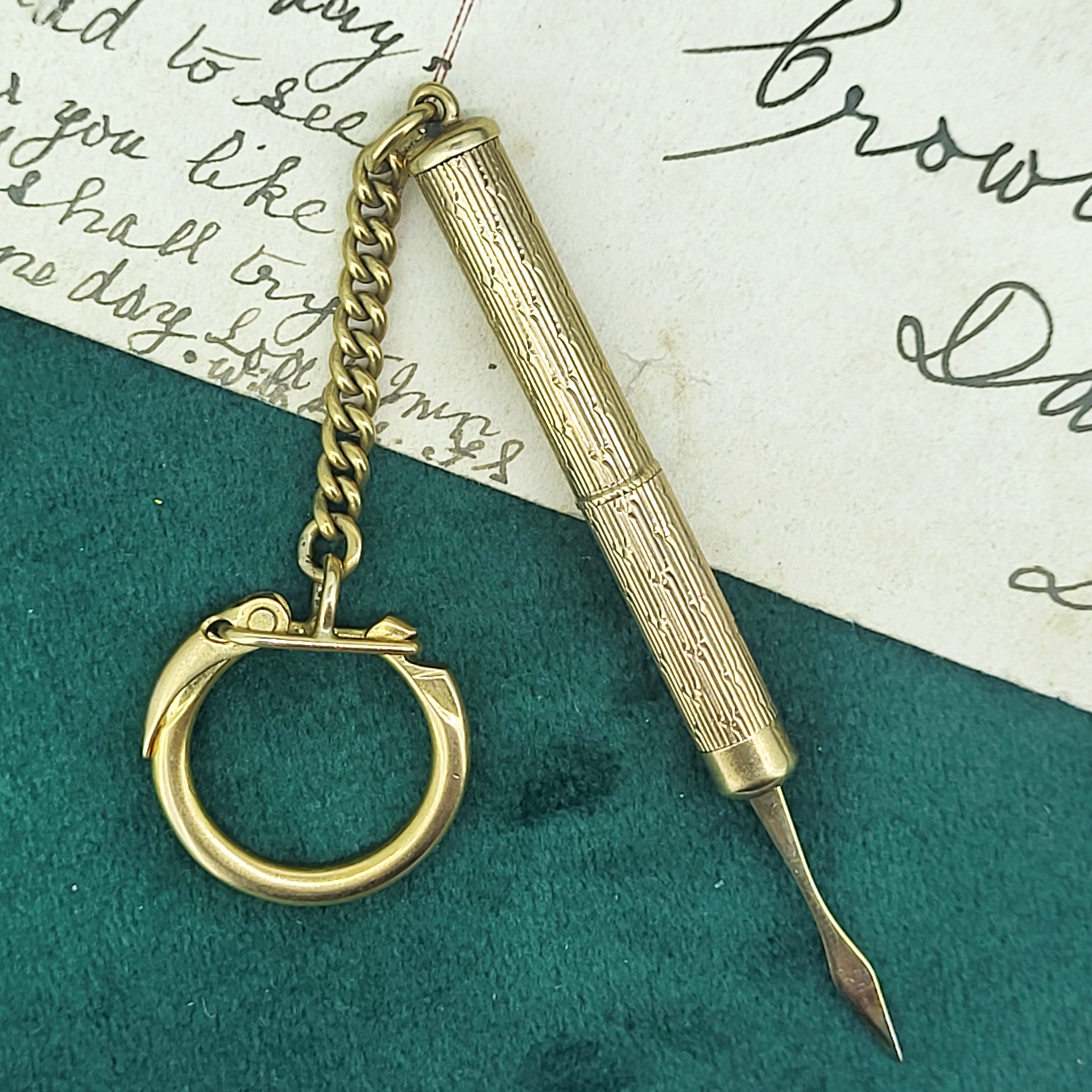 An exquisite 9ct Yellow Gold Antique Tooth Pick Keyring.