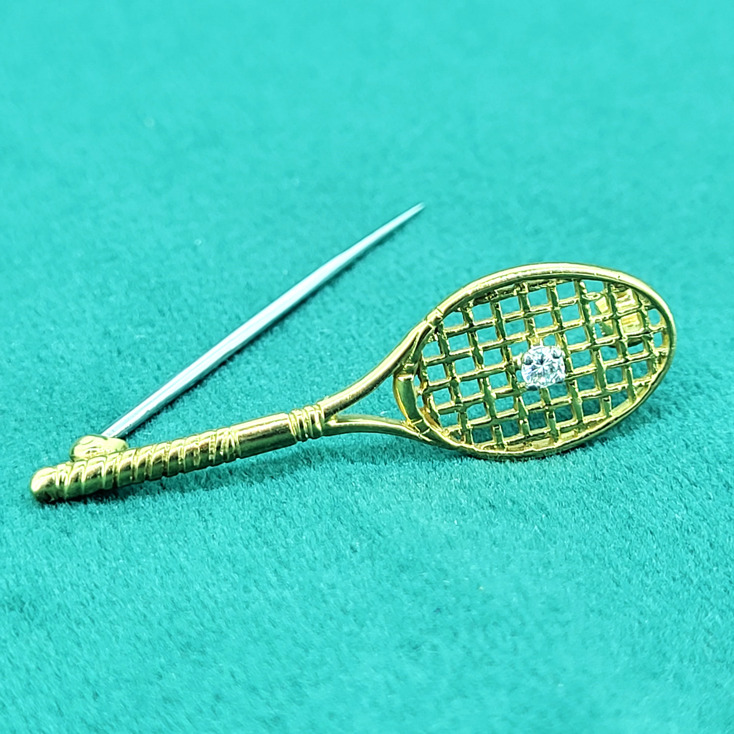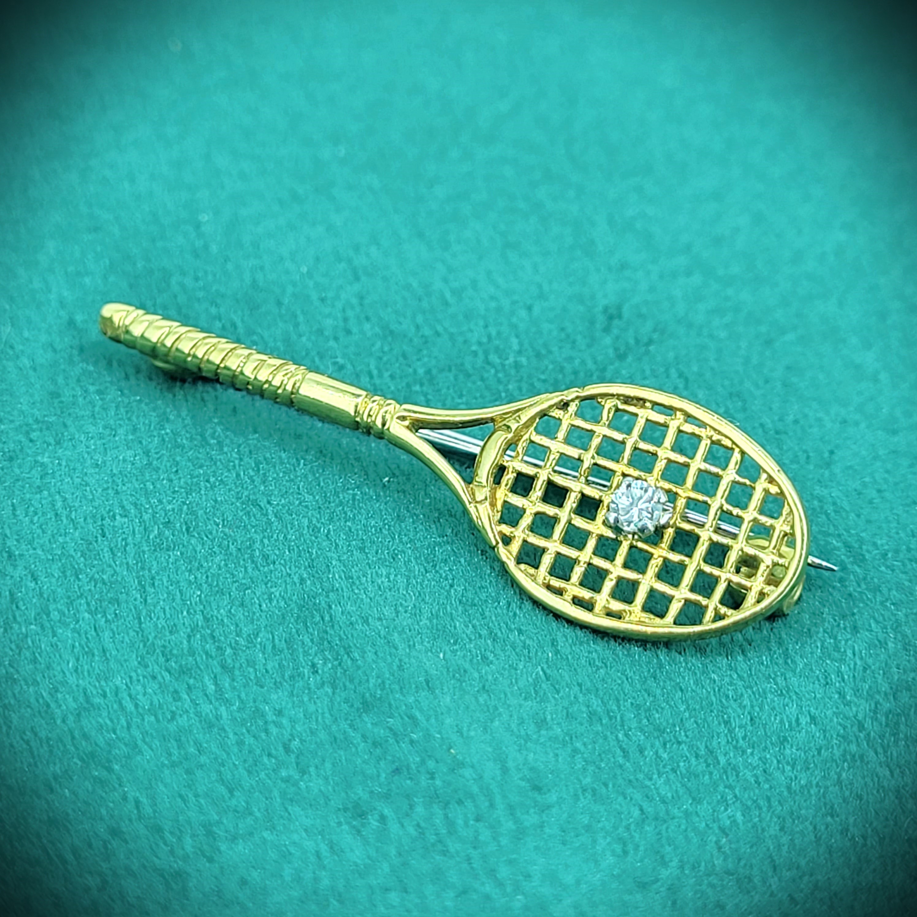 This is one for the Tennis lovers out there! We are absolutely delighted to present this Tennis Racquet Brooch crafted from 18ct Gold.