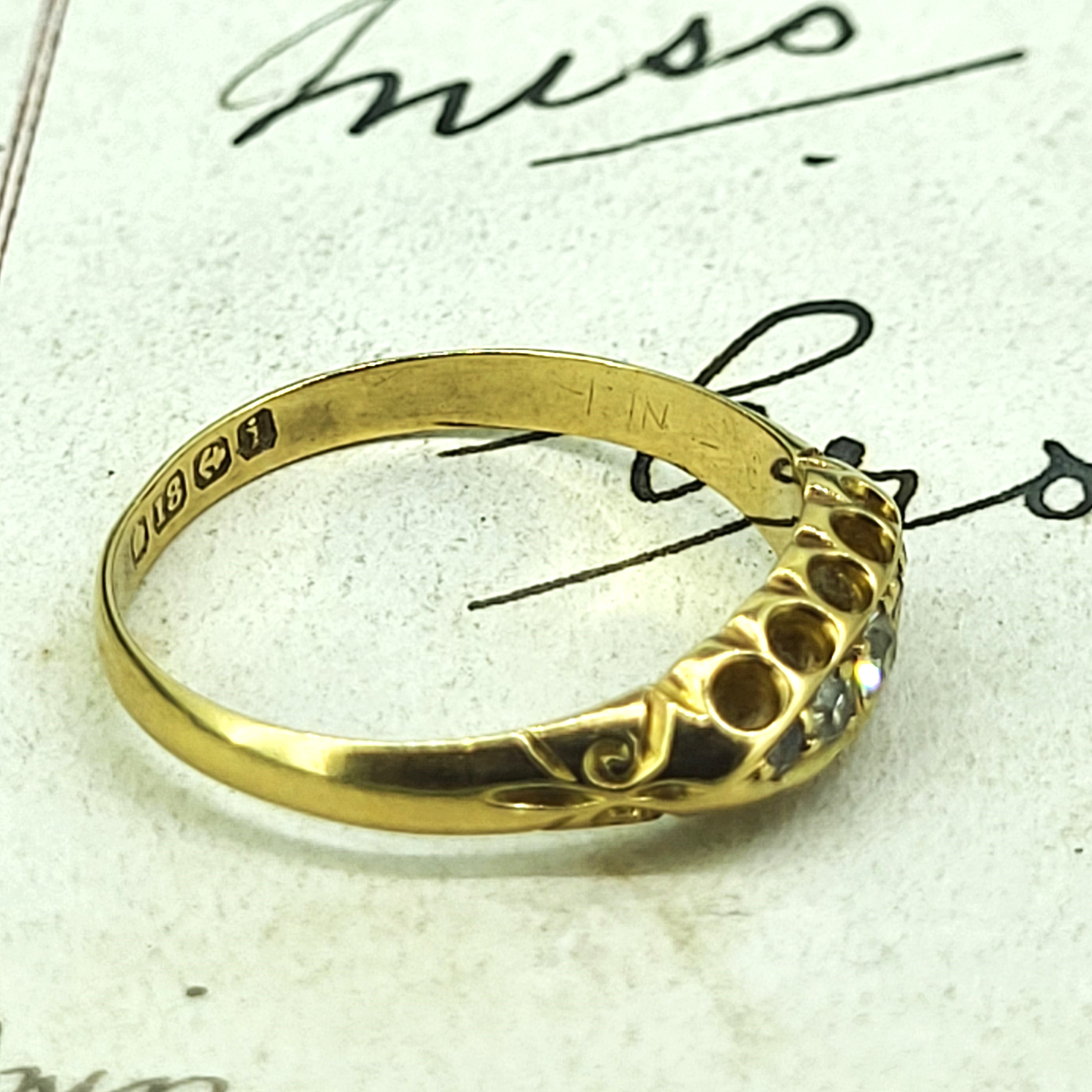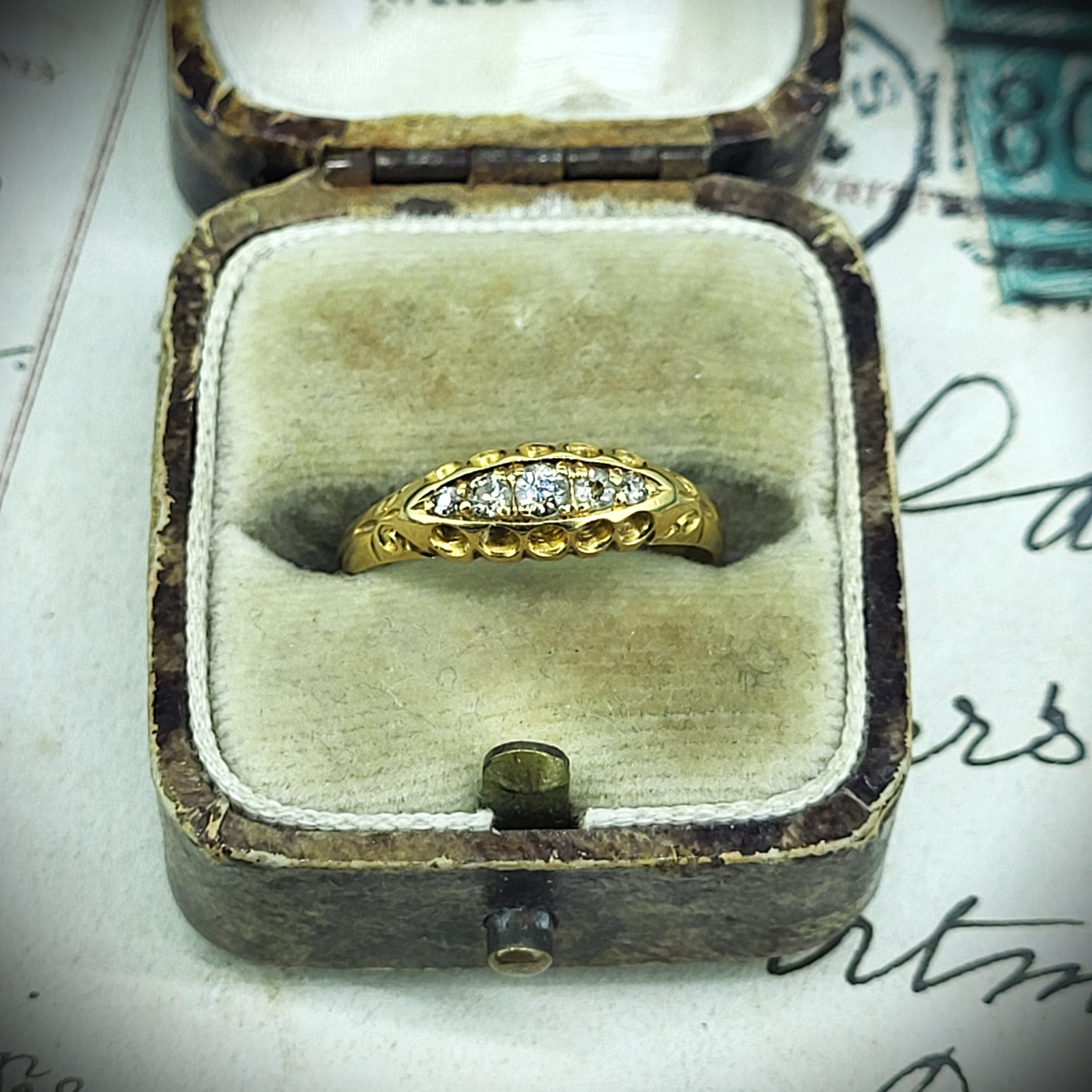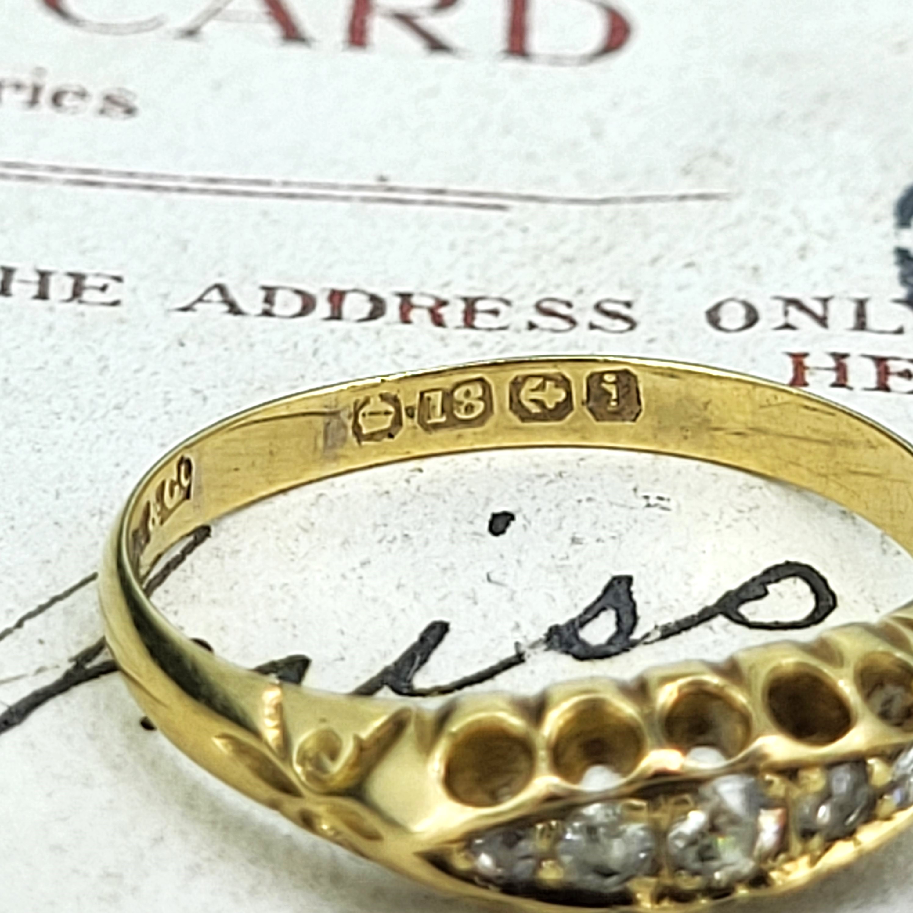 An 18ct Yellow Gold Diamond Ring hallmarked in Birmingham in 1883! This ring is celebrating its 140th birthday and is fantastically well preserved. The Makers Mark is K & Co which we unfortunately can't find any further information on.
