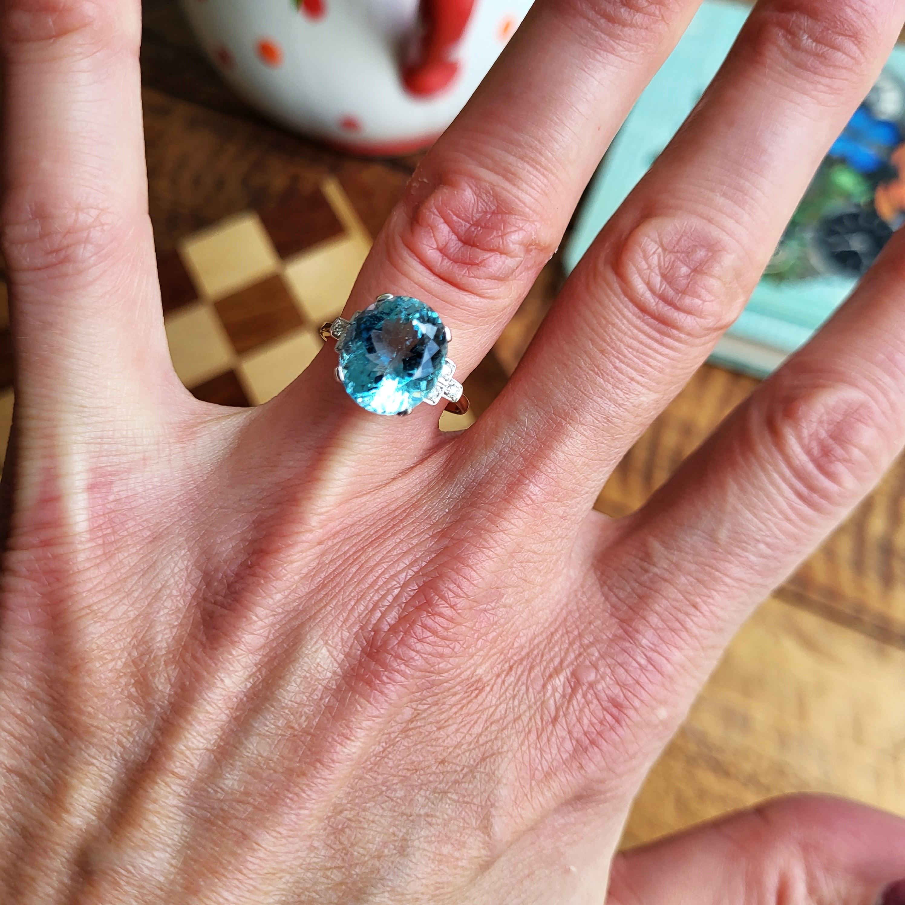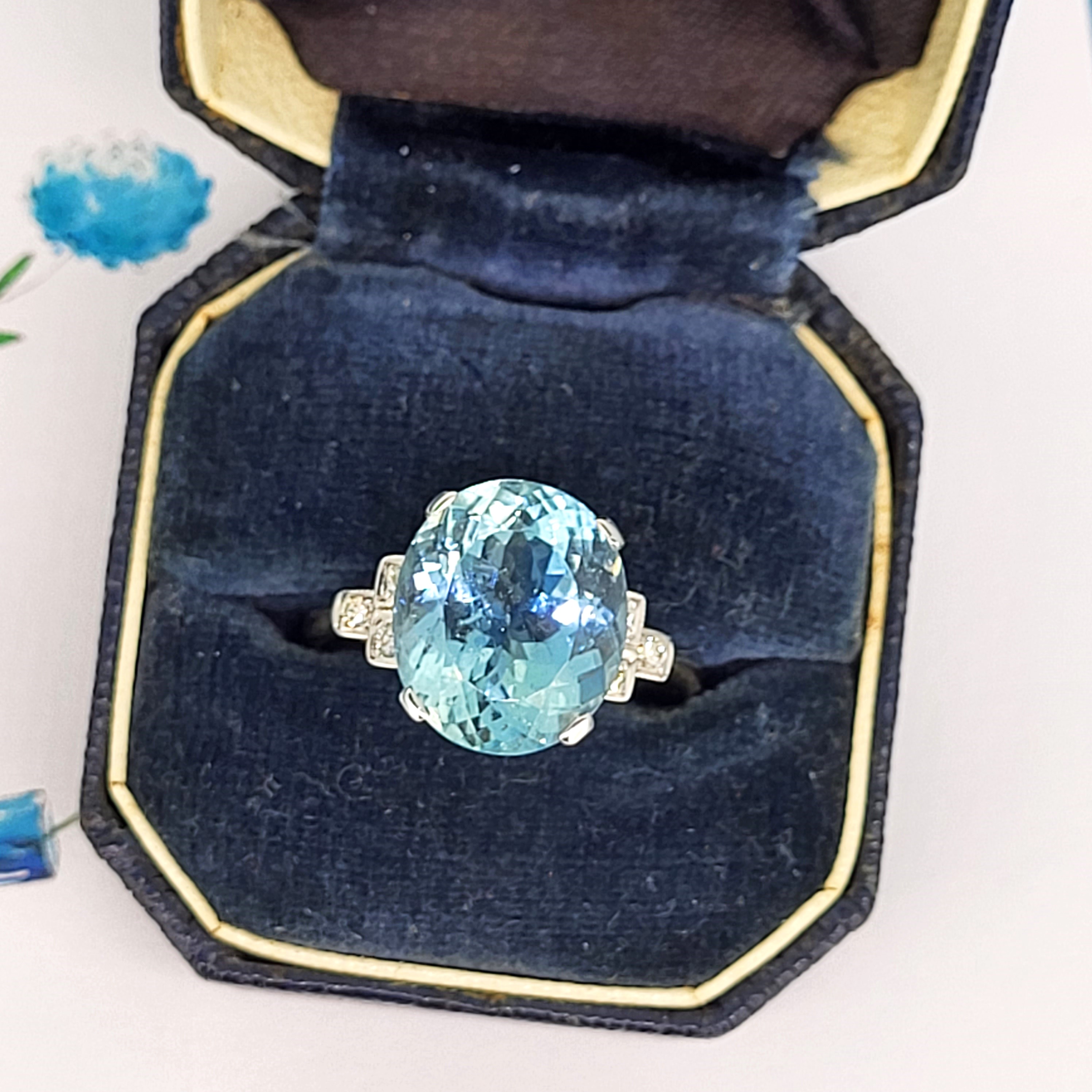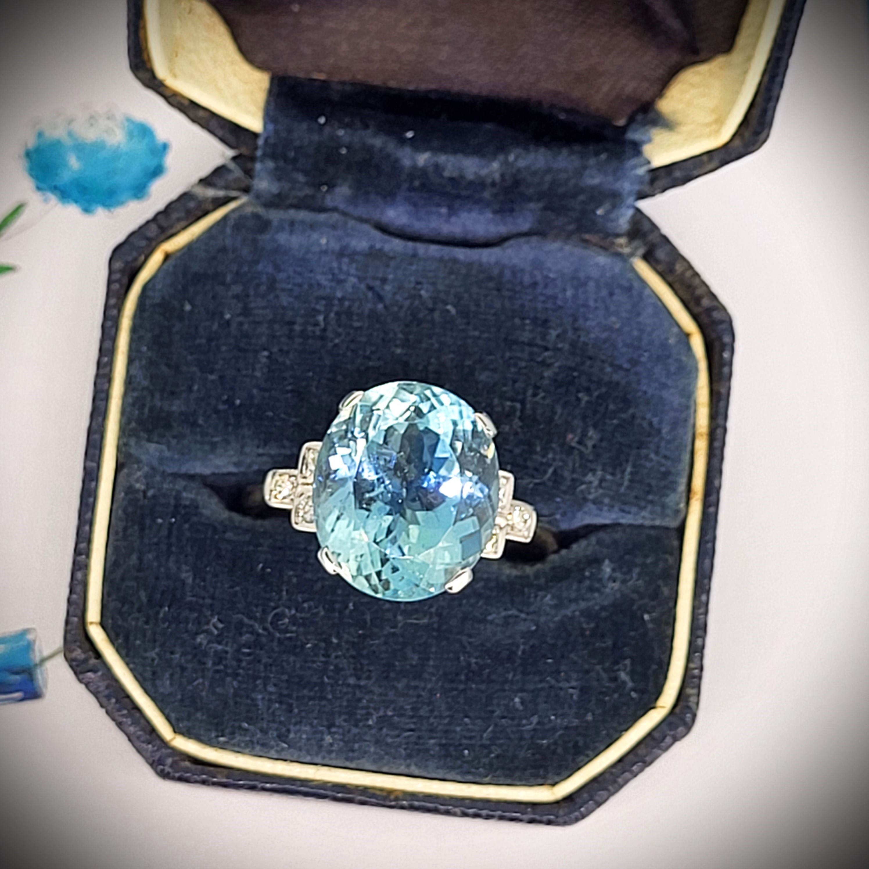 We are totally in love with this fabulous Aquamarine and Diamond Ring.