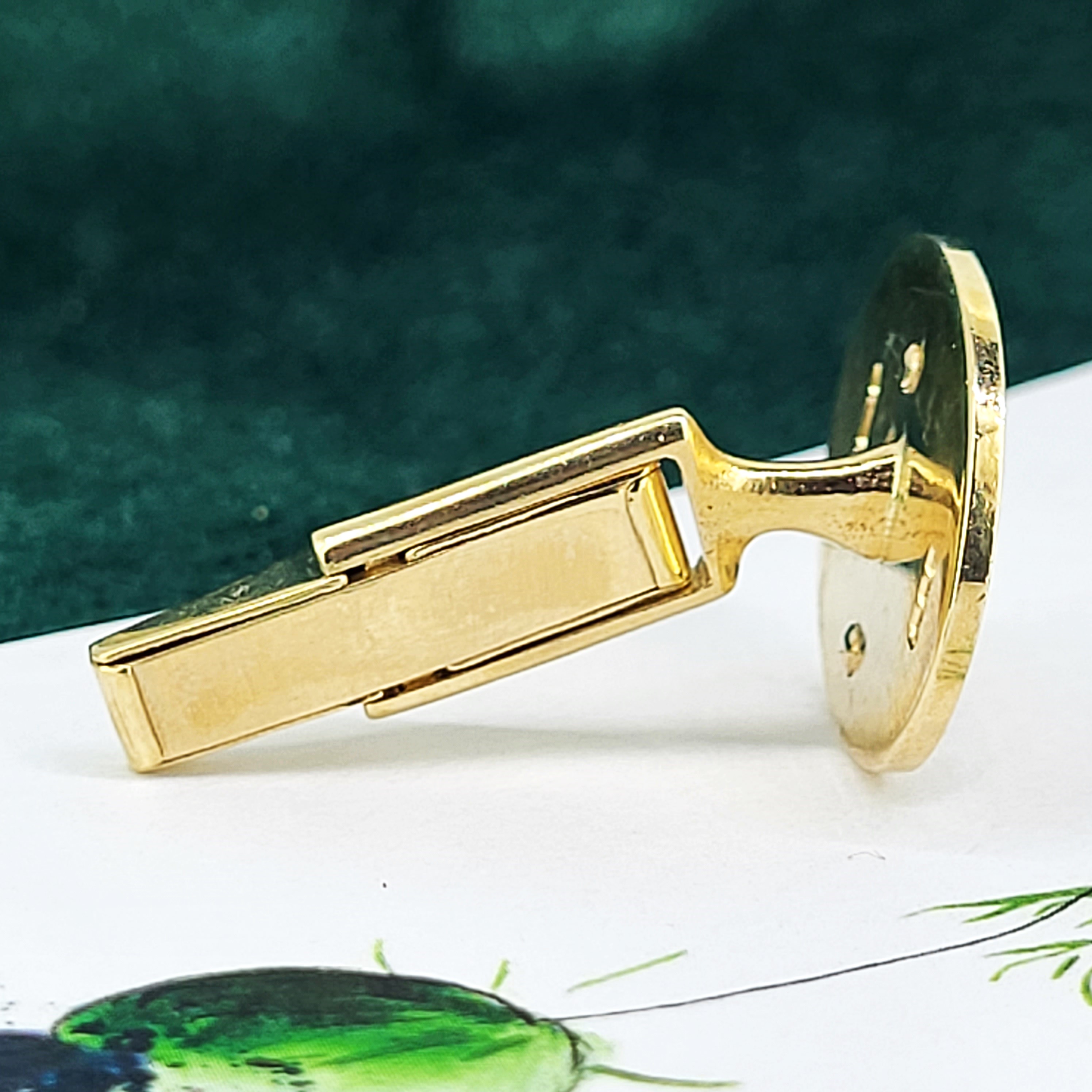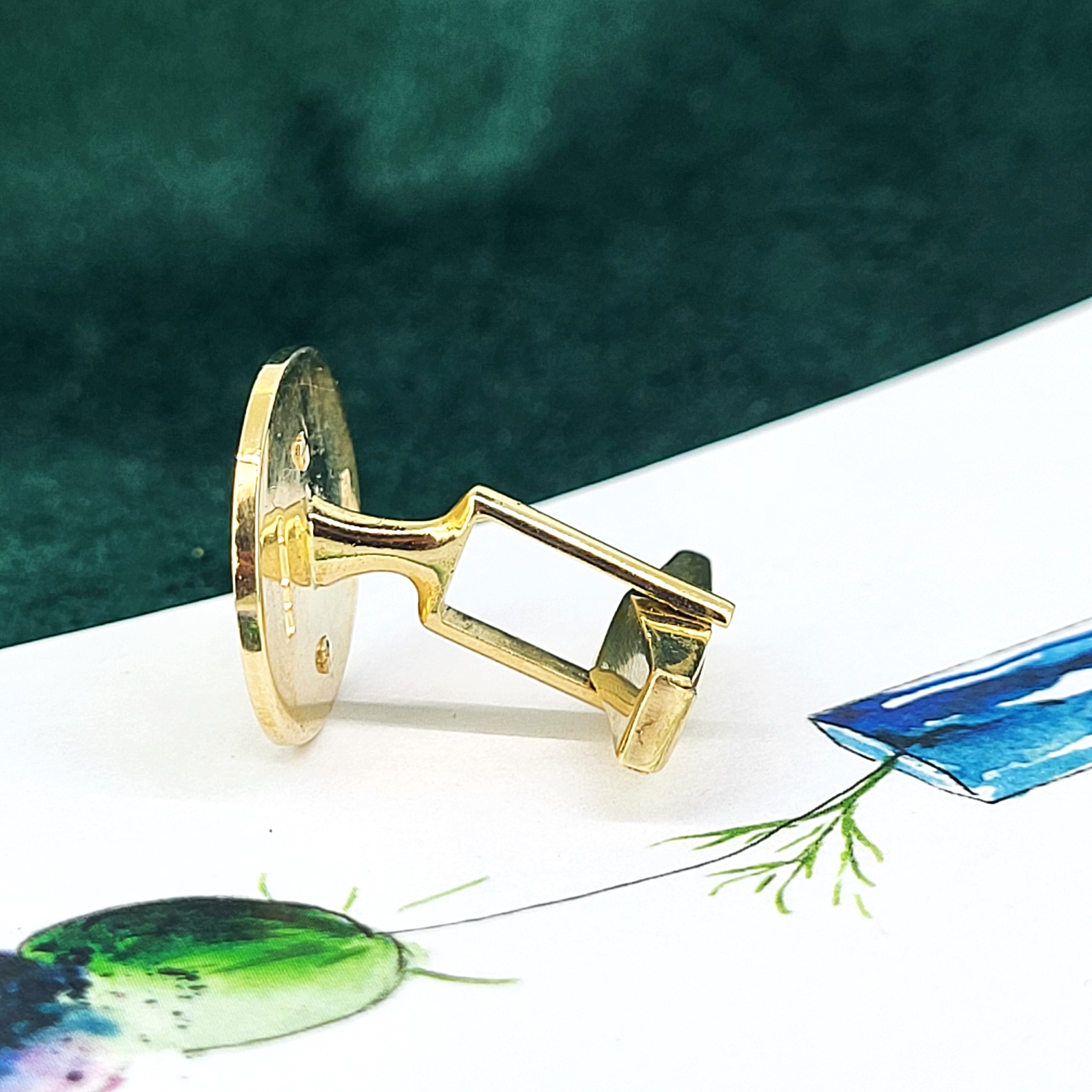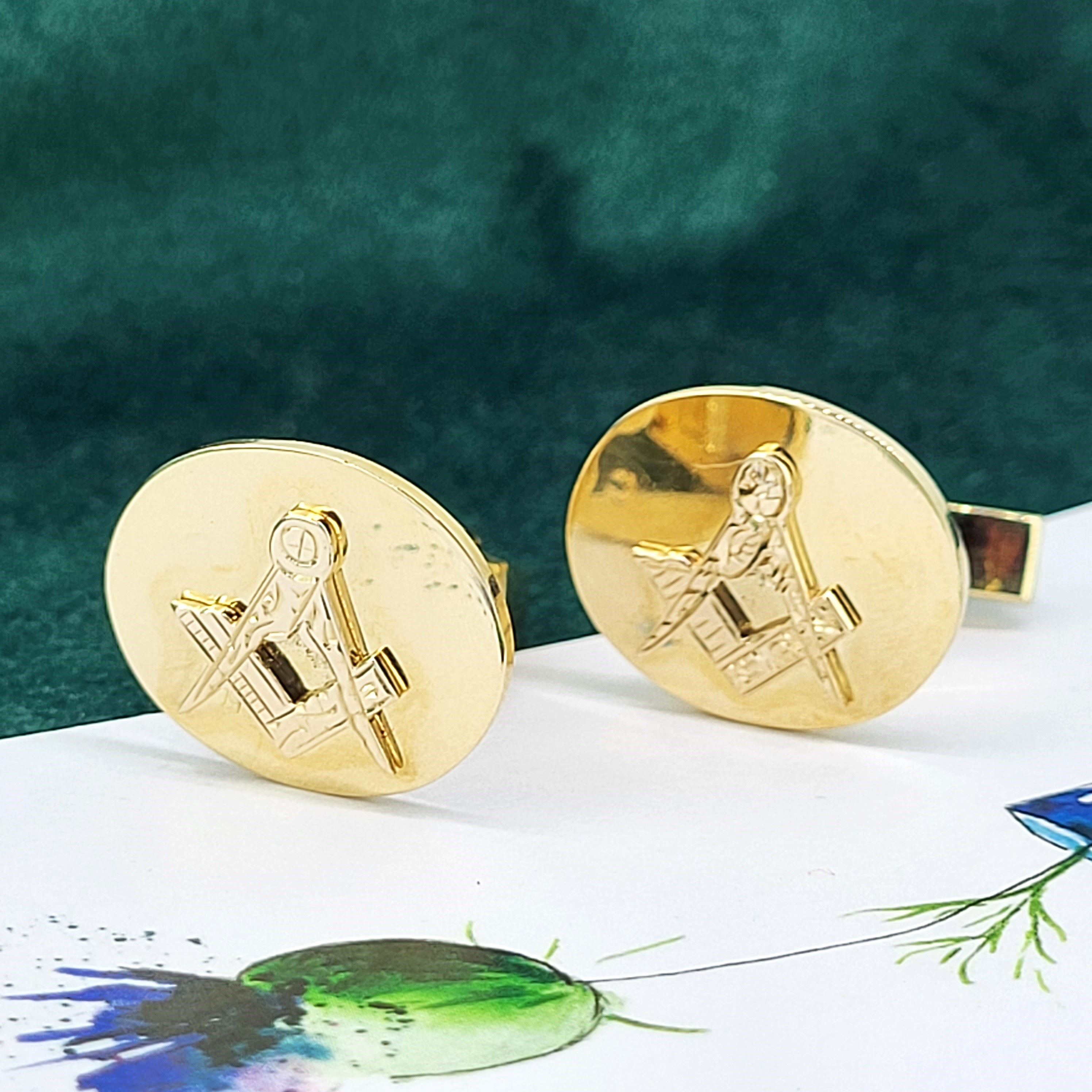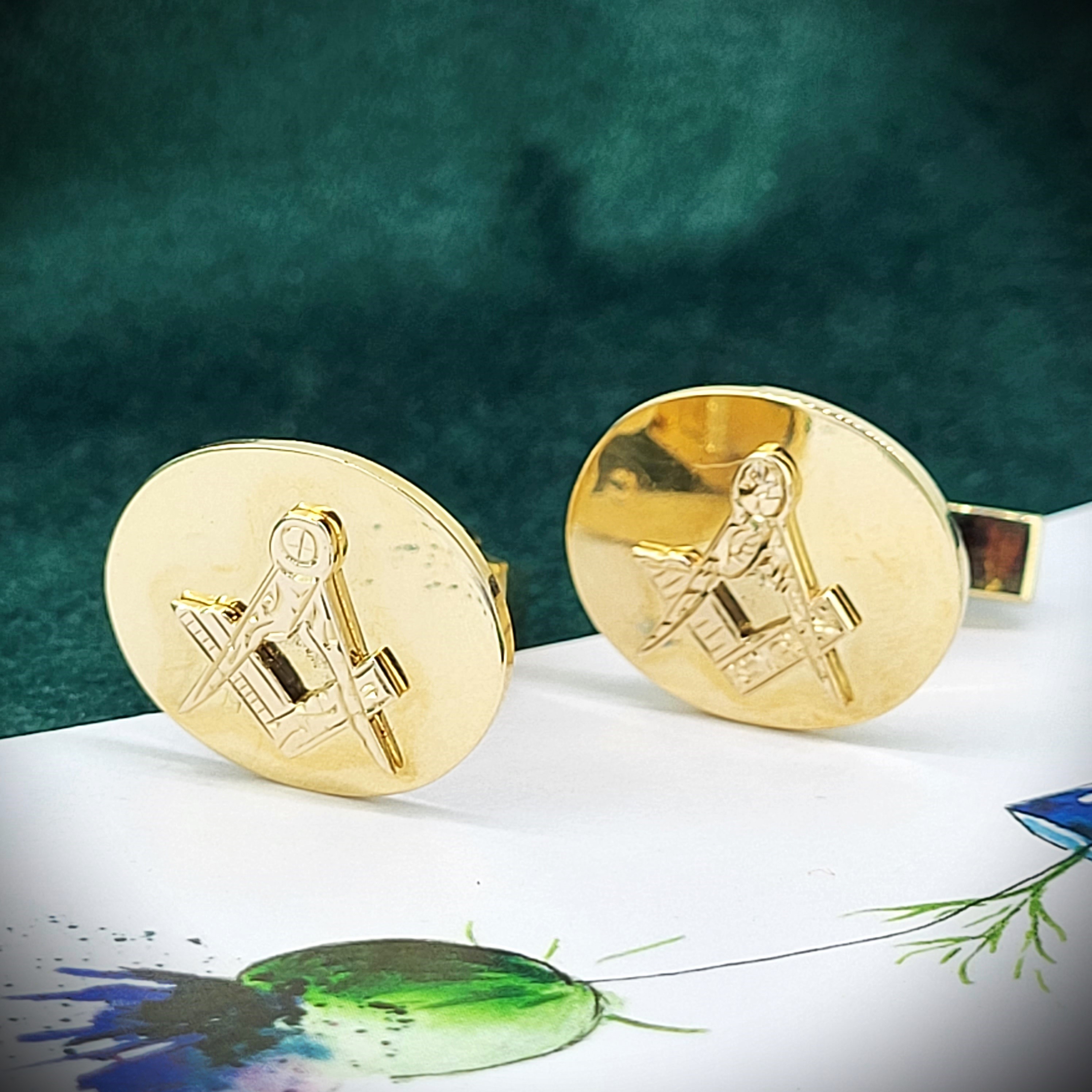The Cufflinks are oval in shape and measure 2cm by 1.6cm. They feature the Masonic Motif in the centre which is in relief, meaning the Motif stands proud.