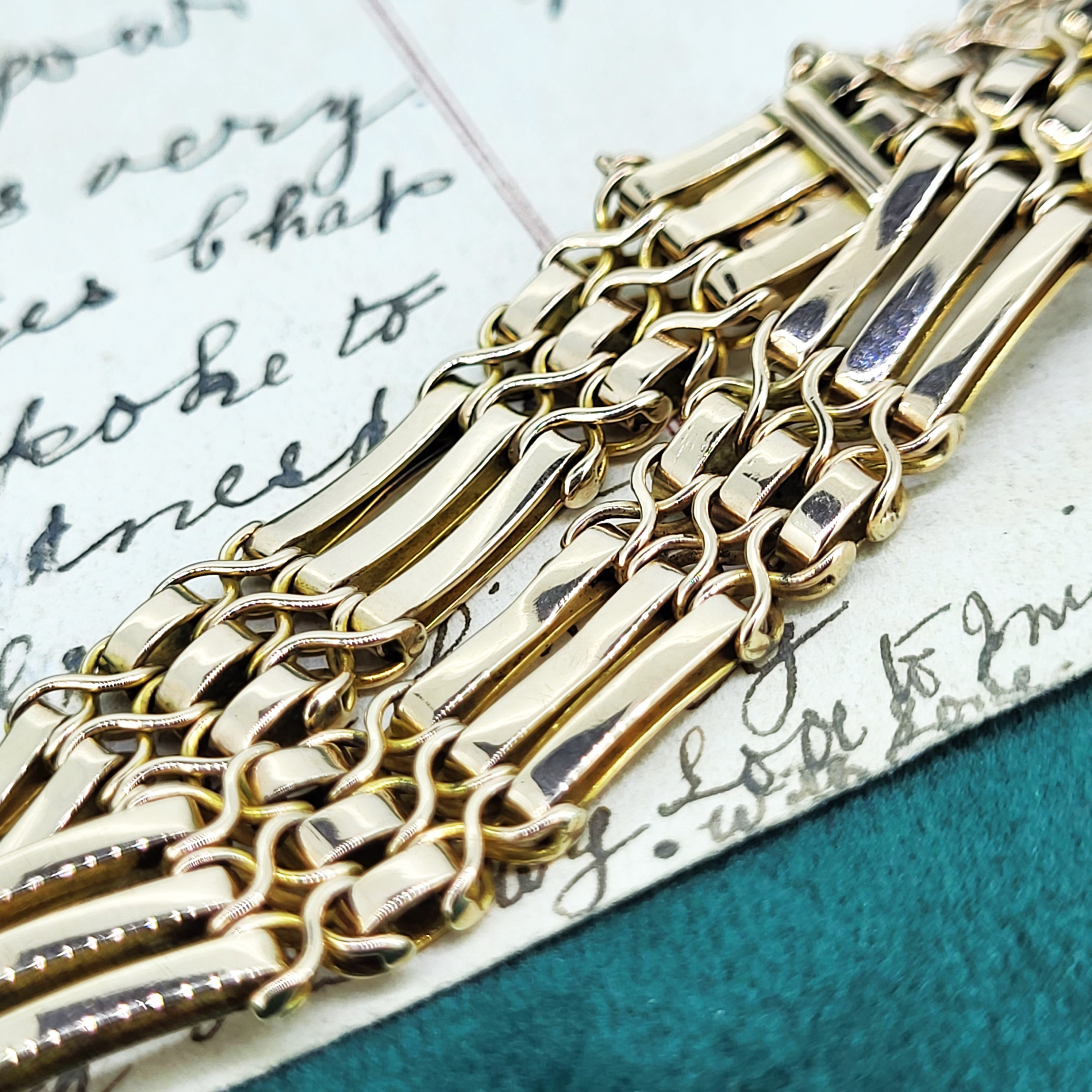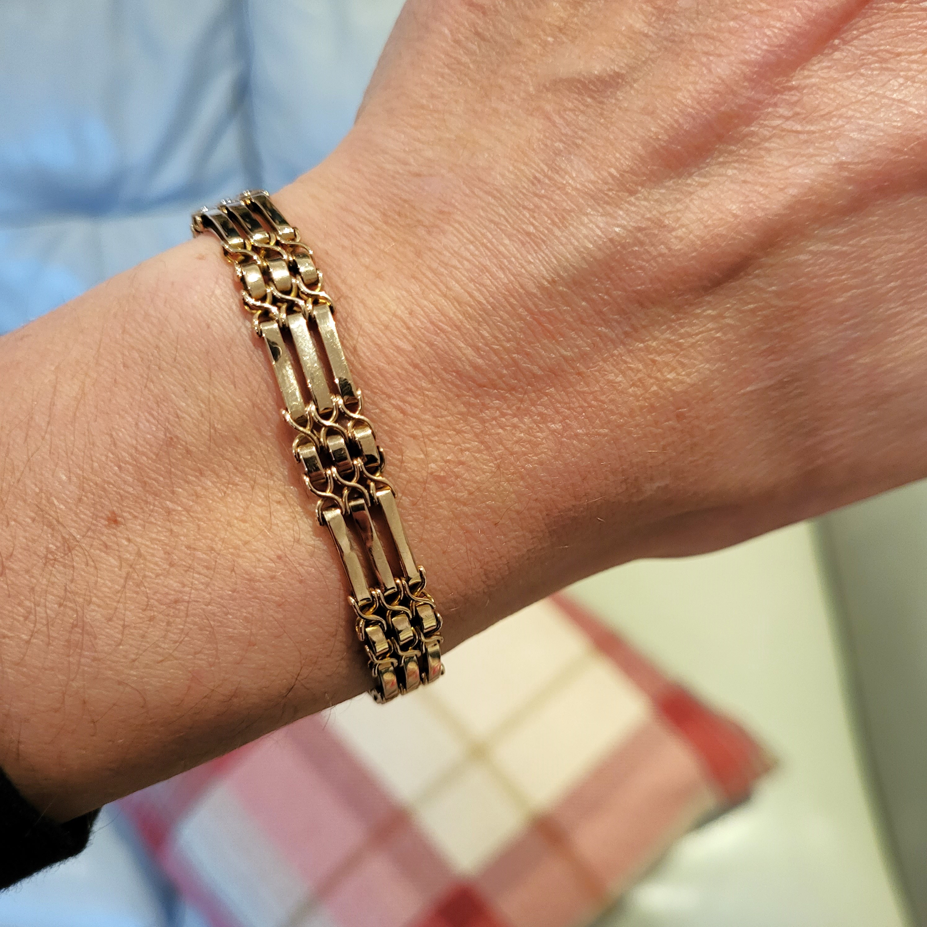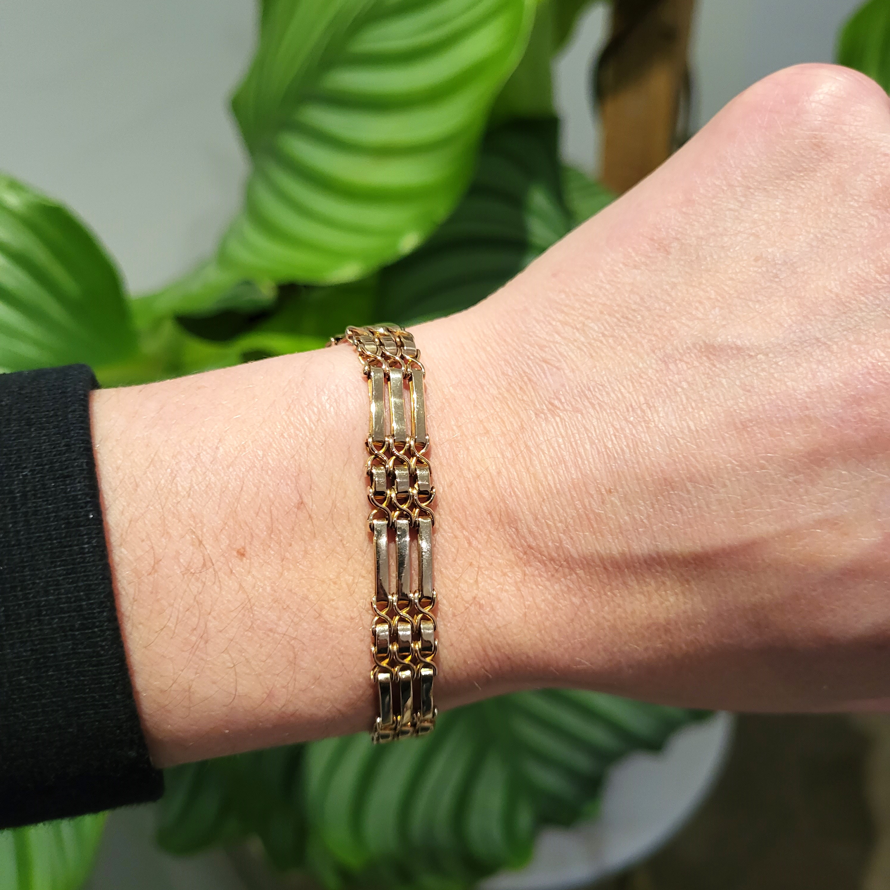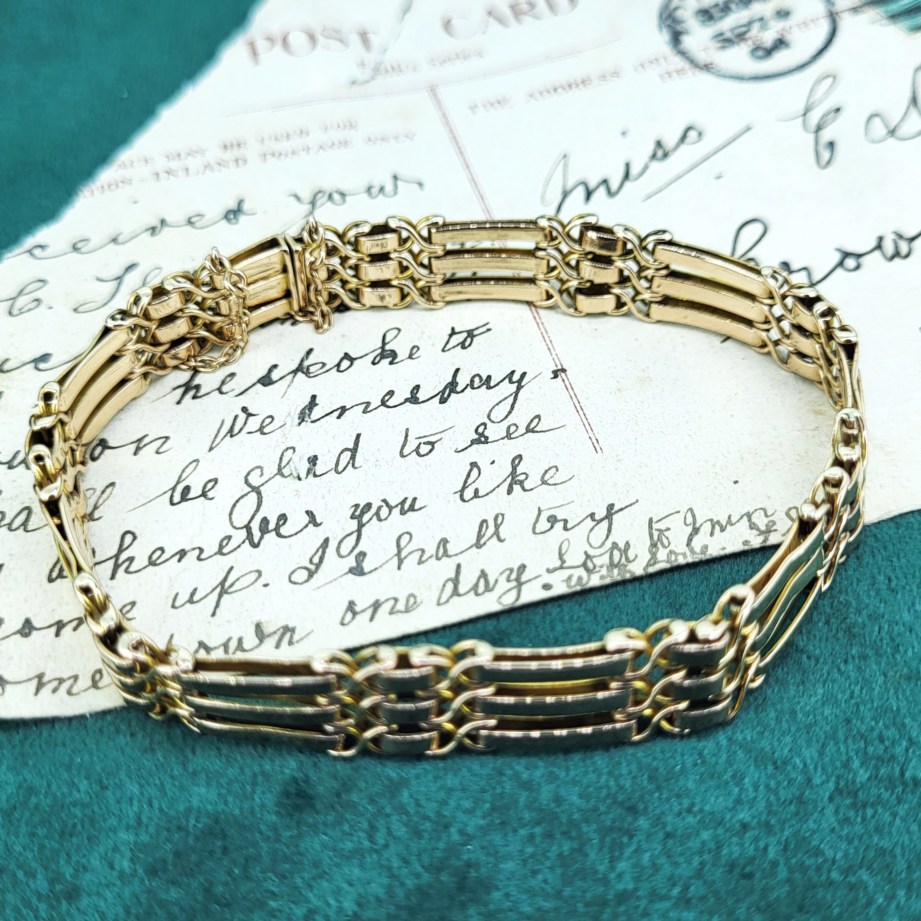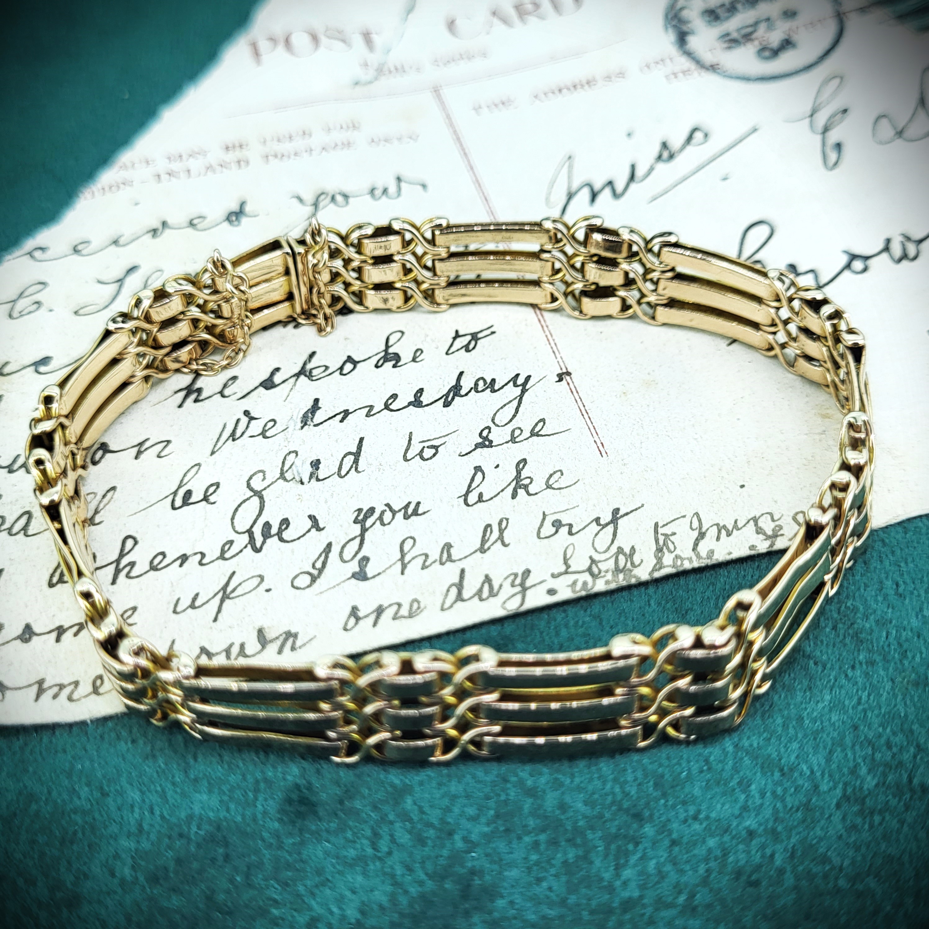 A gorgeous Antique Gate Bracelet crafted from 9ct Yellow Gold that was probably produced around the 1900s.
