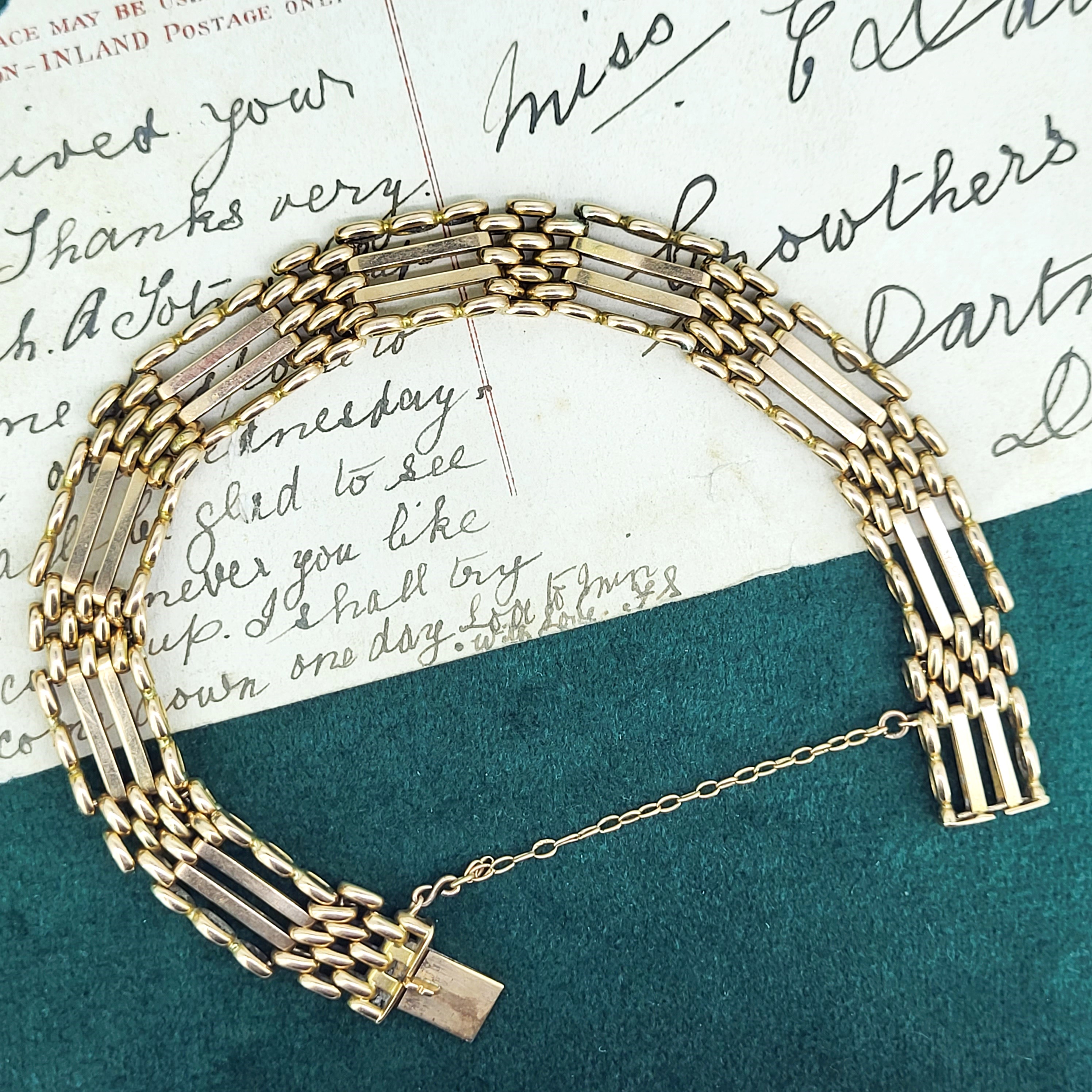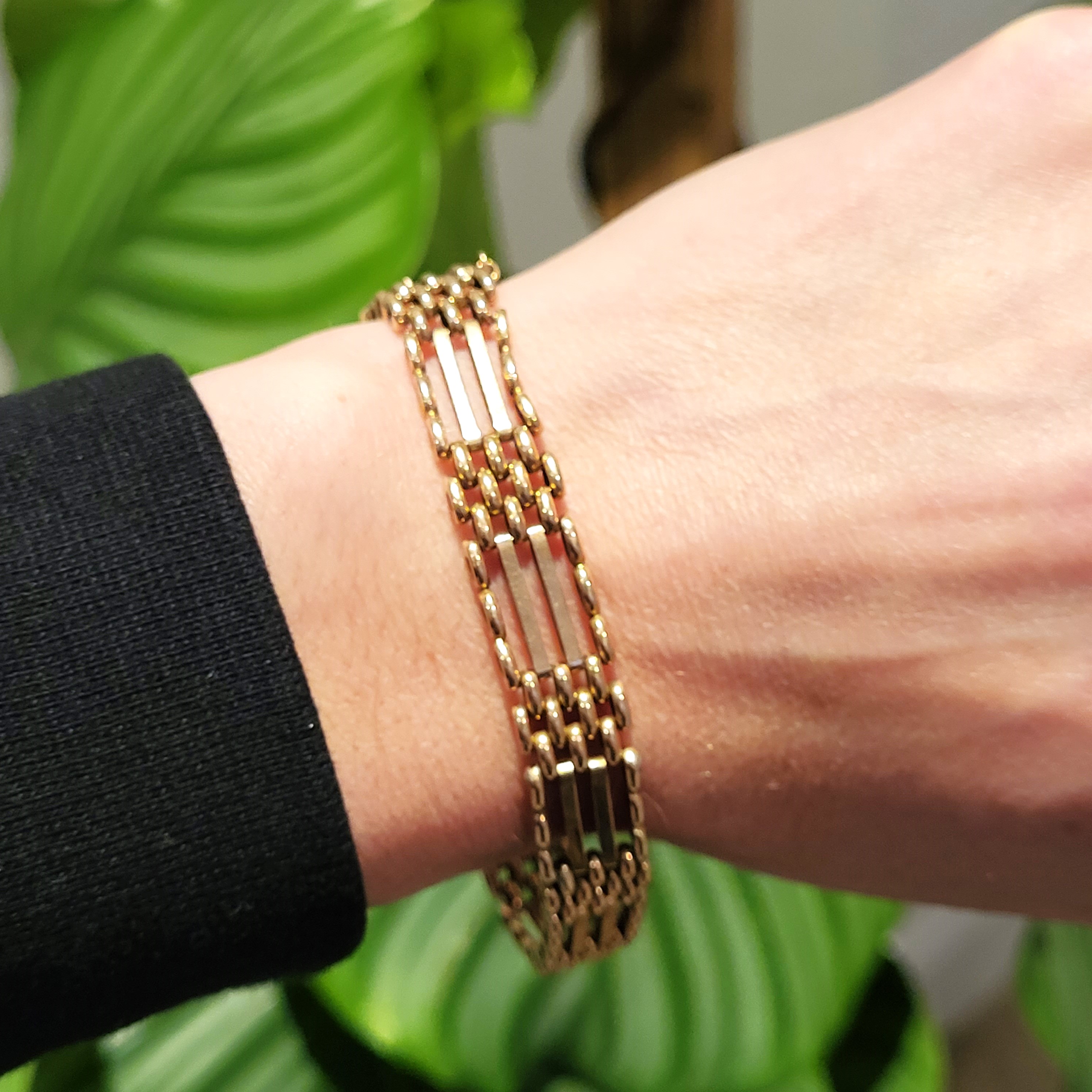 This Antique gate Bracelet crafted from 15ct Gold is delightfully pretty and would fit someone with an 18cm wrist as this one is longer than usual.