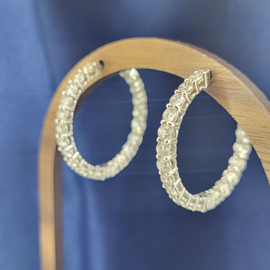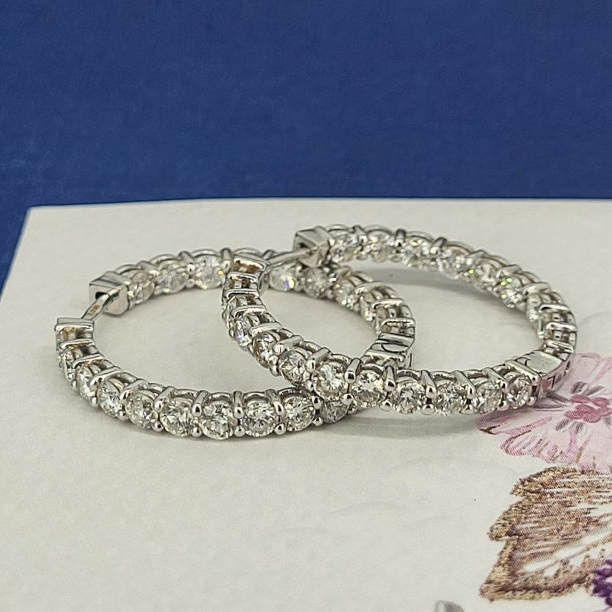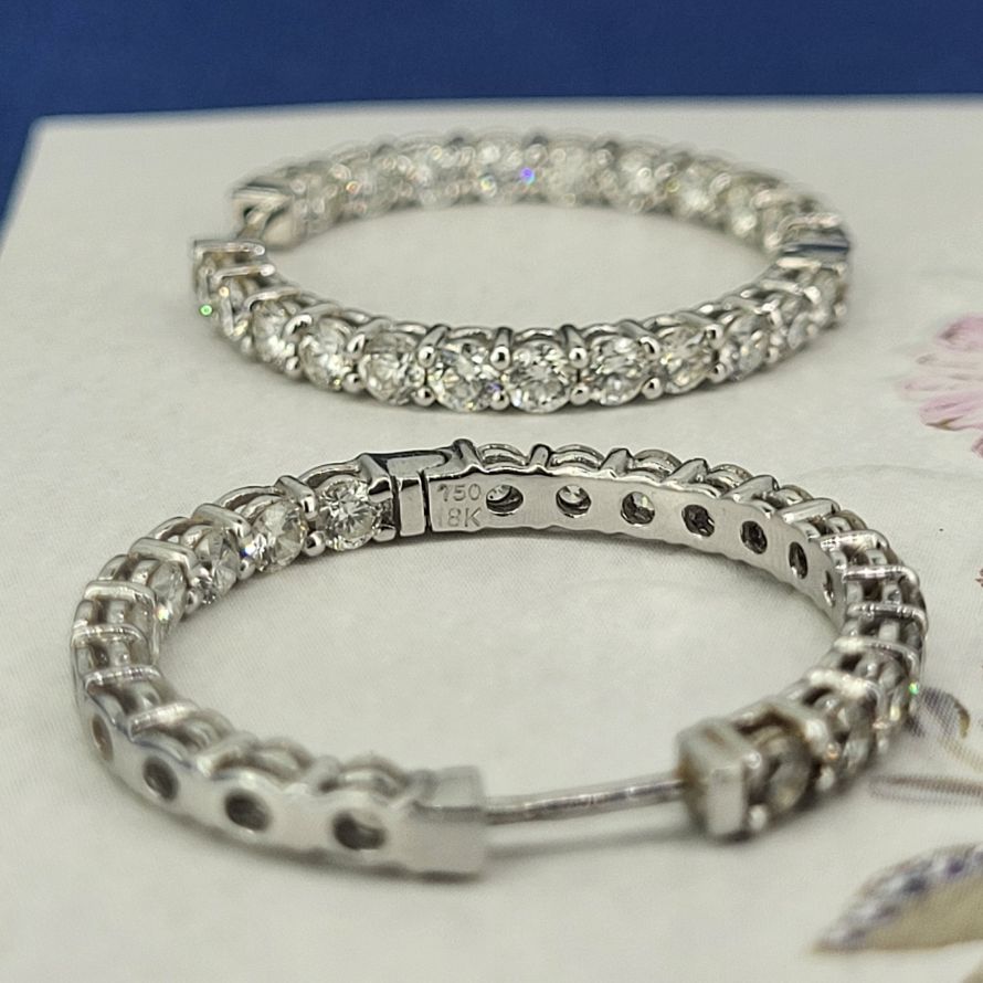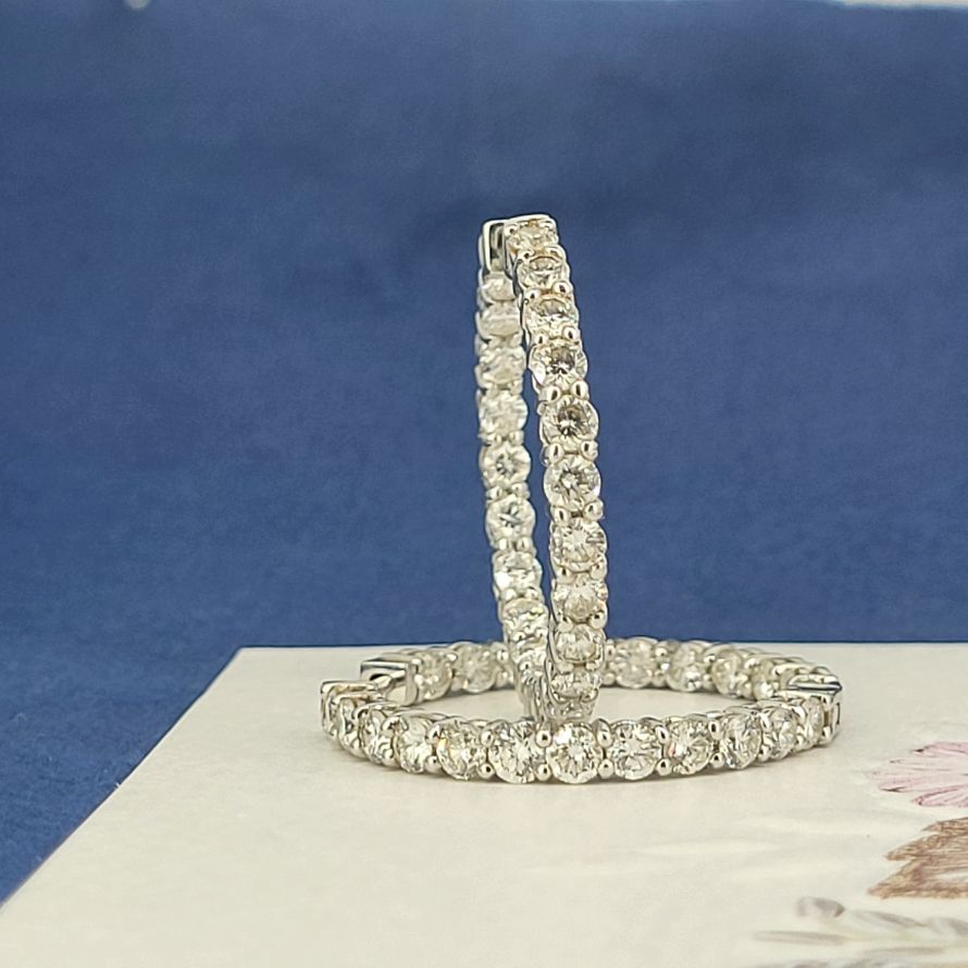 Weighing a total of 3.02cts here we present claw set hoops that sparkle with delight on the inside and the outside! The 2.75mm round brilliant cuts are G/H colour with SI clarity and wrap around the 28mm 18ct White Gold hoop.