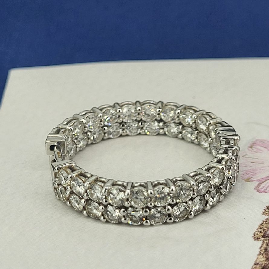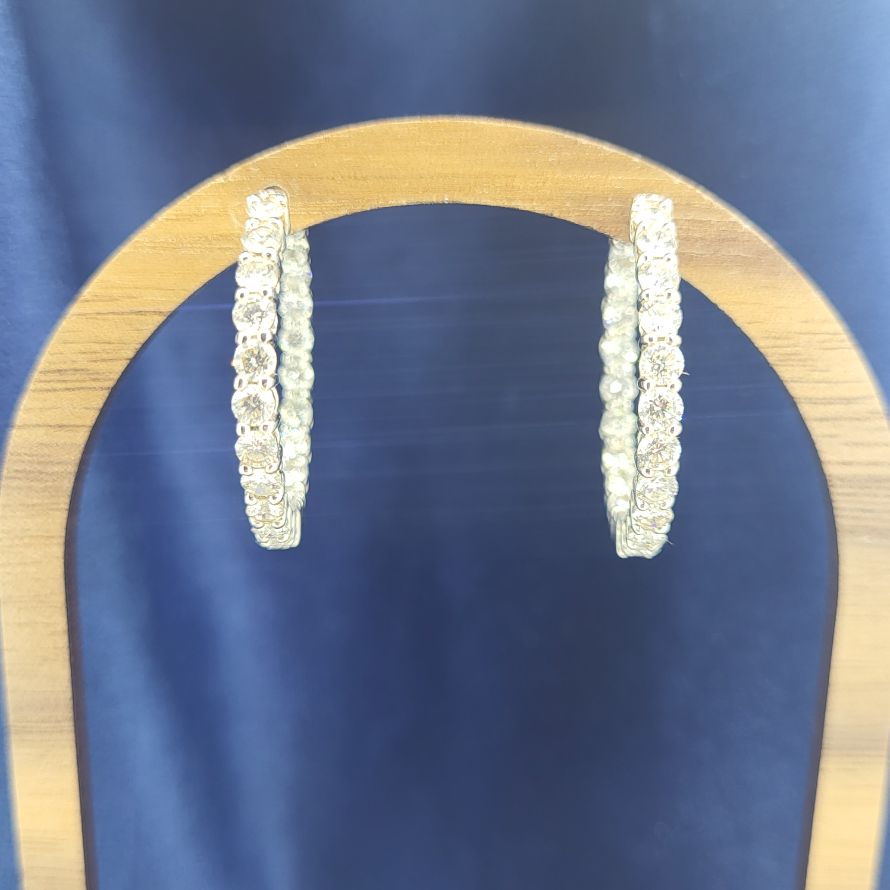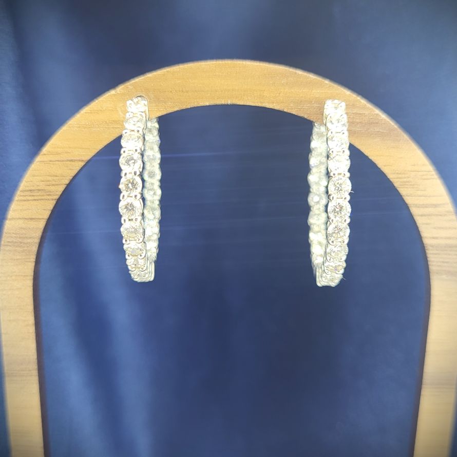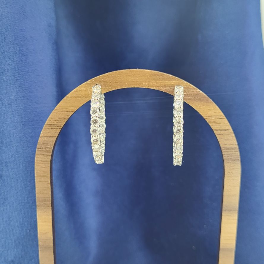 Weighing a total of 3.02cts here we present claw set hoops that sparkle with delight on the inside and the outside! The 2.75mm round brilliant cuts are G/H colour with SI clarity and wrap around the 28mm 18ct White Gold hoop.