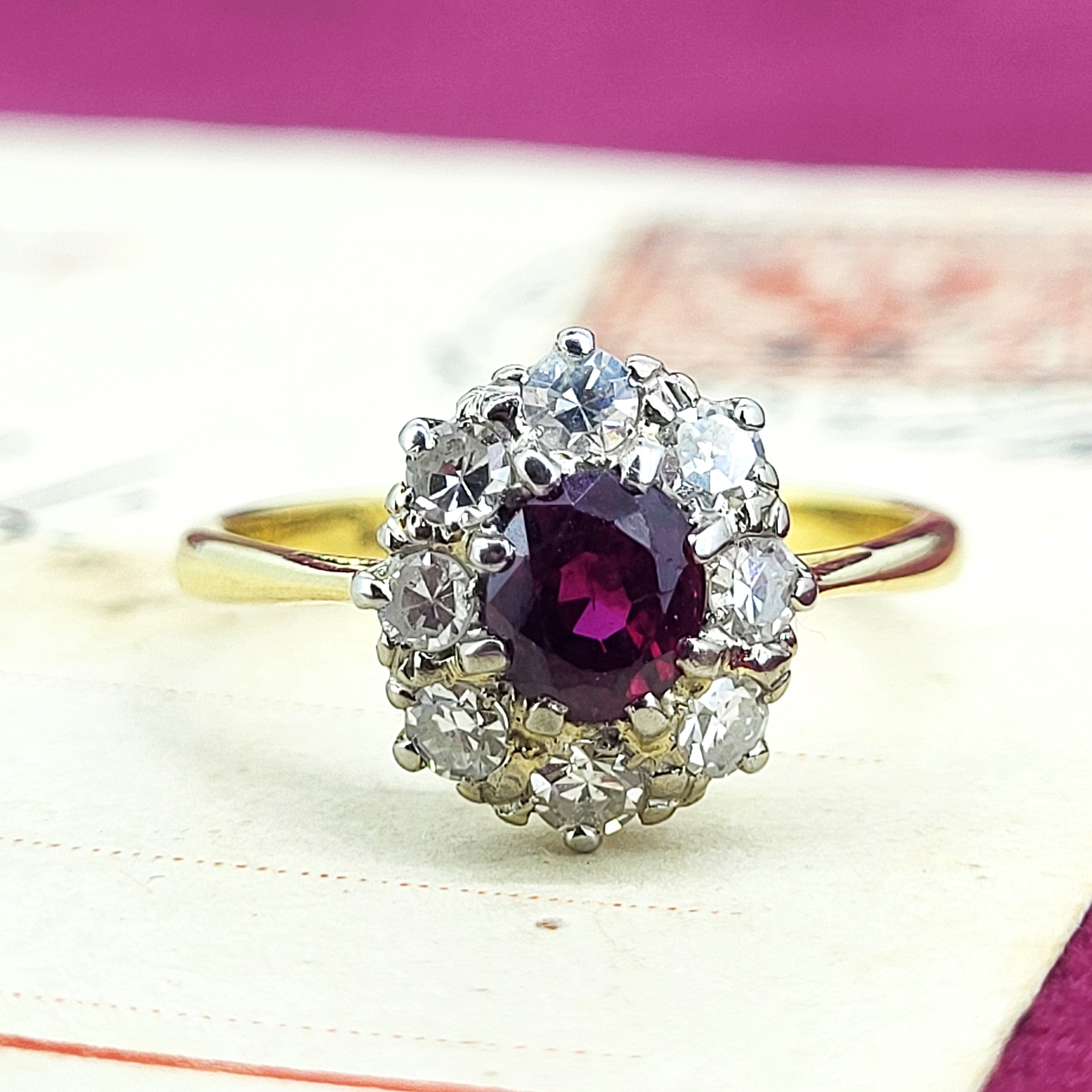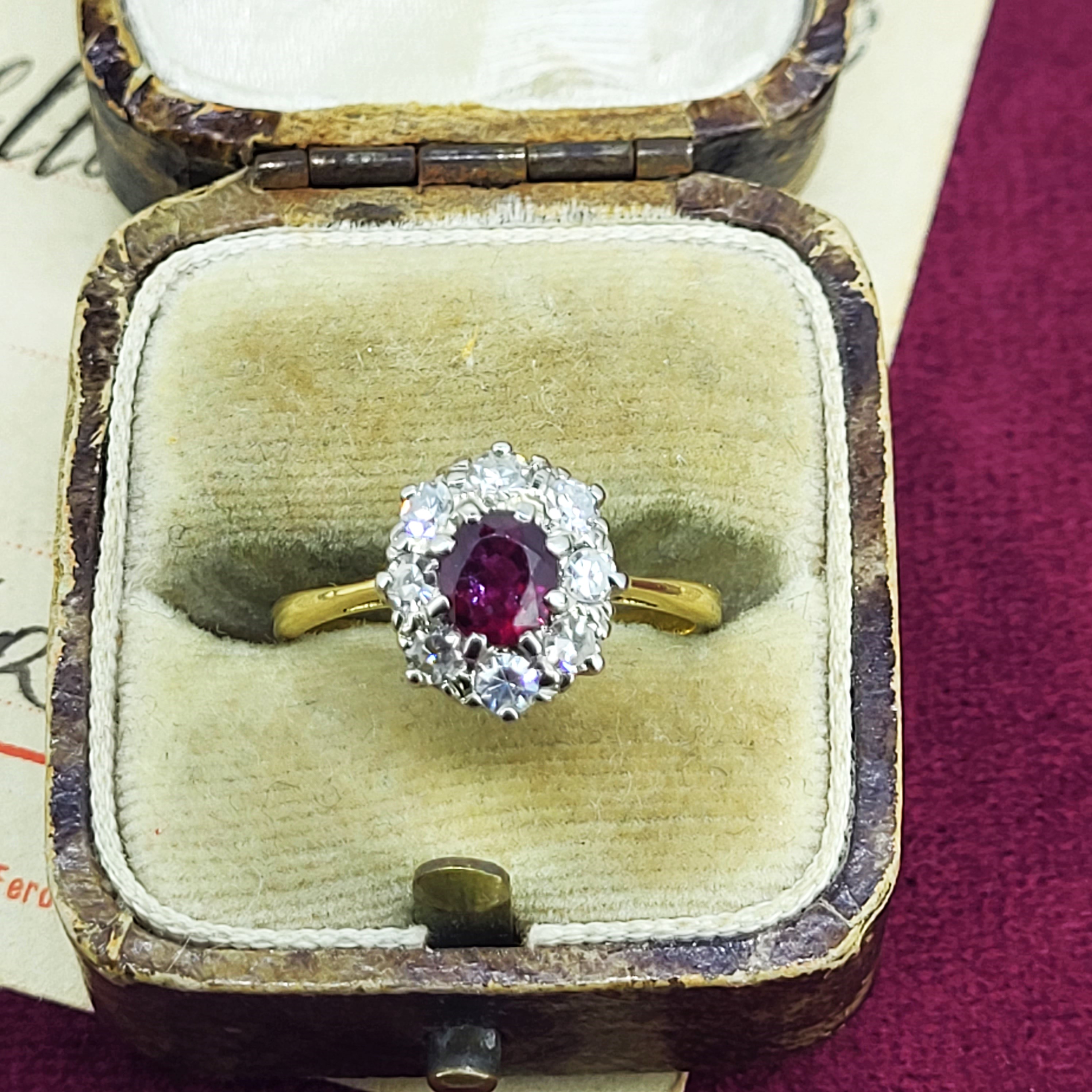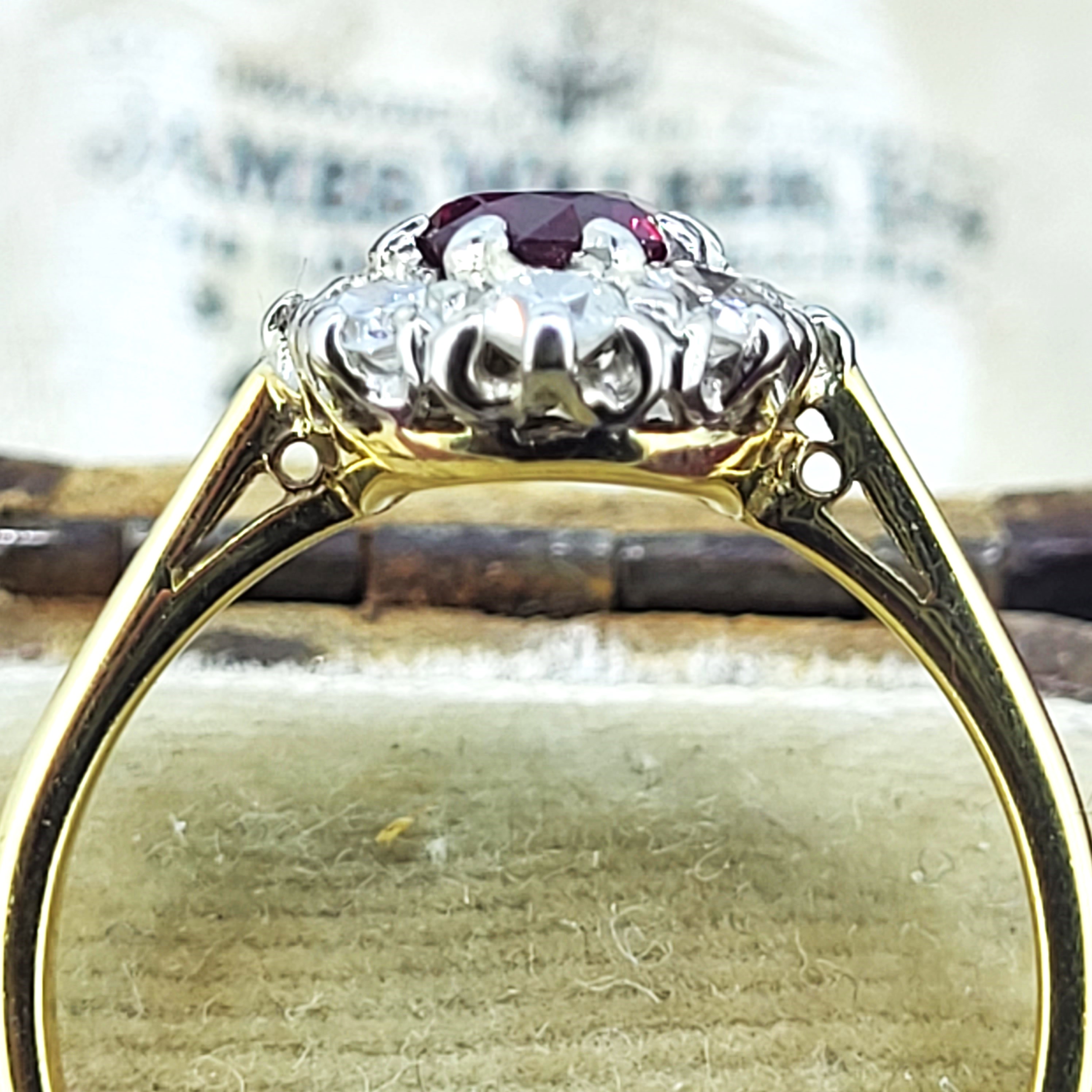 A Ruby and Diamond Cluster Ring crafted from Platinum and 18ct Gold.