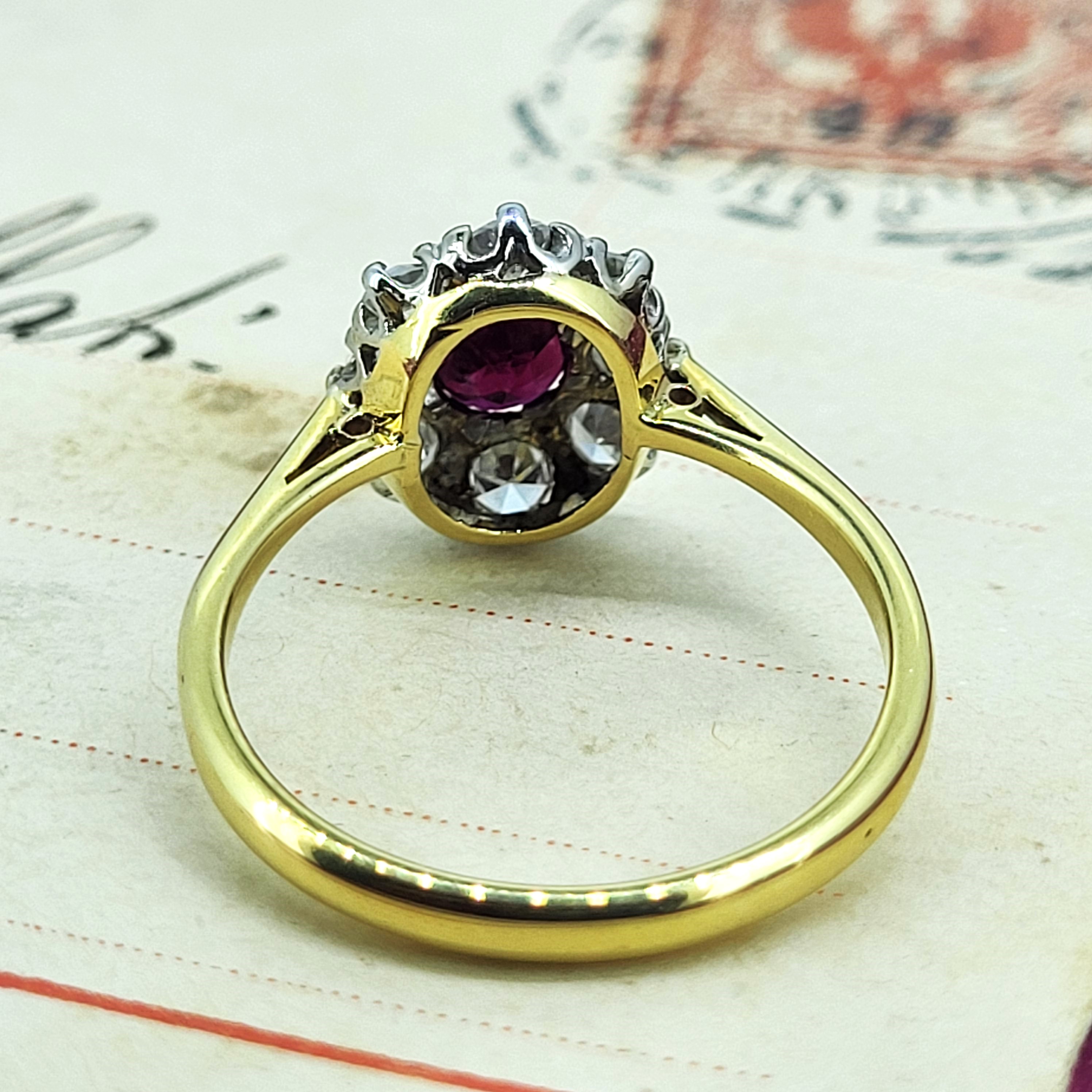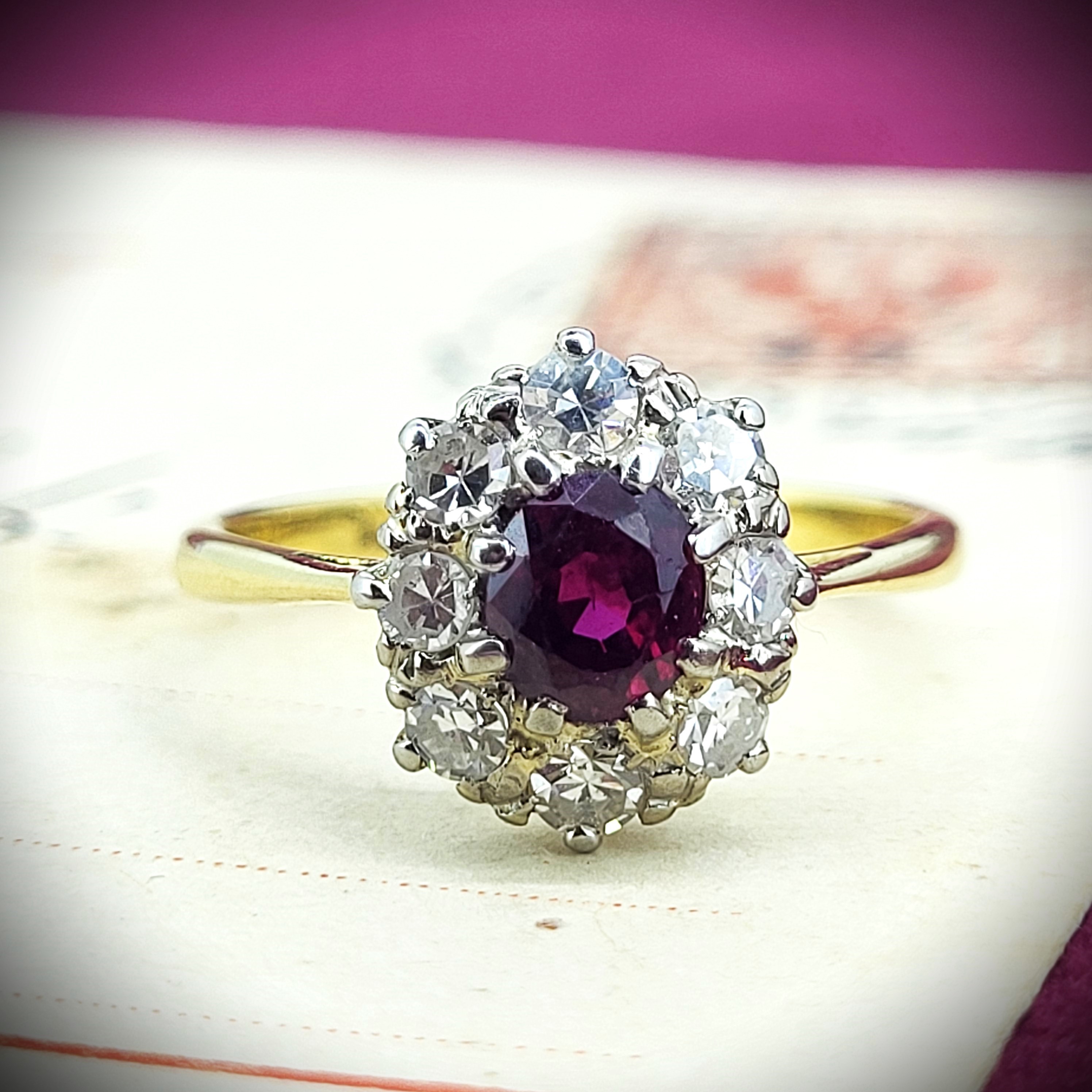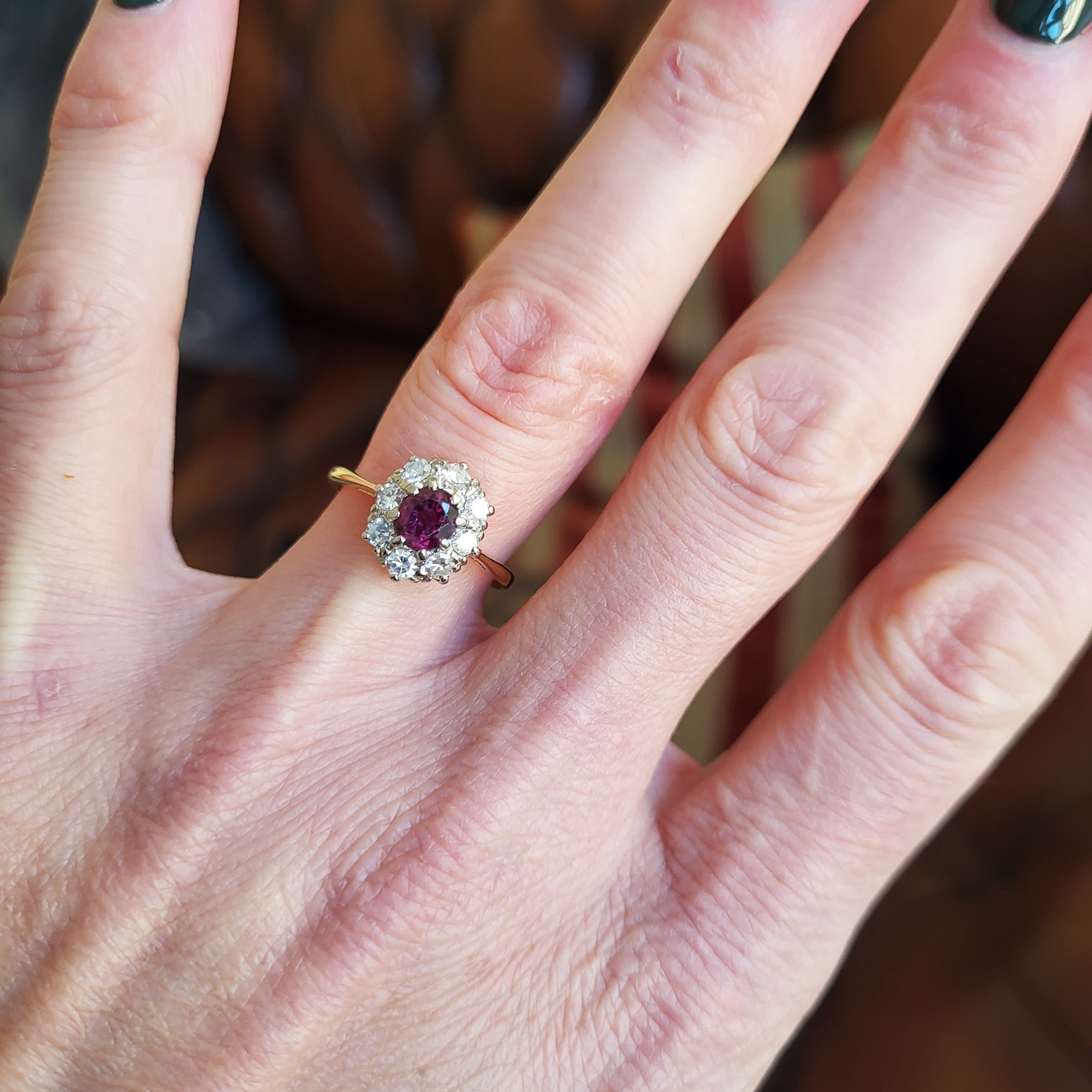 A Ruby and Diamond Cluster Ring crafted from Platinum and 18ct Gold.