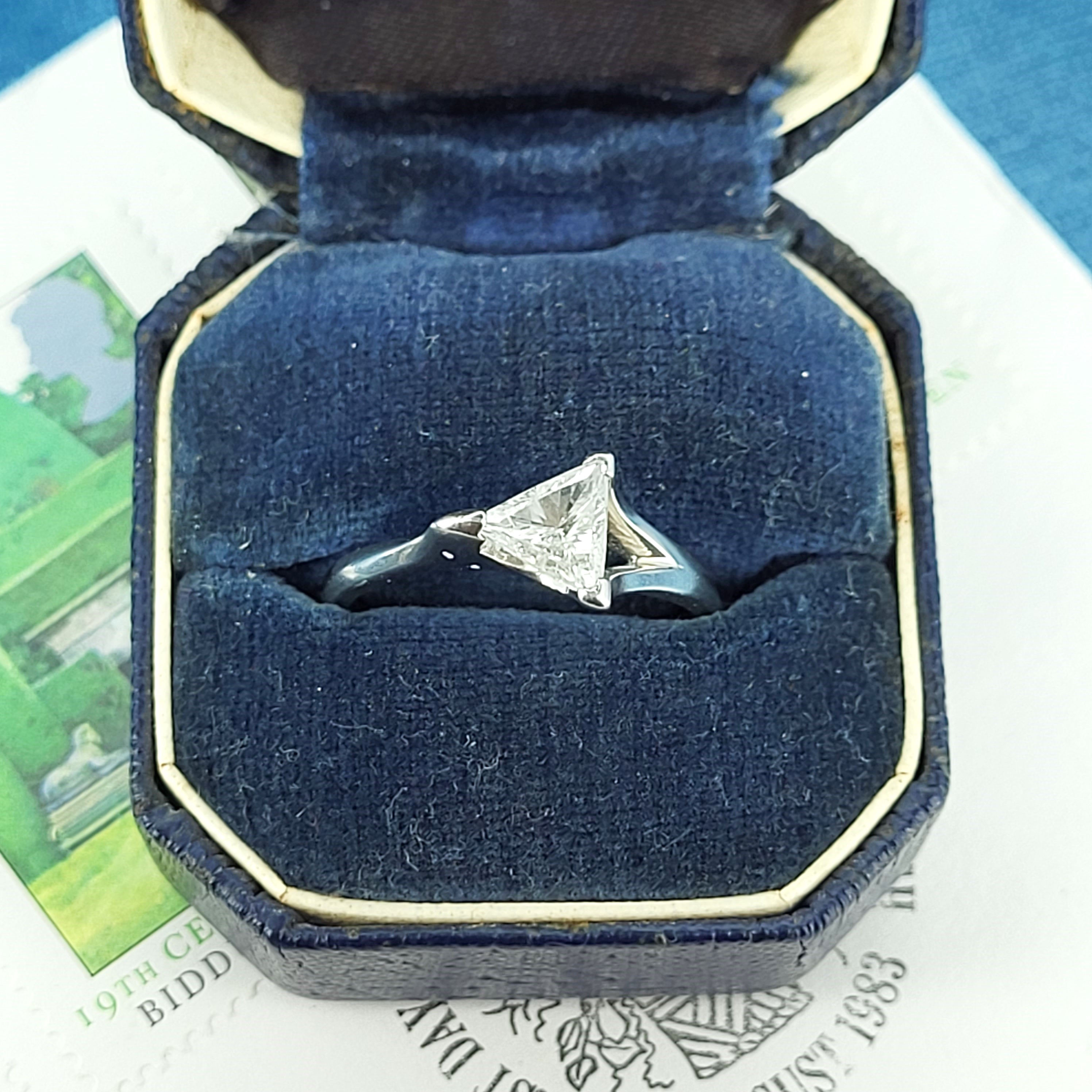 Presenting this amazing Trilliant Cut Diamond Solitaire set in Platinum; Not a ring that many are ever fortunate to come across, it is immensely impressive.