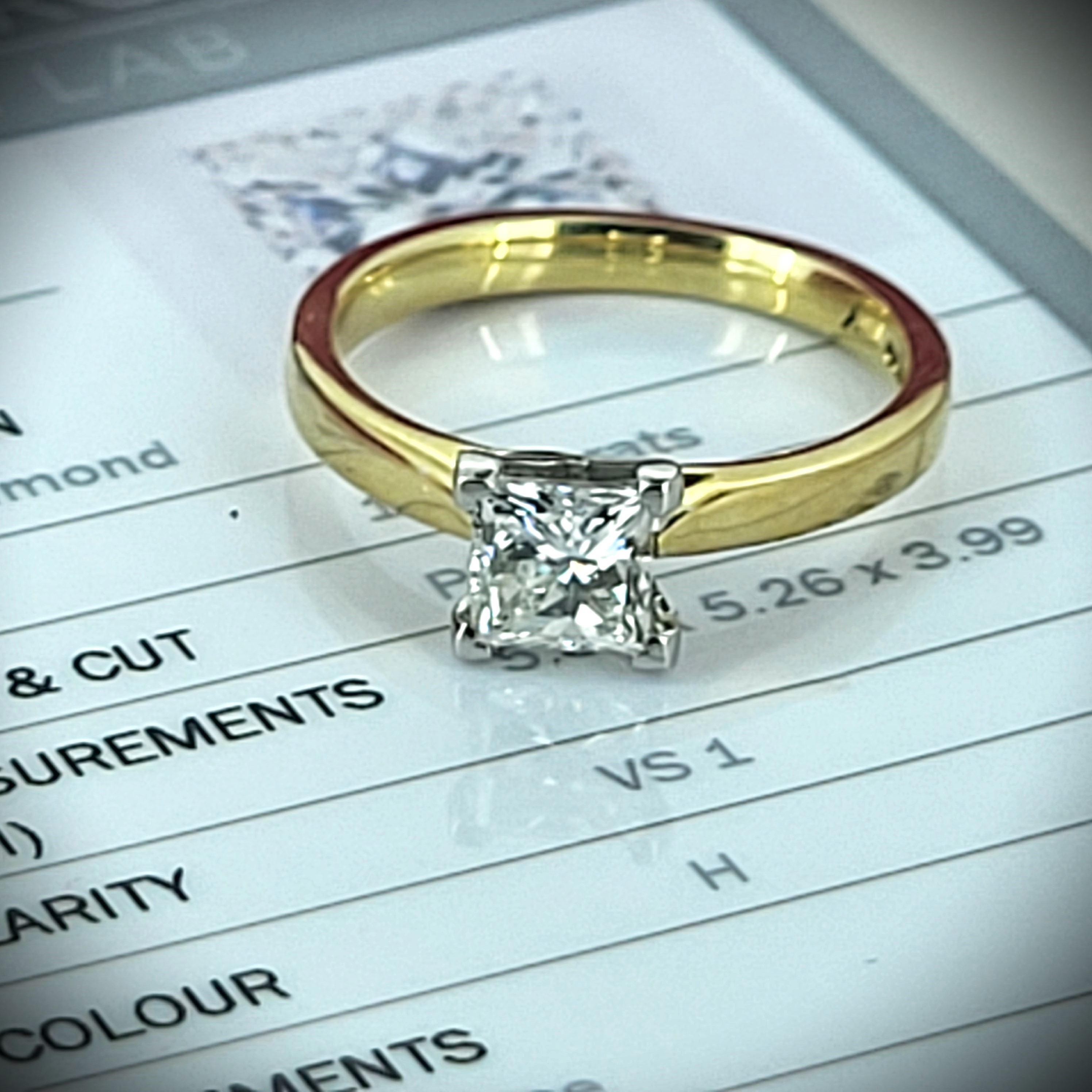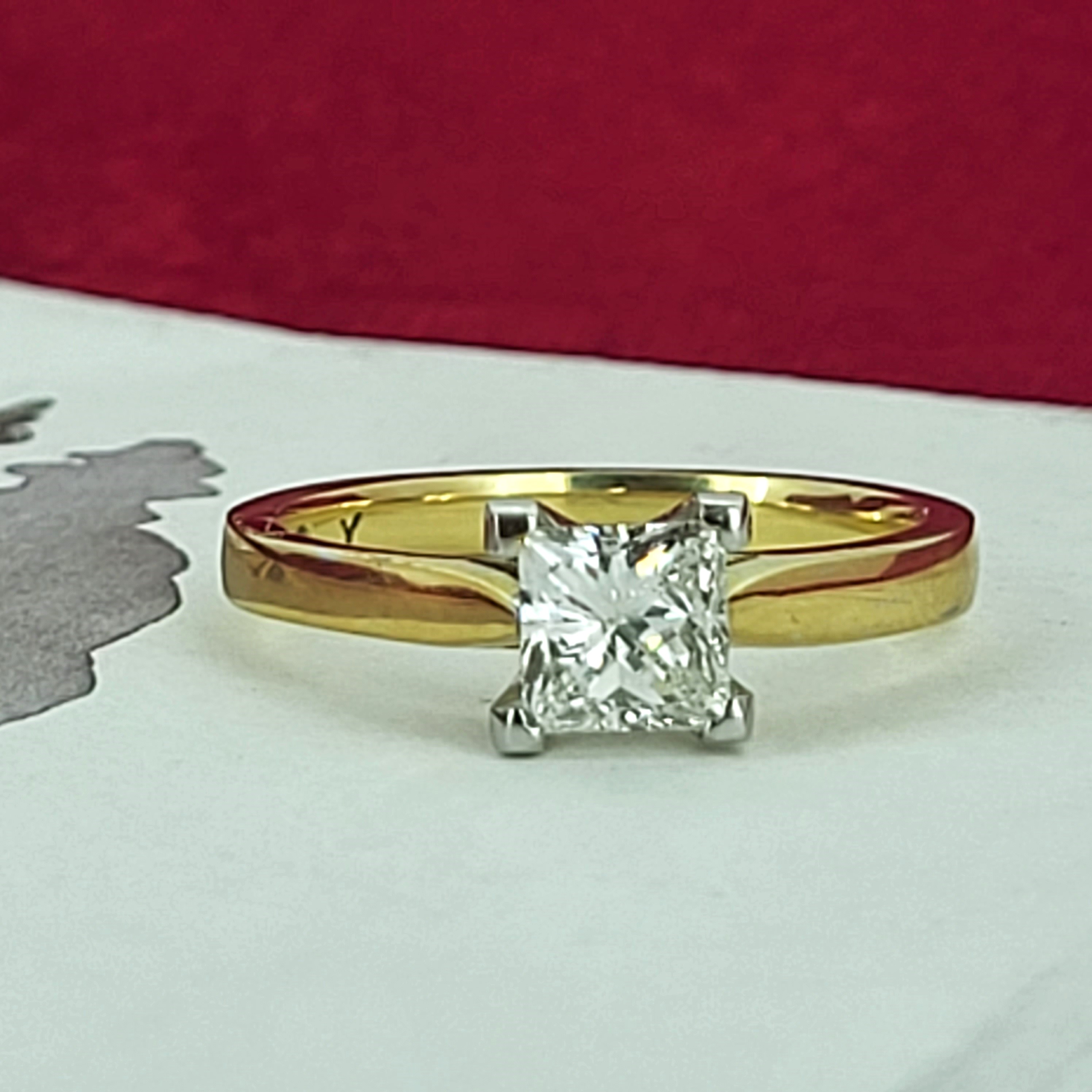 This beautiful Princess Cut Diamond Ring crafted from 18ct Yellow Gold and White Gold is bound to turn heads.