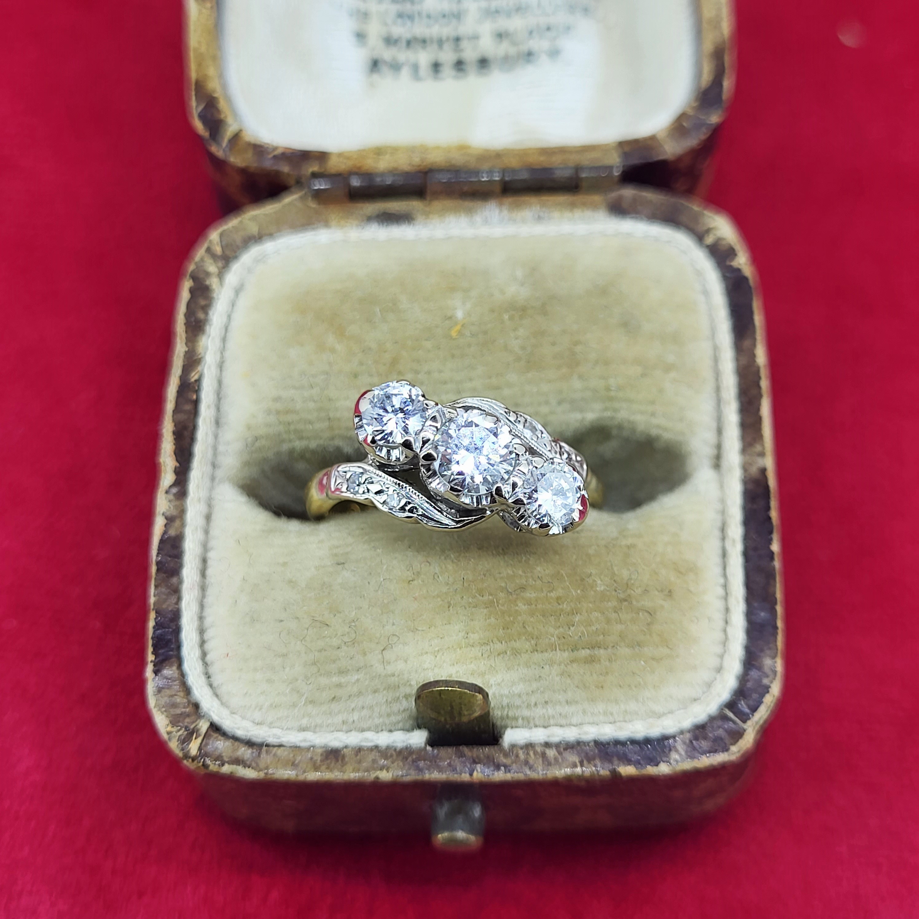 We are delighted to present this absolutely stunning Antique Trilogy Diamond Ring, crafted from 18ct Yellow Gold and Platinum.