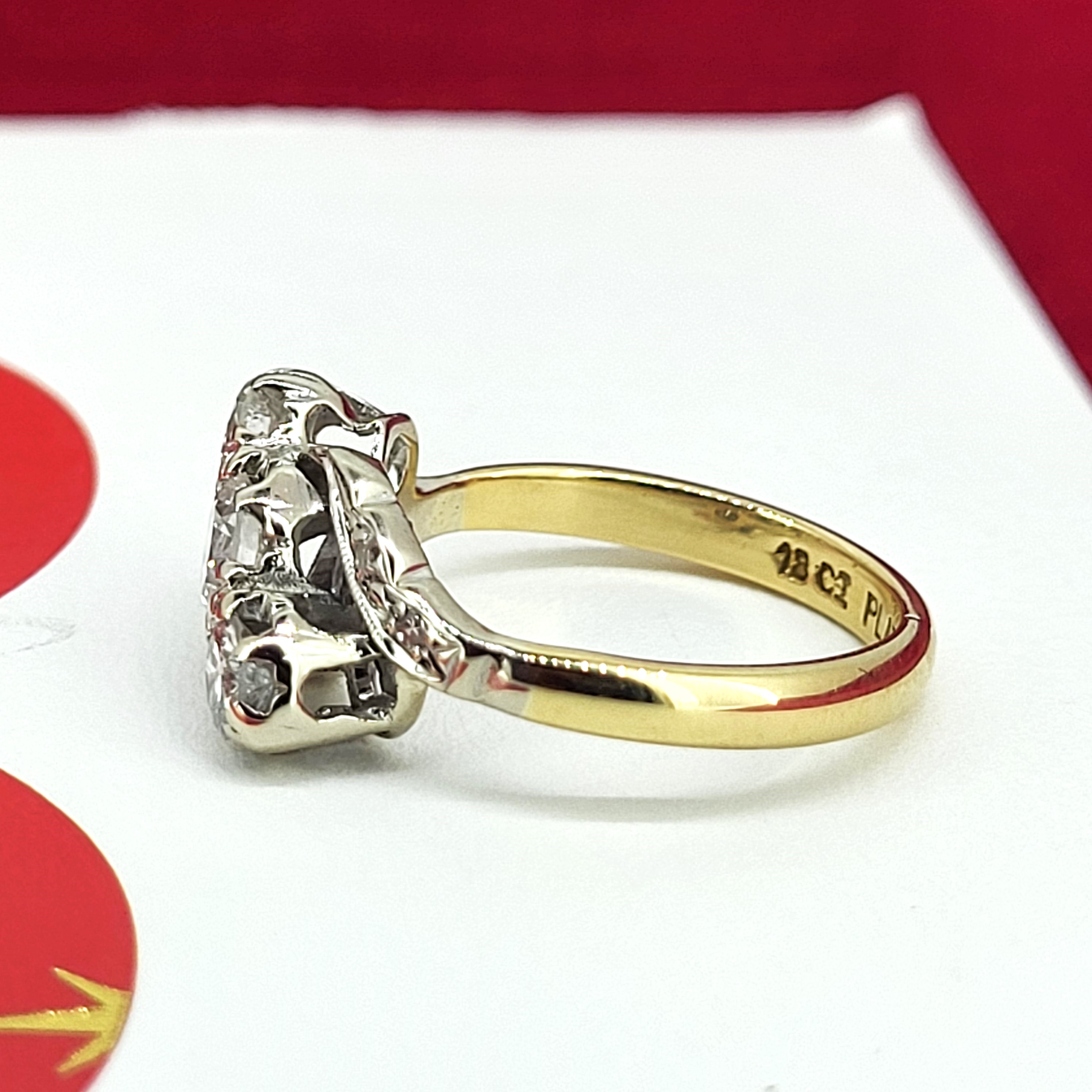 The inside of the shank is stamped 18ct and 'plat' and the ring weighs 3.5 grams. It is currently a Size I 1/2 and can be sized.